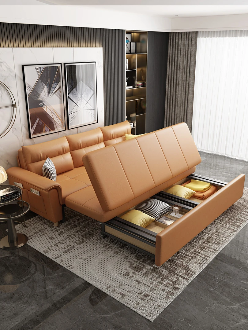 多機能折りたたみソファベッド - 本革製、リビングや大きな部屋に最適!収納付きの隠れたスライド式デザインで、スペースを有効活用しながら快適な寝心地を提供します。