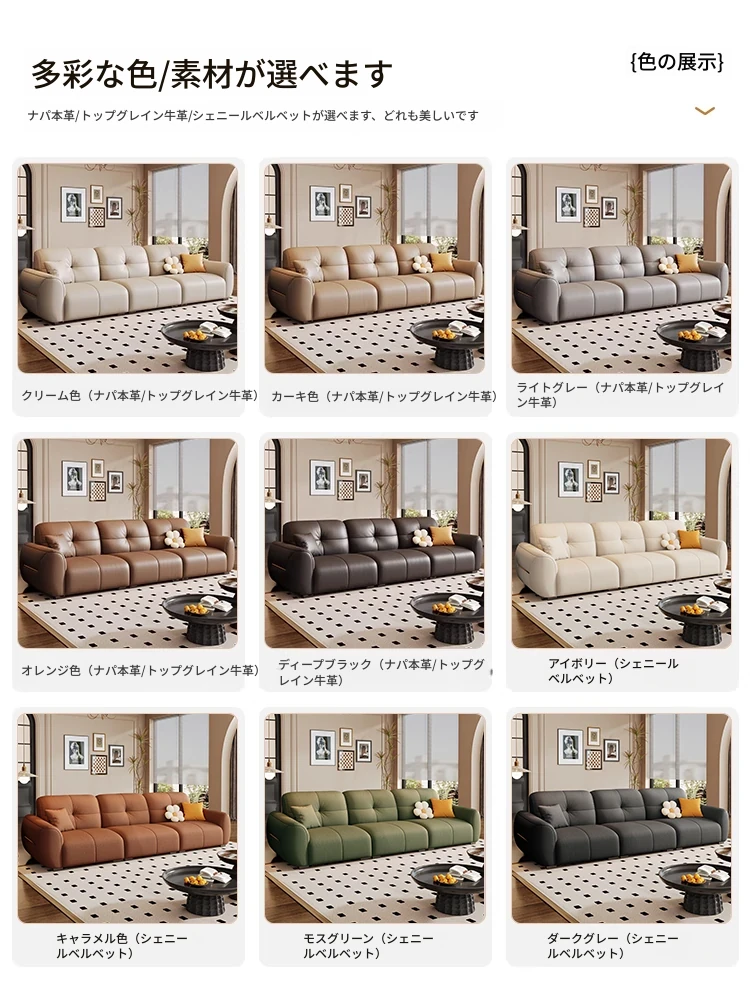 2025年新款リビングソファ!本革製のミニマリストデザイン、コンパクトな一字型で小さなお部屋にぴったり。エレガントな象耳スタイルが魅力的!快適さとスタイルを兼ね備えた一品です。