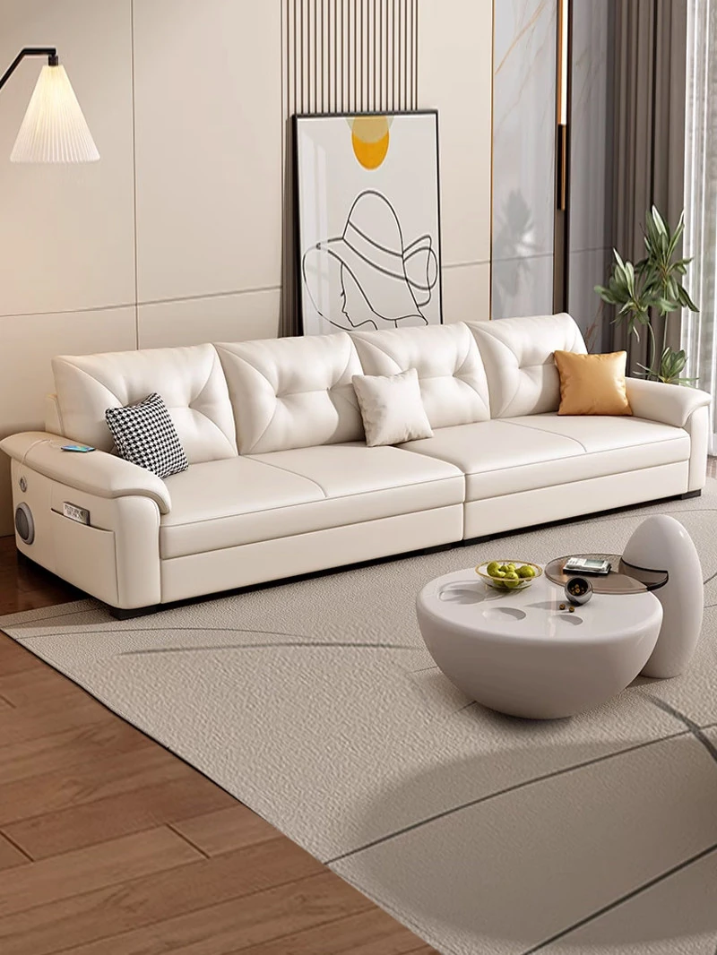 イタリアン本革ソファ 小型住宅向けクリーム風デザイン 直線的なトップグレード牛革ソファ リビングルーム用 2025年新作 モダンシンプルスタイルでおしゃれな空間を演出!