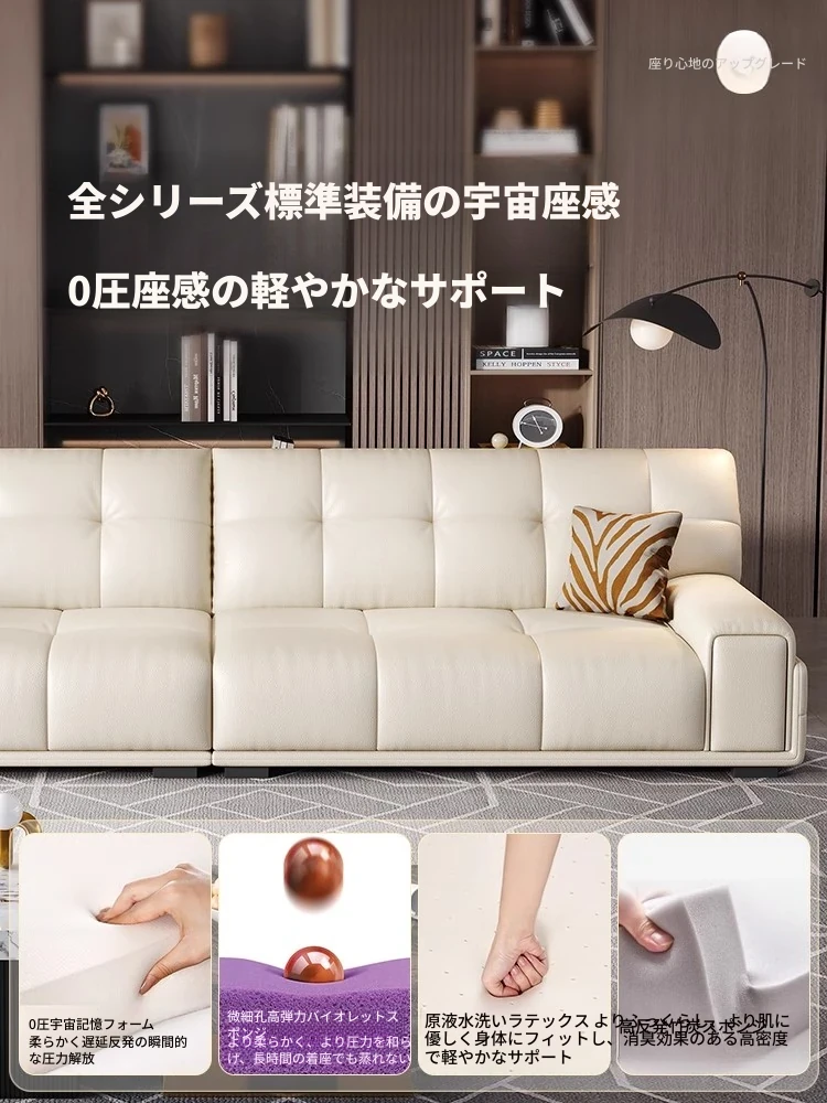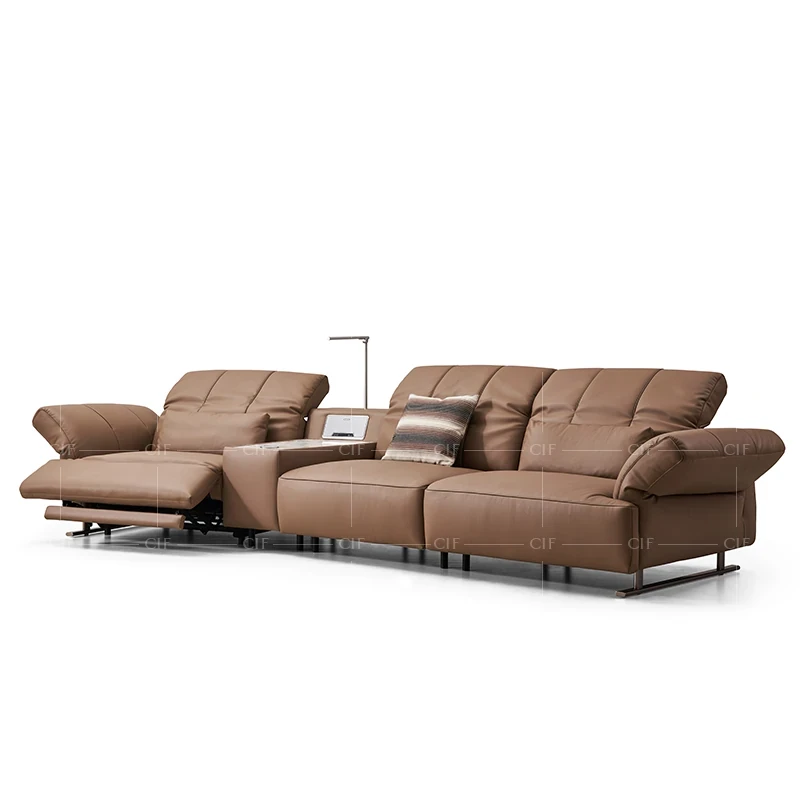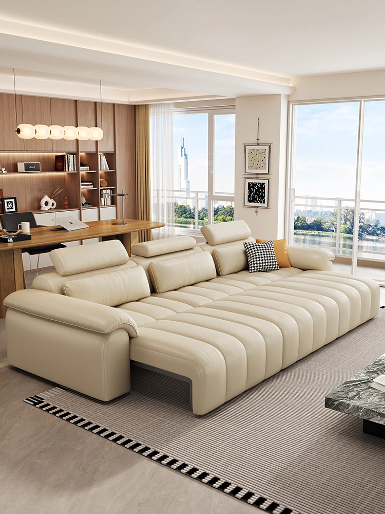 イタリアンミニマリズム 2.5mm全牛革電動ソファ 豪華な別荘向け 大平面リビングに最適 伸縮機能付きソファベッドで快適な空間を演出!