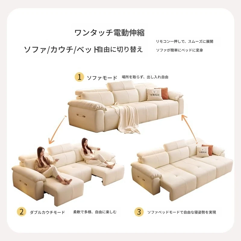 2025年新款電動ソファ3人掛け!革新的デザインで、壁にぴったりフィットする真皮製の多機能スマート伸縮ソファベッド。快適さとスタイリッシュさを兼ね備えた、あなたのリビングに最適な選択です!