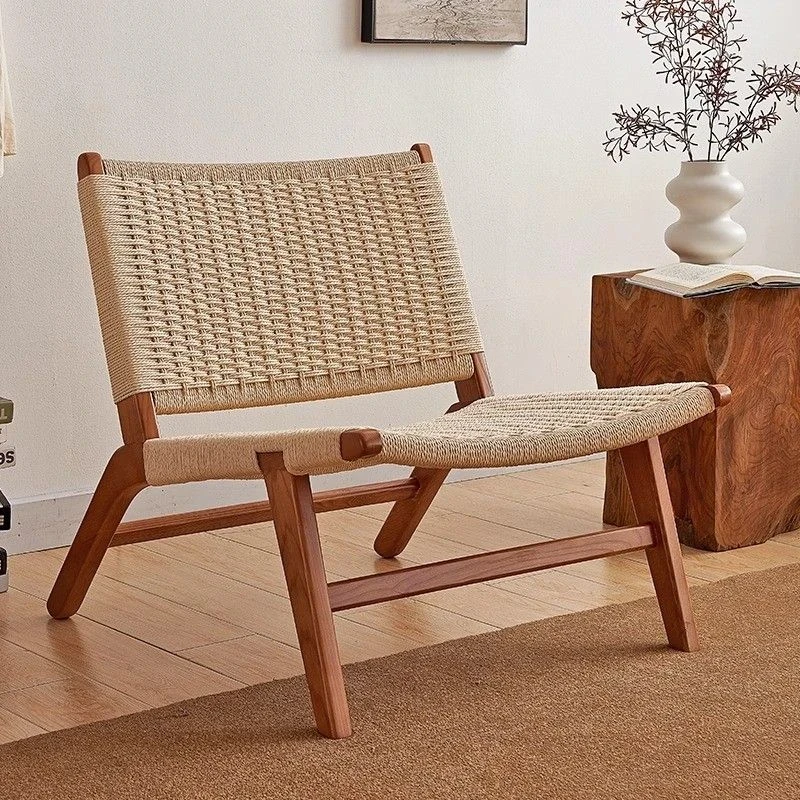 一人用ソファチェア|リビングにぴったりの軽やかで高級感あふれるデザイン|無垢材とサドル編みロープを使用したヴィンテージ風|バルコニーや中古民宿に最適なリラックスチェア!