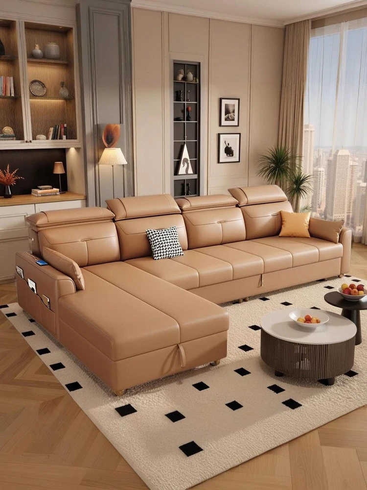 園丁 雲夢半青皮電動ソファ レトロスタイル 2025年新作 小型住宅に最適 調整可能な伸縮ソファで快適なリビング空間を実現!