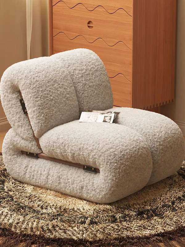 クリーミーなラムファーのラウンジソファー - ホテルや民宿に最適!北欧の侘び寂びスタイルで、リラックスできる一人用ソファチェア。おしゃれな客室にぴったりの快適なデザイン!