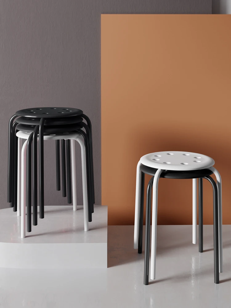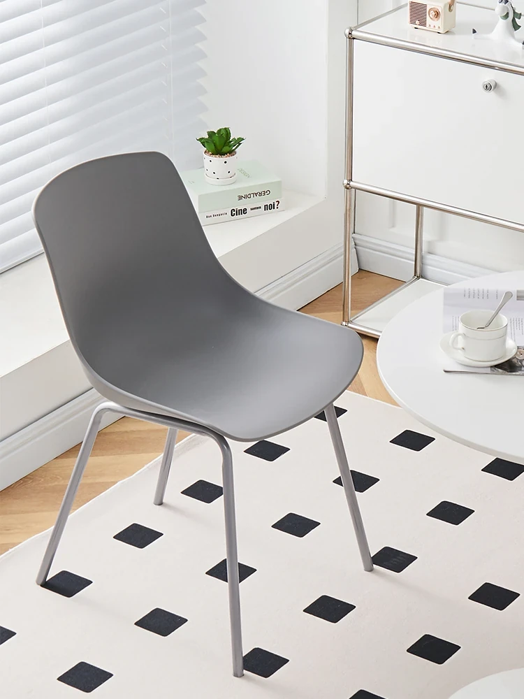Modern Minimalist Stackable Plastic Dining Chair - Stylish Iron Frame for Home Use, Perfect as Extra Seating in Your Dining Room or as a Simple Round Stool for Meals.