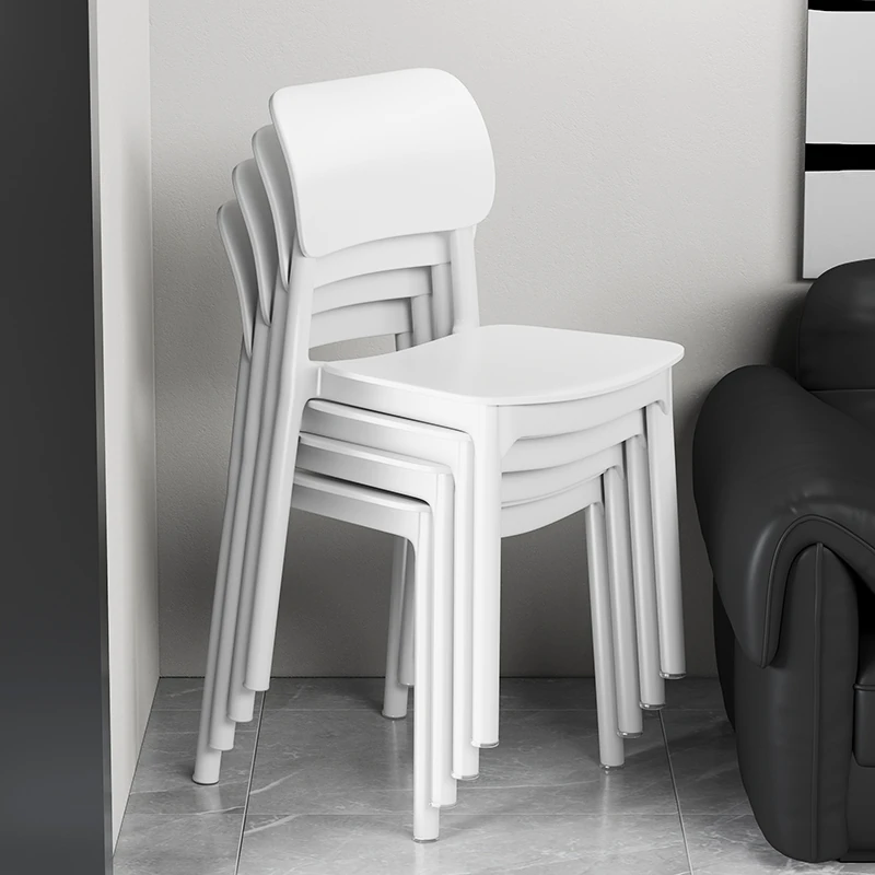 Modern Minimalist White Plastic Dining Chair - Thickened, Stackable, and Perfect for Home Use - Stylish Dining Table Seating with Comfortable Backrest