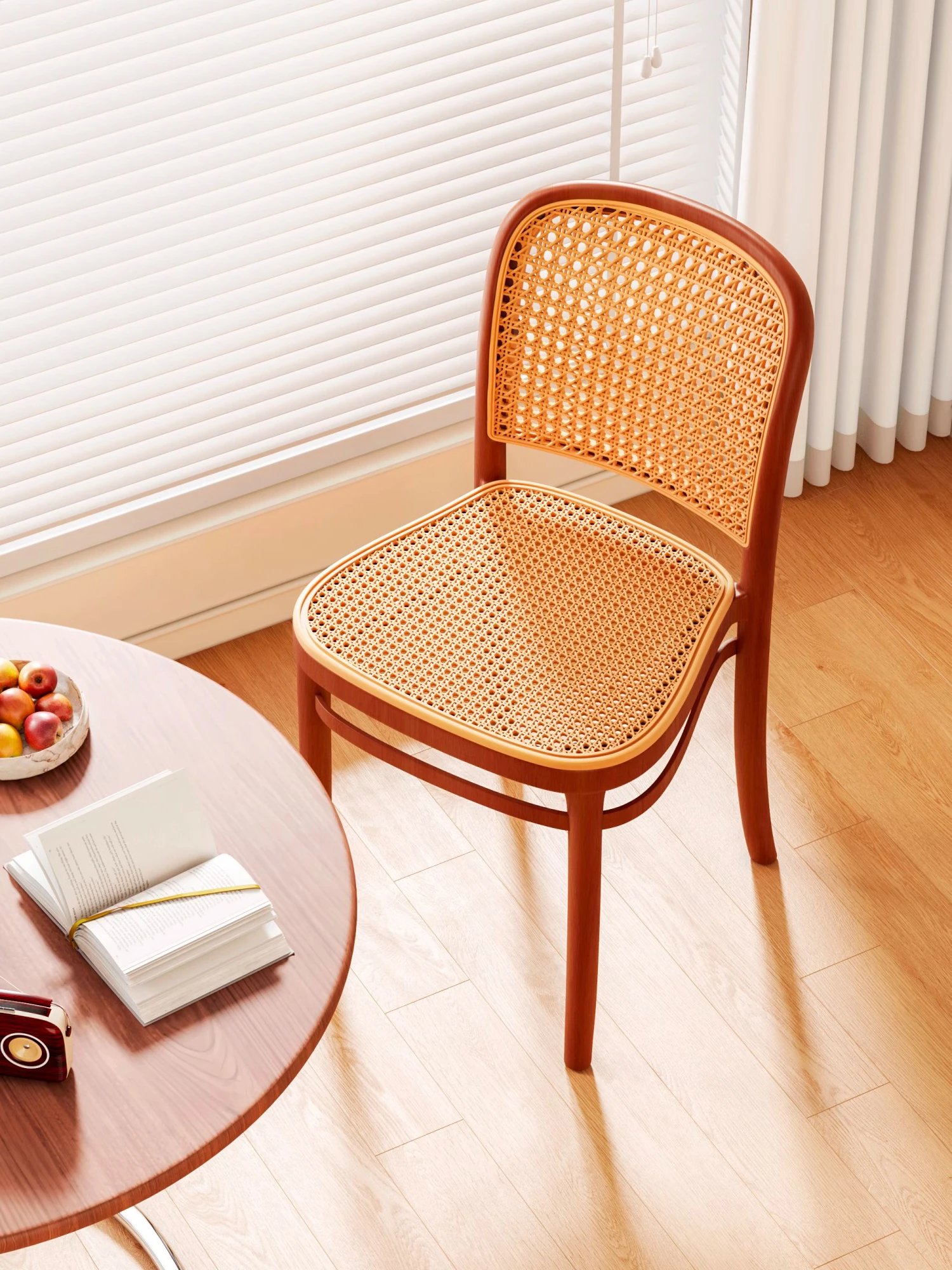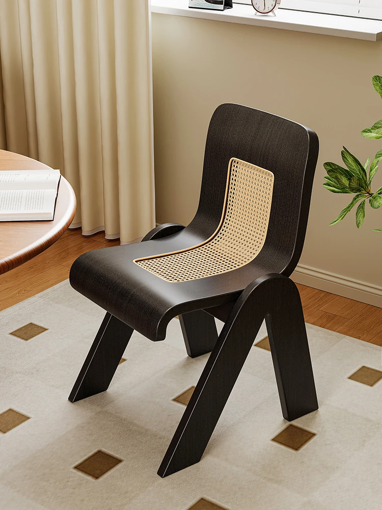 Vintage-Style Solid Wood Dining Chair with Rattan Design - Creative C-Shaped Chair for Home Use, Embracing Wabi-Sabi Aesthetic, Perfect for Your Dining Room