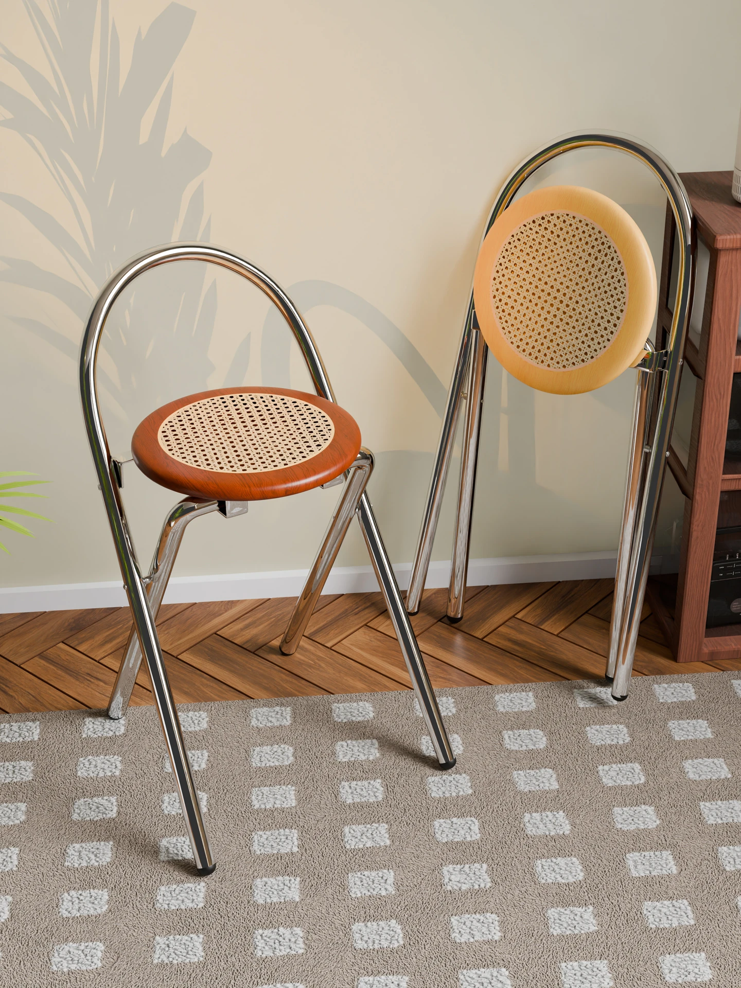 Vintage Designer Folding Dining Chair - Portable Rattan Accent Chair for Balcony - Chic and Compact Home Seating Solution for Dining Spaces