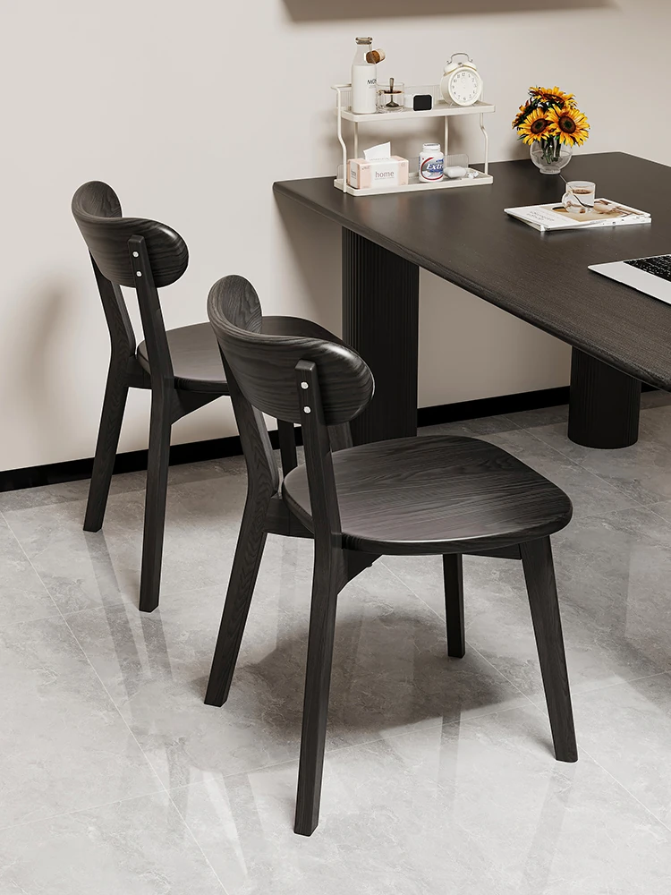 Modern Solid Wood Dining Chair Set - Stylish Black Dining Table and Chairs for Home, Café, or Office - Comfortable Backrest for Dining, Meetings, and Work Spaces.