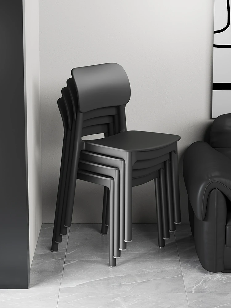 Modern Black Stackable Plastic Dining Chair - Thickened Design for Home Use, Simple and Stylish with Backrest, Perfect for Dining Rooms and Relaxation.