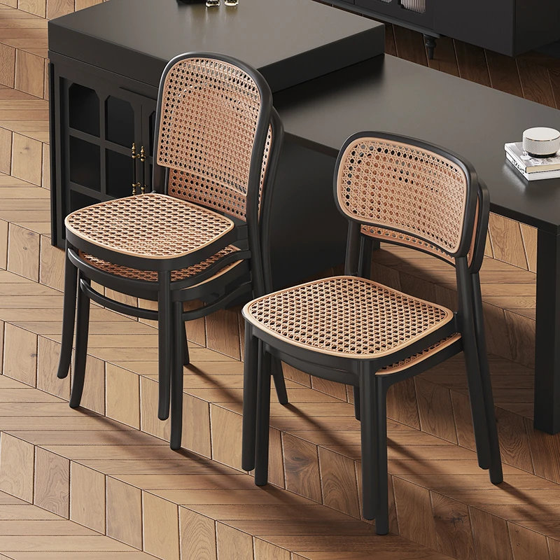 Modern Rattan Dining Chair - Stackable Plastic Chairs for Home Use, Vintage Style Restaurant Seating, 2025 New Design with Backrest - Perfect for Your Dining Room!