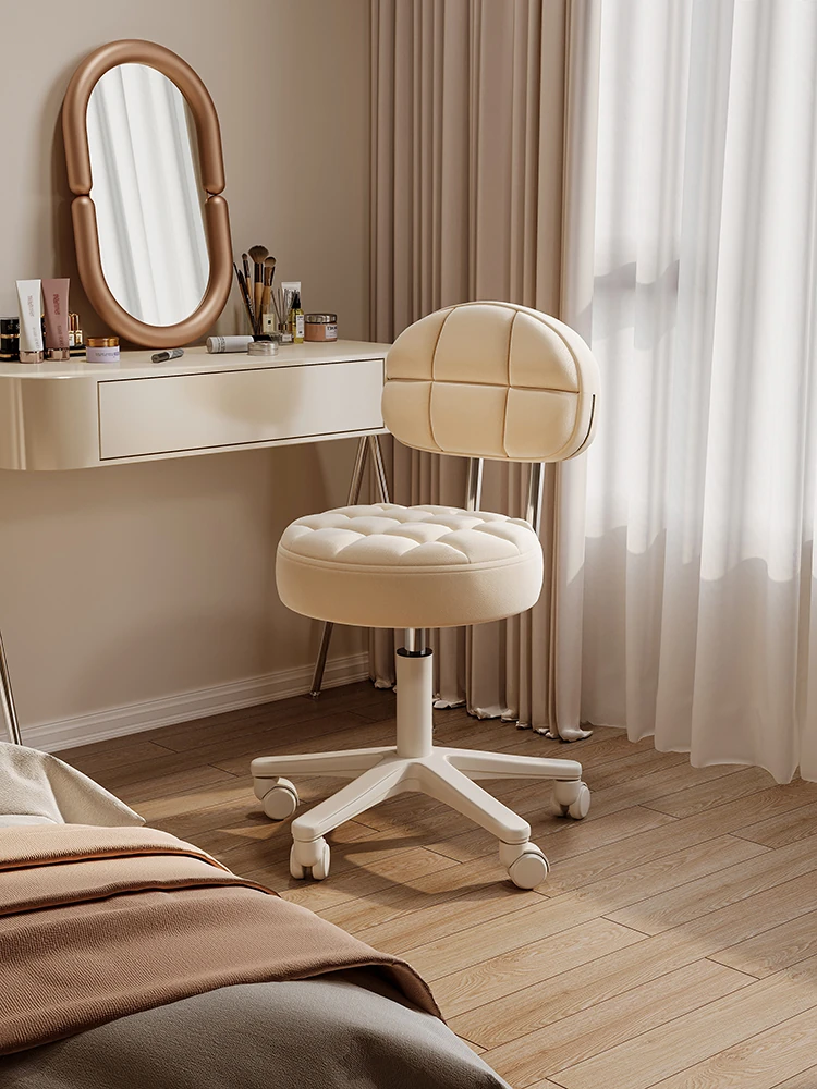 Creamy Makeup Chair for Girls' Bedrooms - Elegant Vanity Stool with Backrest, Rotatable Design, Perfect for Master Bedrooms and Nail Art Sessions.
