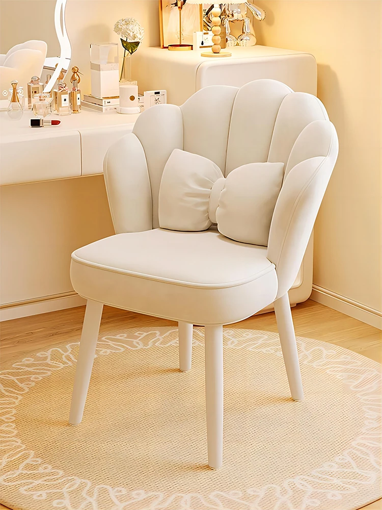 Modern Minimalist Chair for Home Use - Stylish Vanity Stool with Backrest for Girls’ Bedrooms, Elegant Petal Makeup Chair, Perfect for Nail Art and Beauty Routine.