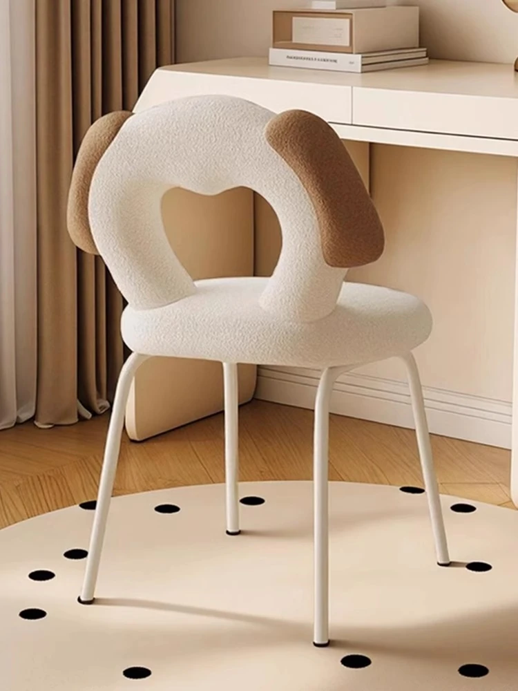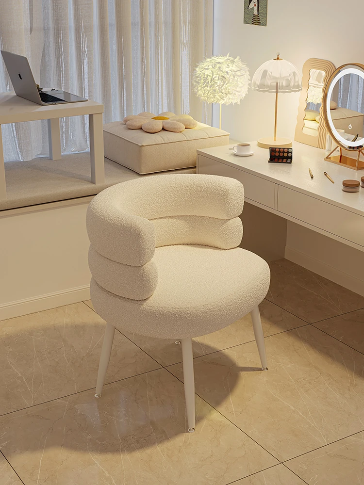 2024 New Lamb Fleece Makeup Stool - Stylish Vanity Chair with Backrest for Women, Ideal for Bedroom & Dressing Table, Solid Wood Construction for Durability