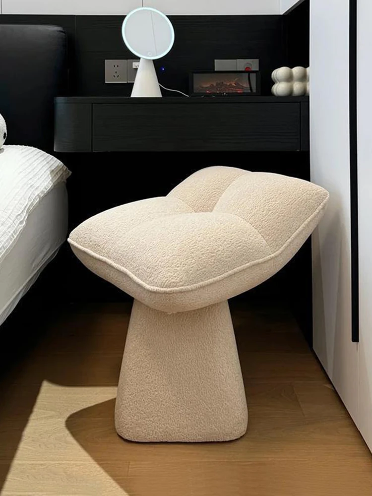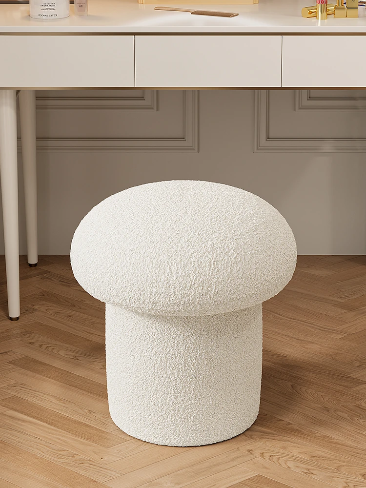 Creamy Makeup Stool for Girls - Cute Mushroom Vanity Chair for Bedroom, Home Use Low Stool, Adorable Round Sofa Stool