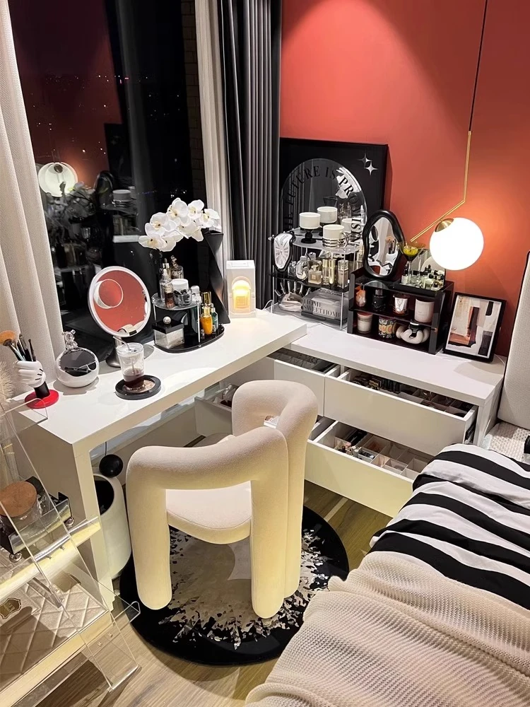 Nordic Minimalist Vanity Stool – Stylish Makeup Chair for Bedroom Dressing Tables, Petal-Shaped Design, Perfect for Balconies, and Trendy Nail Art Seating.