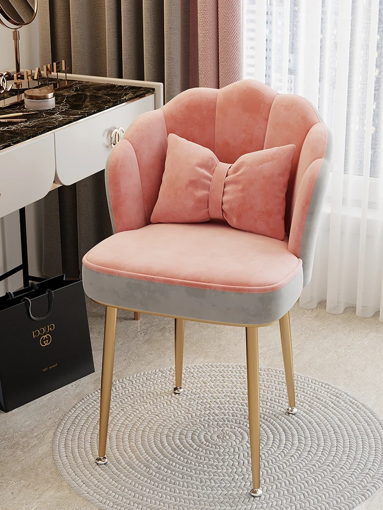 Luxury Makeup Chair for Home Vanity - Stylish Backrest Stool for Girls' Bedrooms, Perfect for Nail Salons and Customer Use, Combining Comfort and Elegance