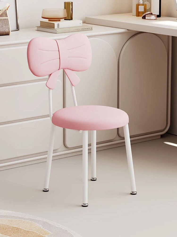 Elegant Makeup Stool with Bow Backrest - Creamy Style Vanity Chair for Girls, Perfect for Bedrooms and Nail Art. Enhance Your Beauty Routine with This Chic and Comfortable Makeup Chair!