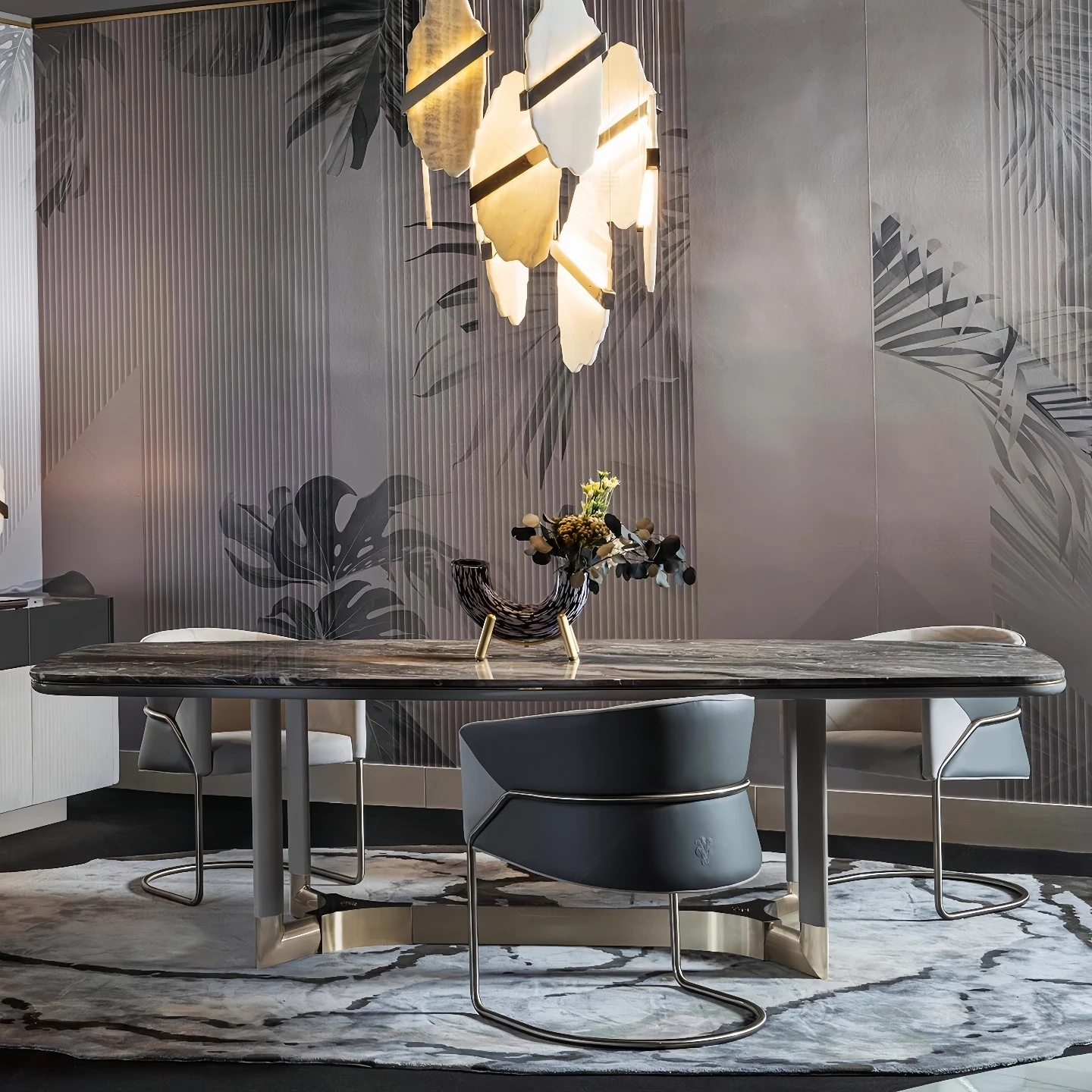51.18in Rock Slab Dining Table+Dining Chair*4