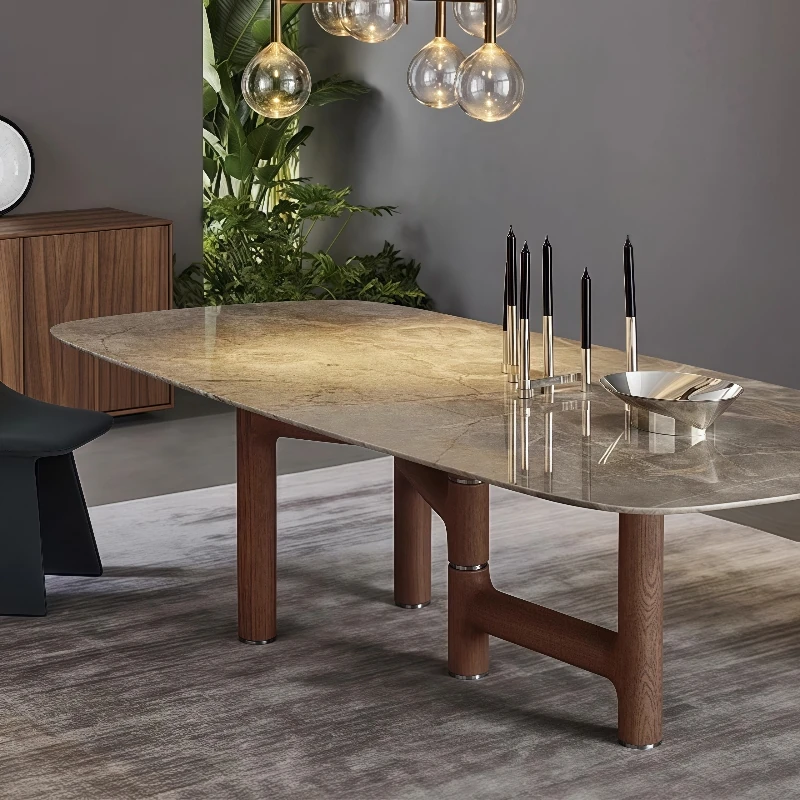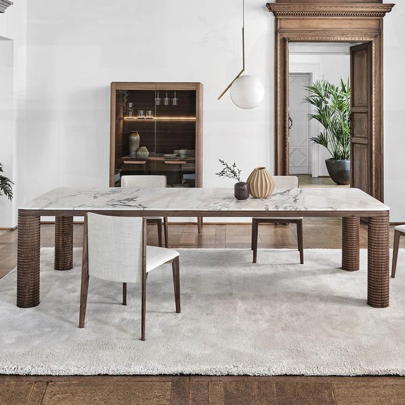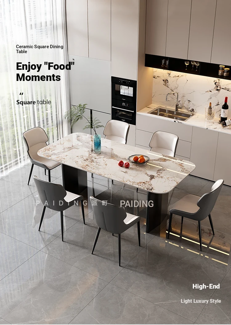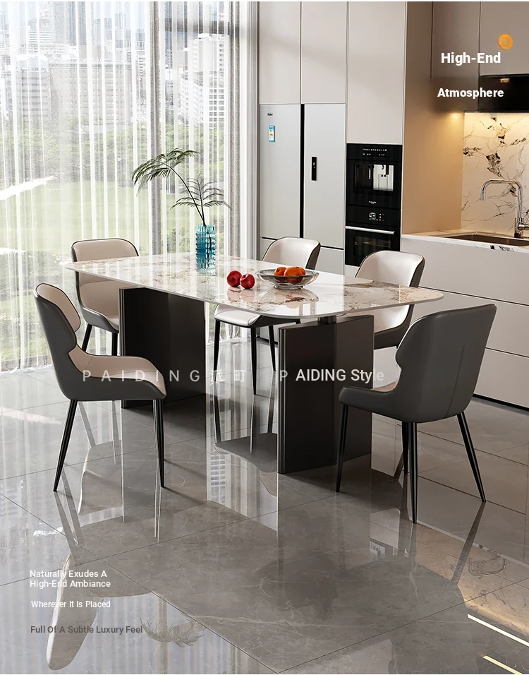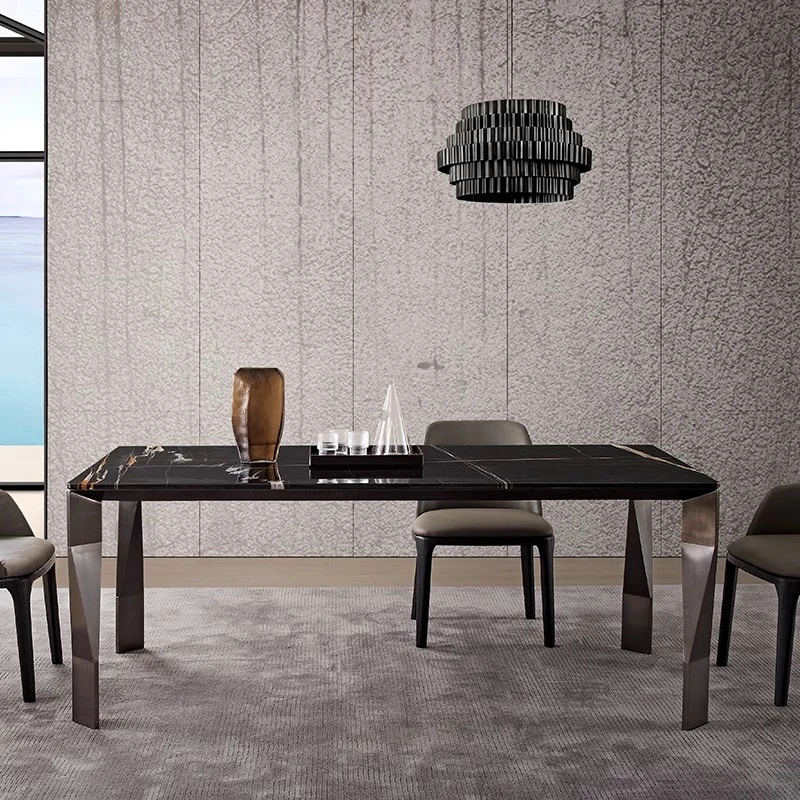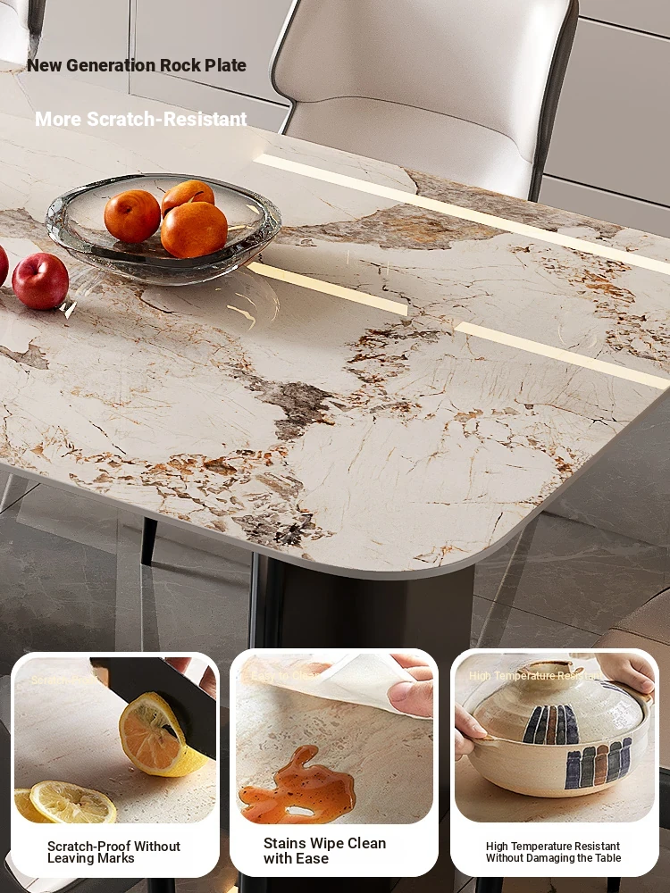 2025 New Elegant Italian Style Rectangular Dining Table for Small Spaces - Luxury Rock Panel Design for Living Room and Home Use