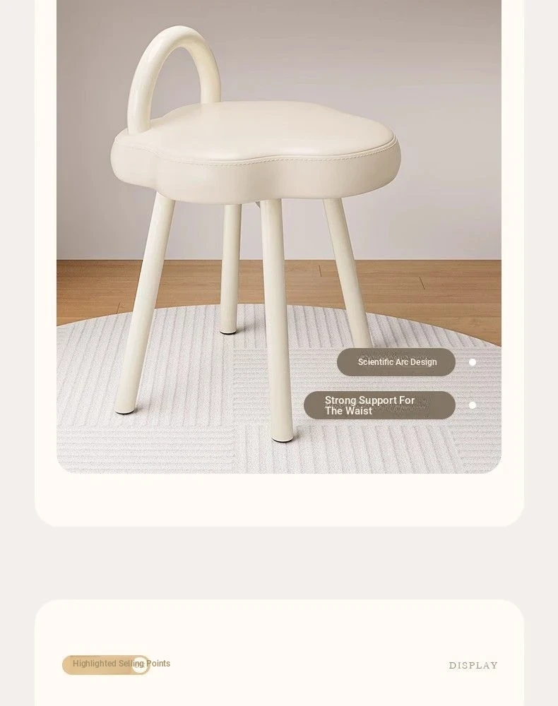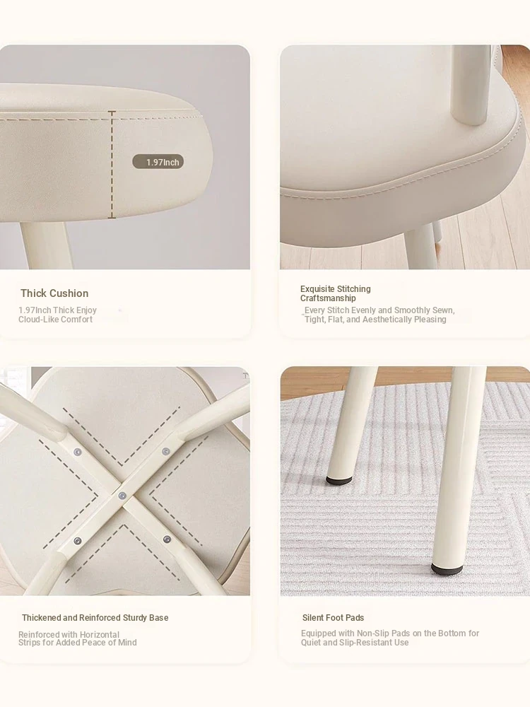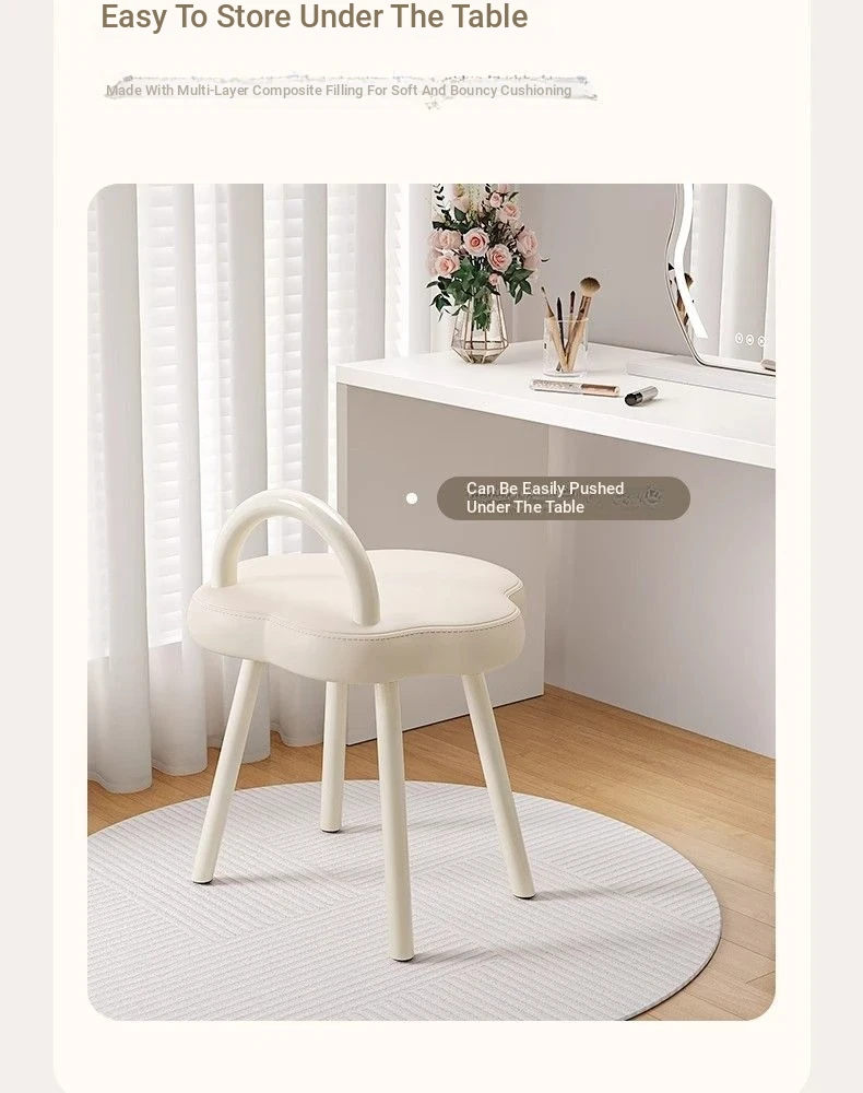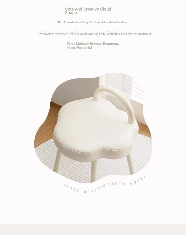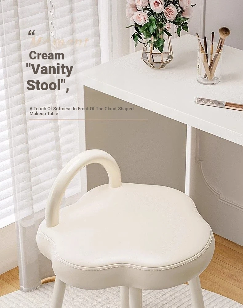 Cloud Cream Makeup Vanity Stool - Stylish and Minimalist Design for Girls' Bedrooms, Perfect for Dressing Tables and Nail Art. Ideal for Master Bedrooms and Walk-in Closets.