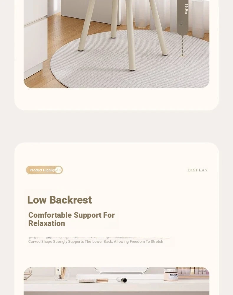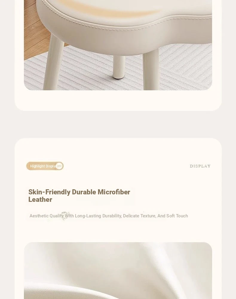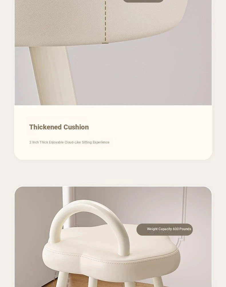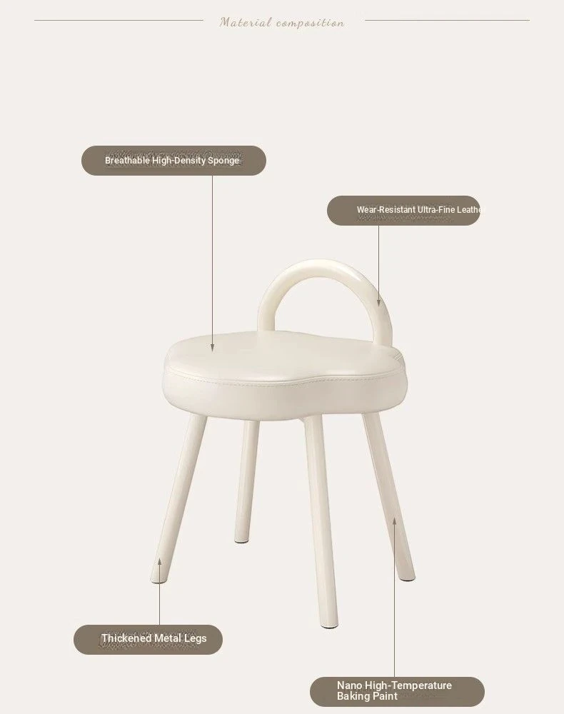 Cloud Cream Makeup Vanity Stool - Stylish and Minimalist Design for Girls' Bedrooms, Perfect for Dressing Tables and Nail Art. Ideal for Master Bedrooms and Walk-in Closets.