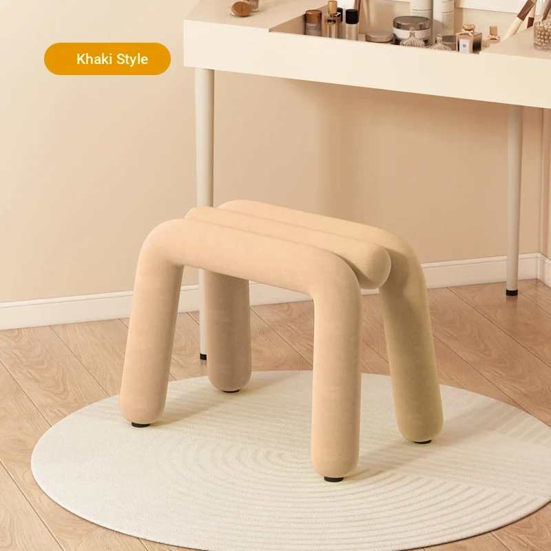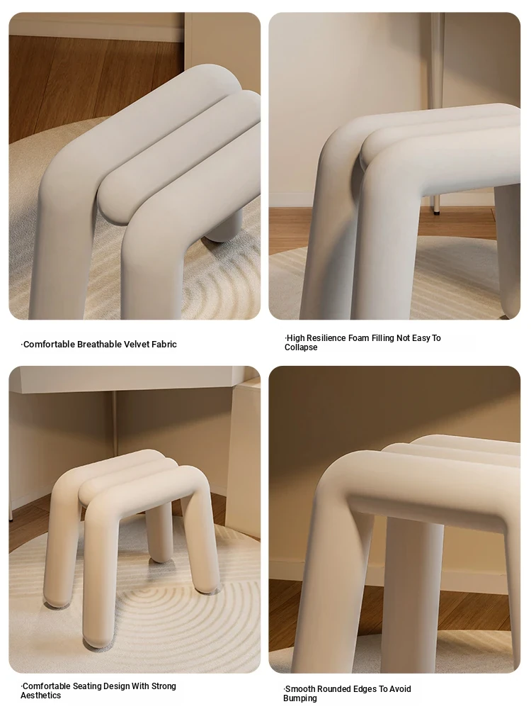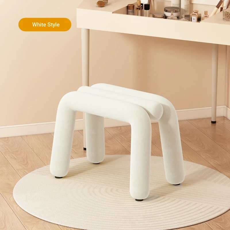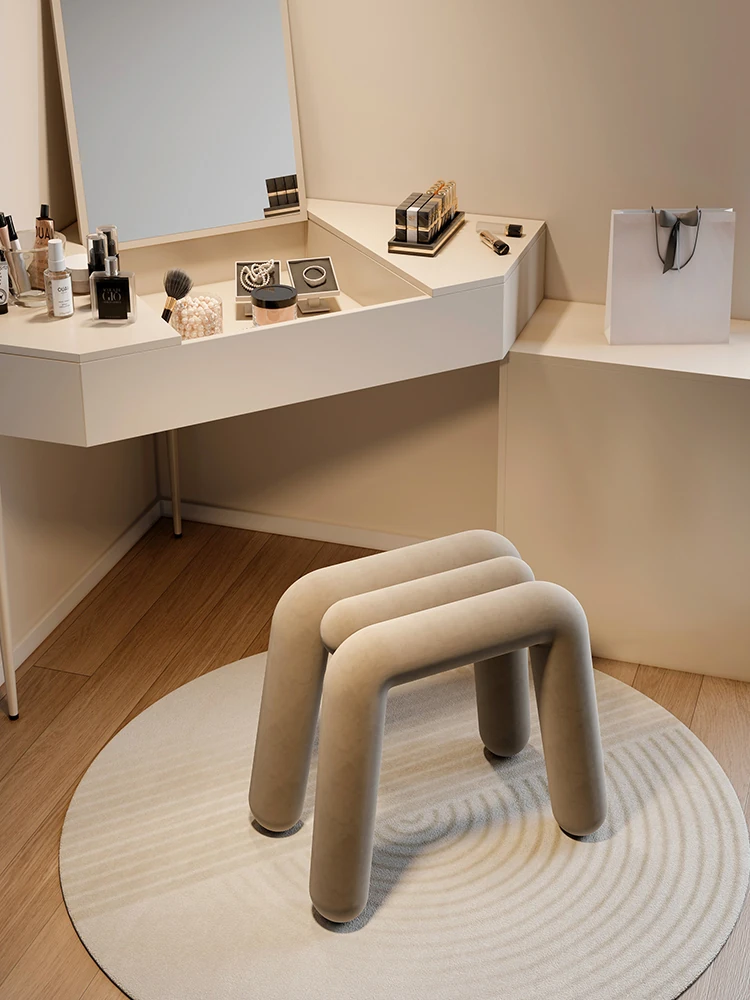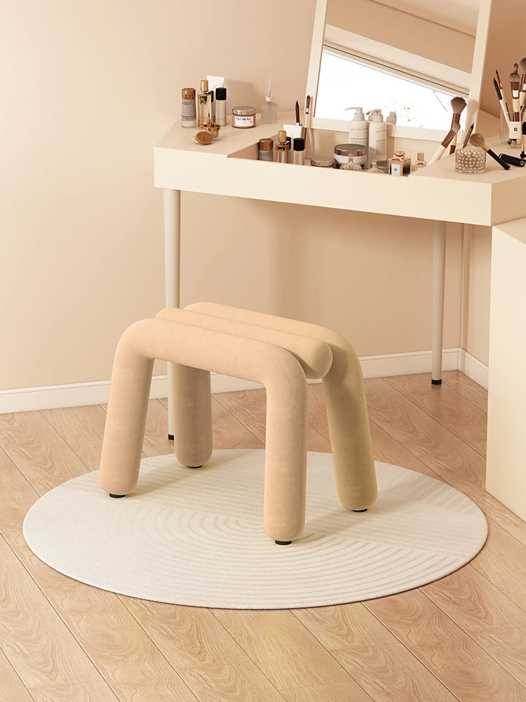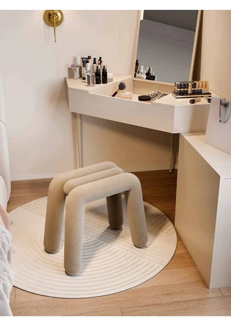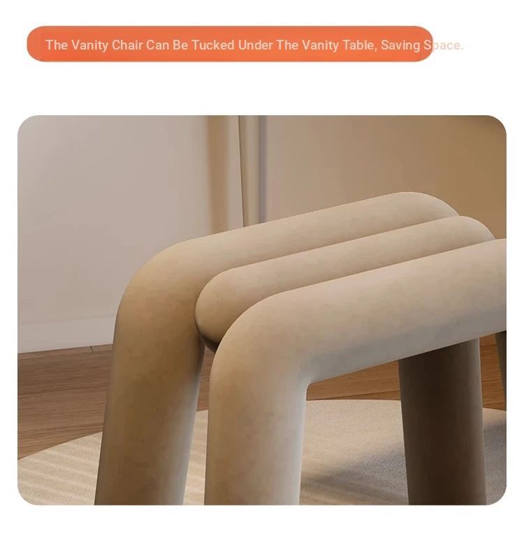 Creamy Makeup Vanity Stool - Elegant Minimalist Dressing Table Chair for Bedroom, Perfect for Nail Art and Grooming. Ideal for Women Seeking a Touch of Luxury in Their Main Bedroom.