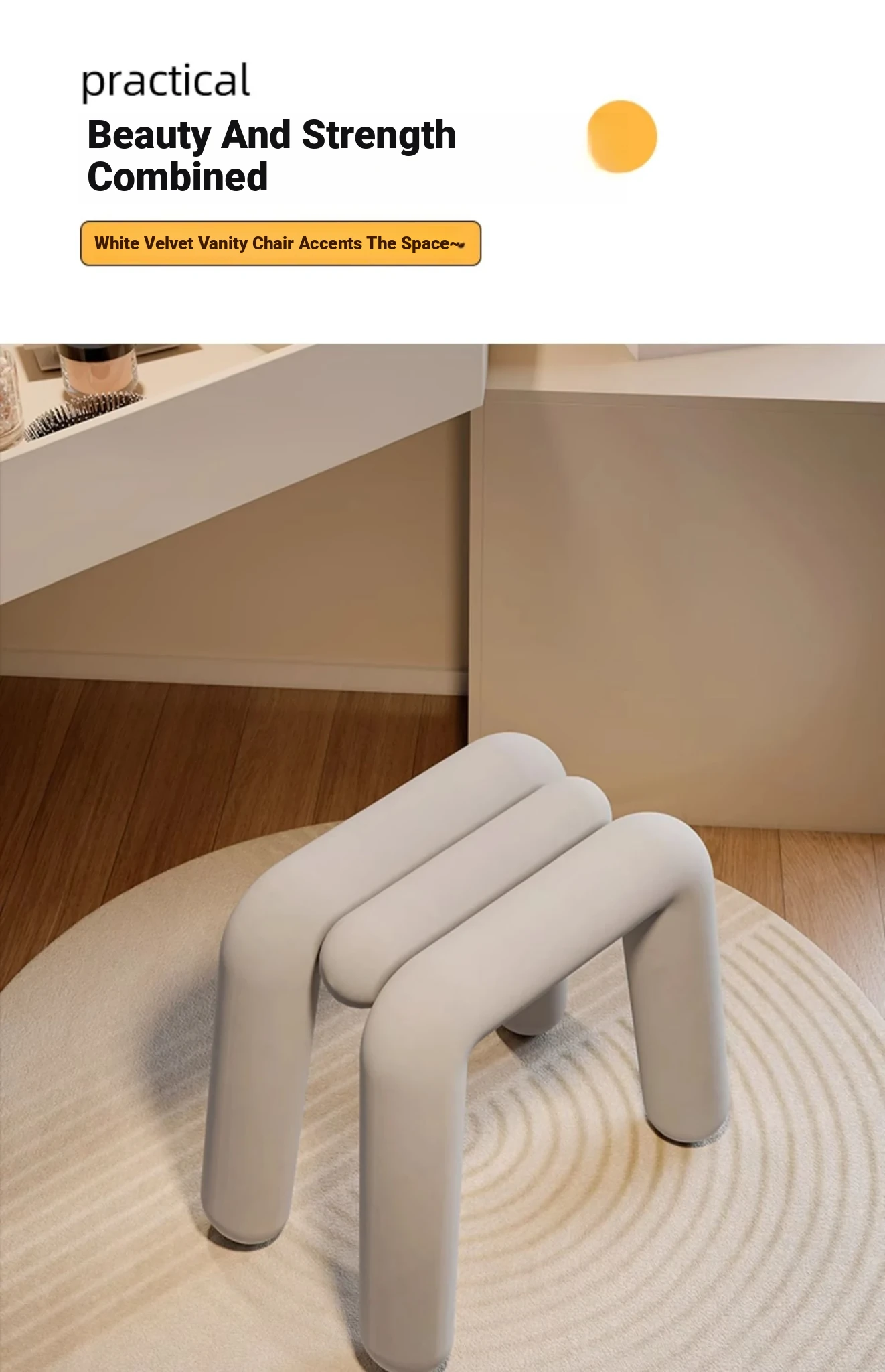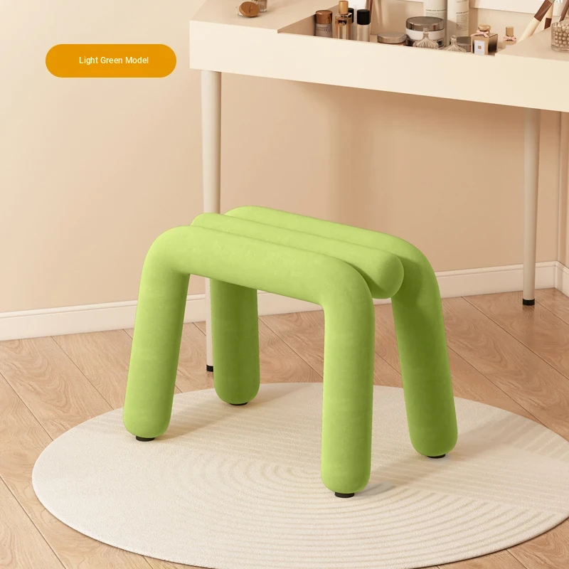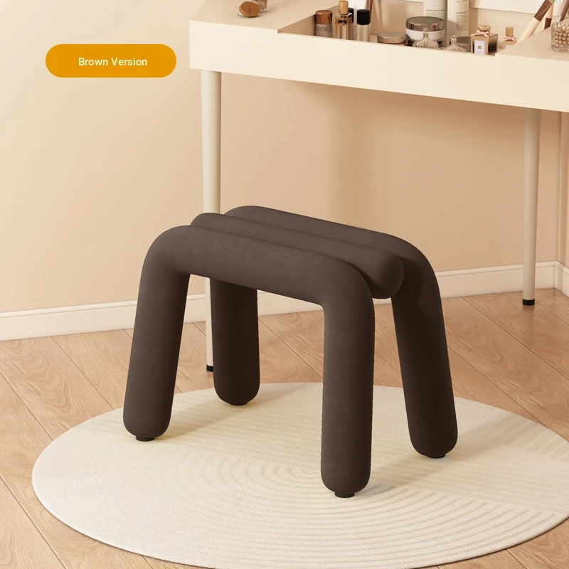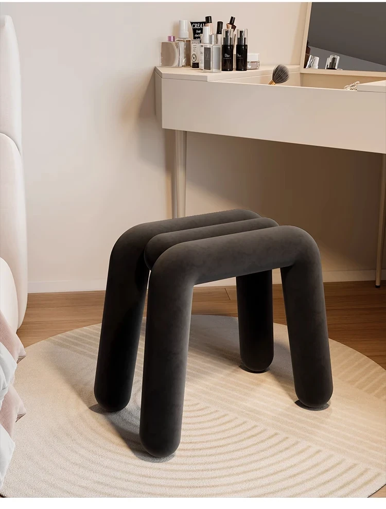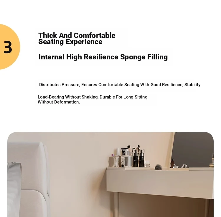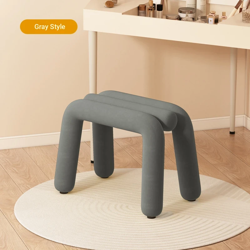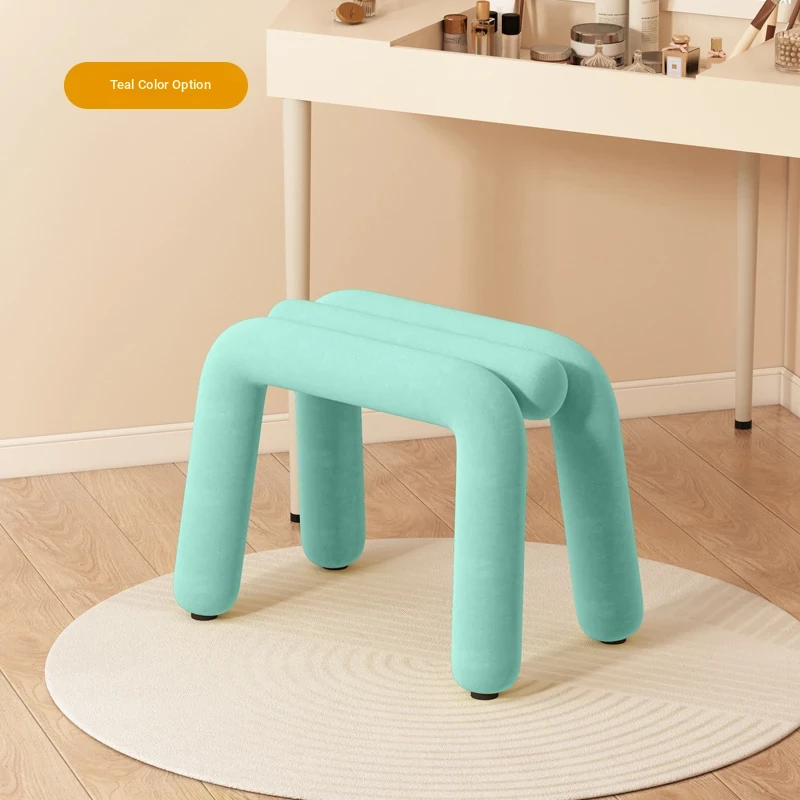 Creamy Makeup Vanity Stool - Elegant Minimalist Dressing Table Chair for Bedroom, Perfect for Nail Art and Grooming. Ideal for Women Seeking a Touch of Luxury in Their Main Bedroom.