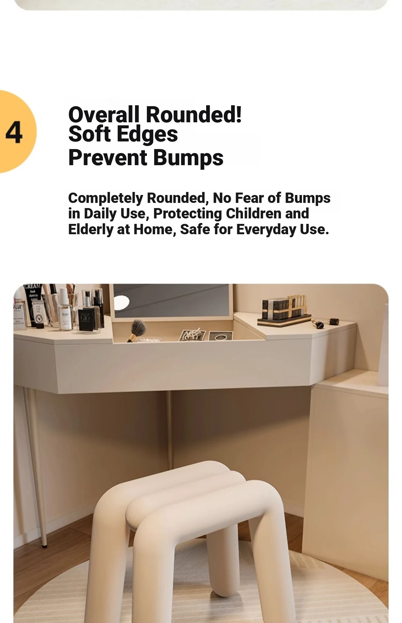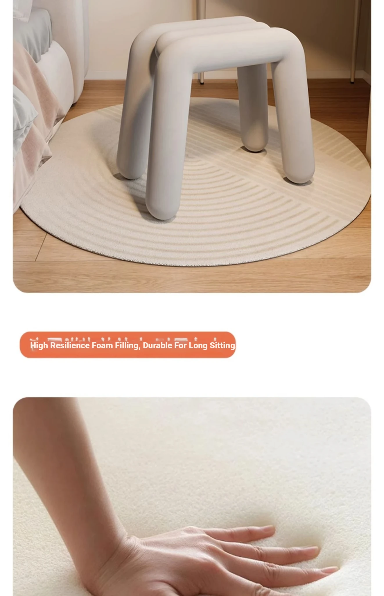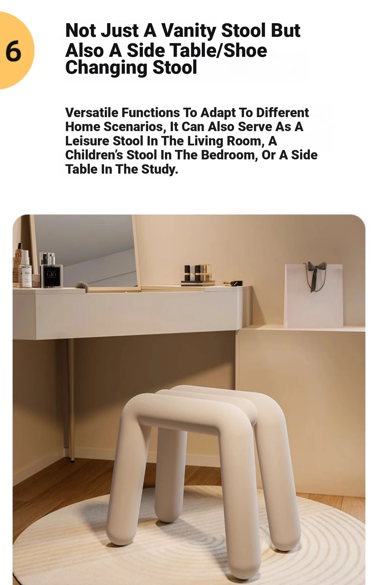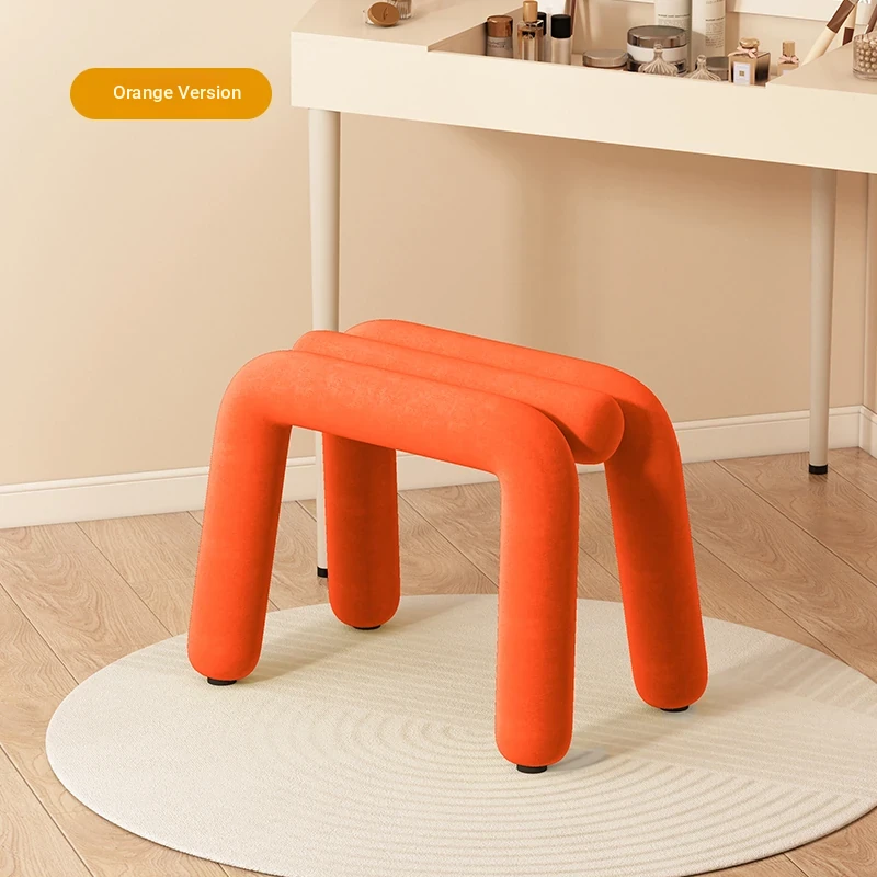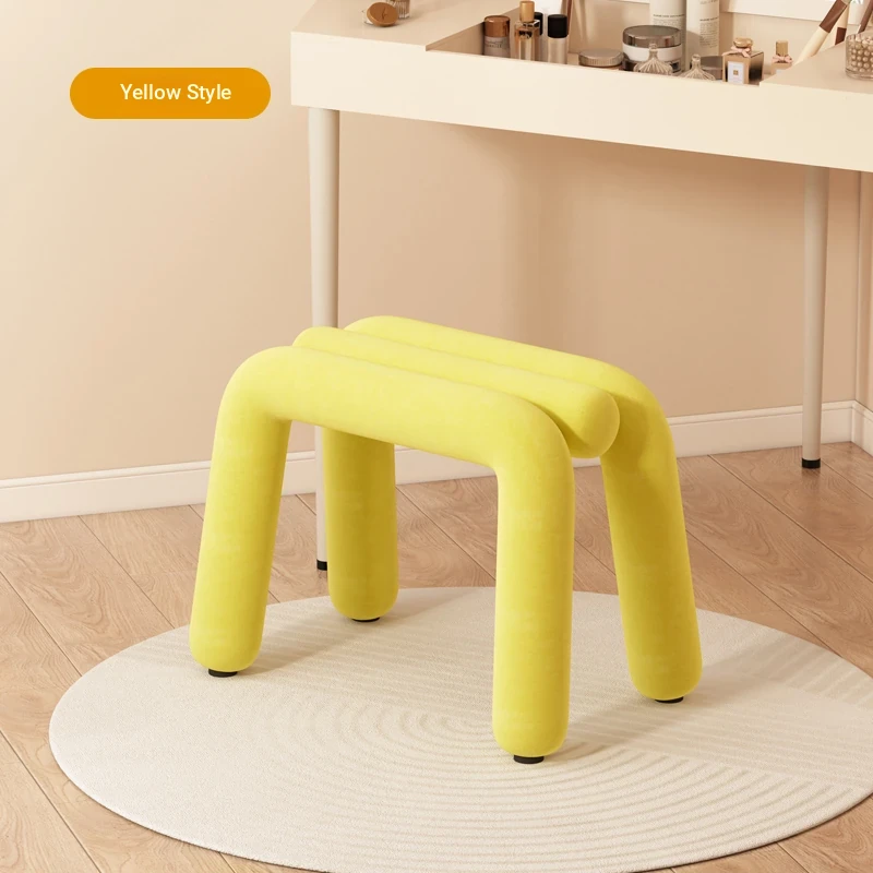 Creamy Makeup Vanity Stool - Elegant Minimalist Dressing Table Chair for Bedroom, Perfect for Nail Art and Grooming. Ideal for Women Seeking a Touch of Luxury in Their Main Bedroom.