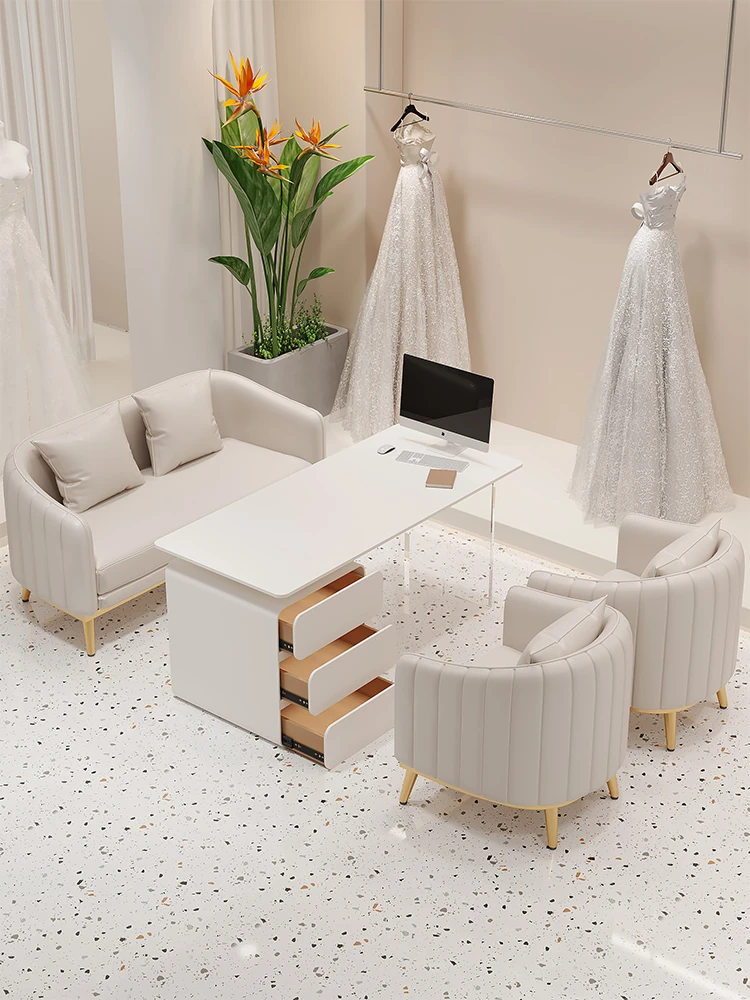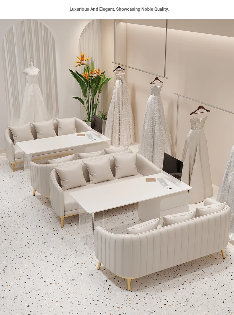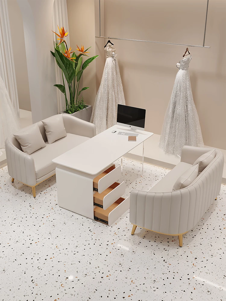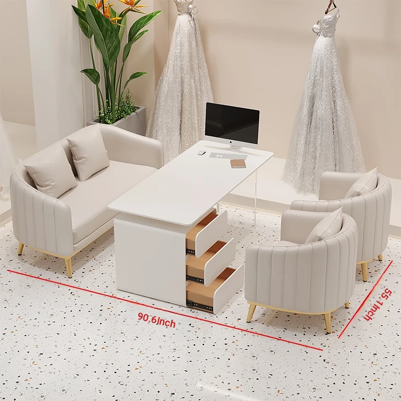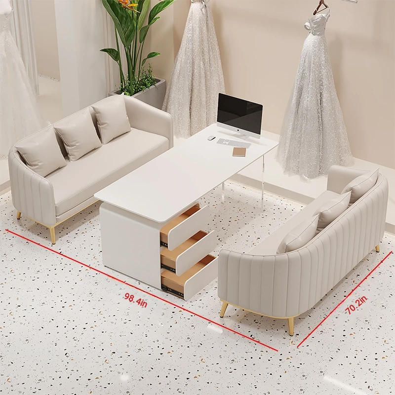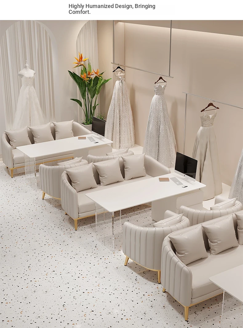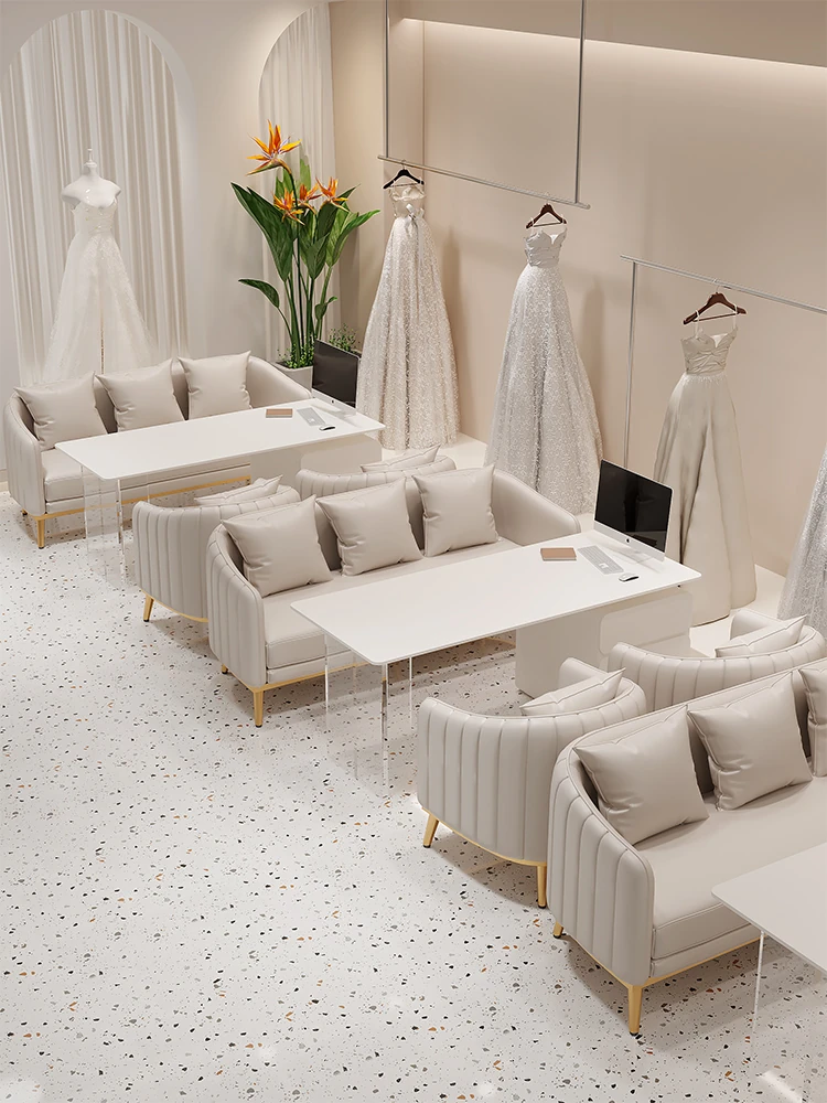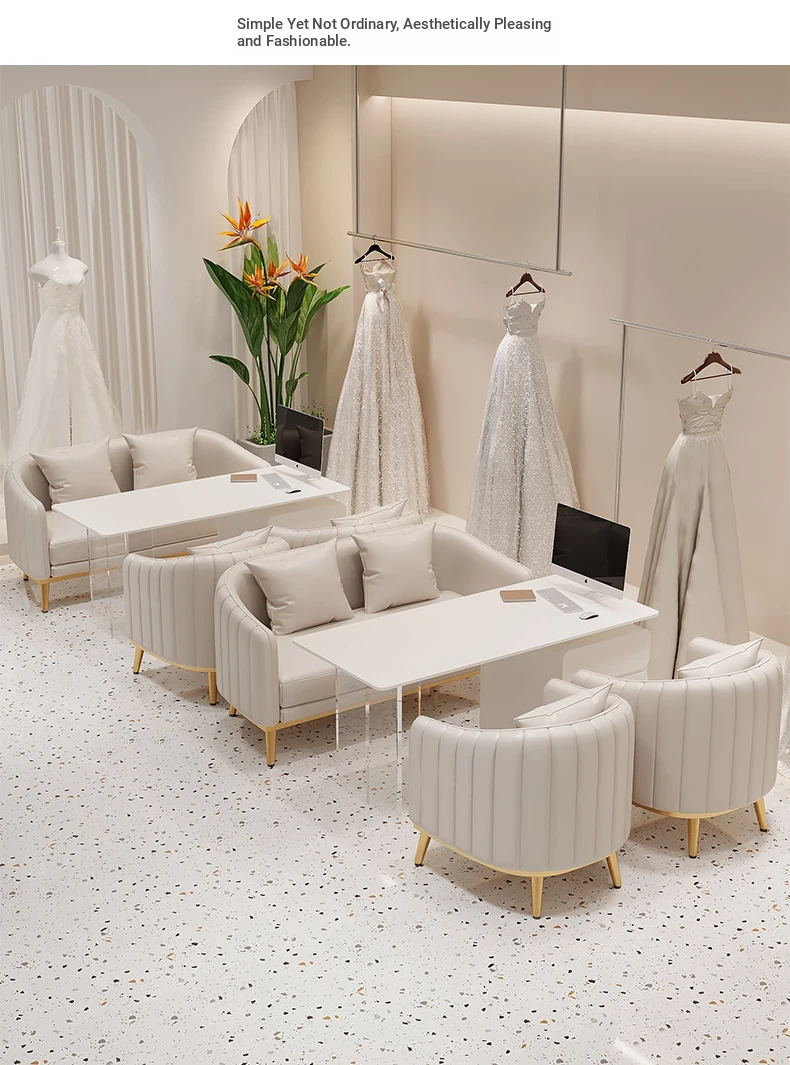 Creamy Style Sofa Set for Bridal Shop - Elegant Reception Area Seating and Consultation Table for Beauty Salons and Nail Studios. Perfect for creating a welcoming atmosphere!