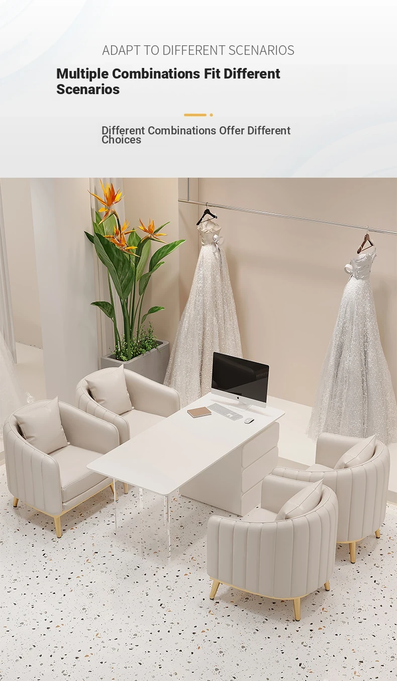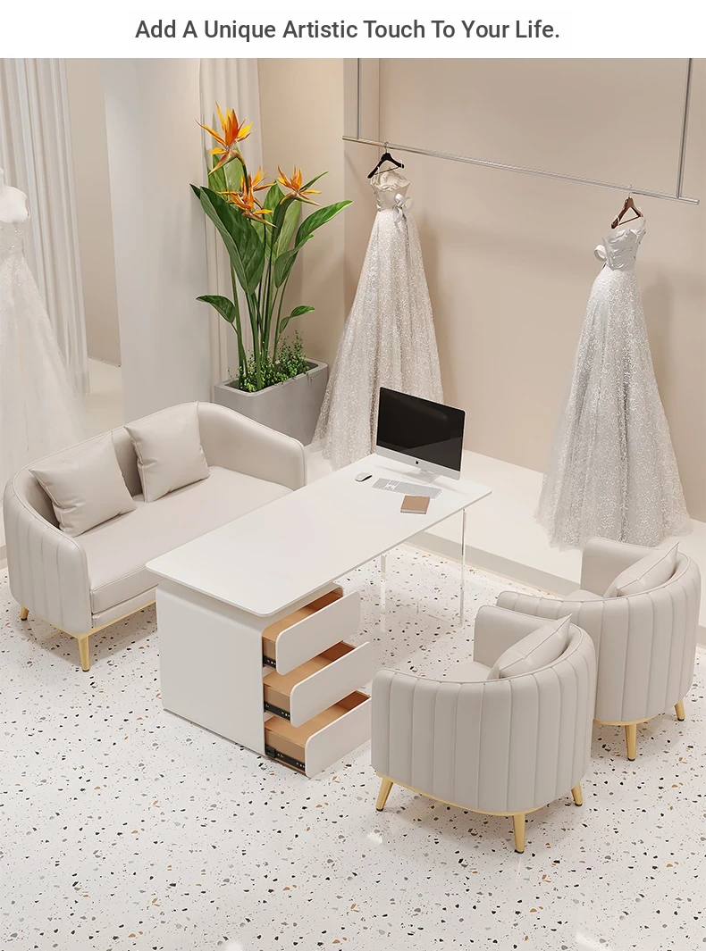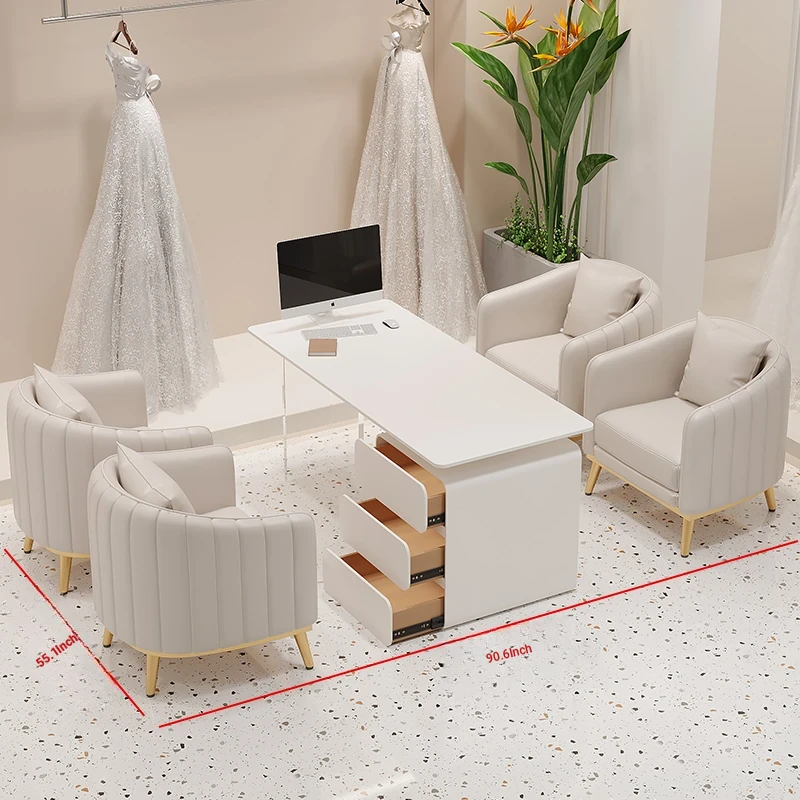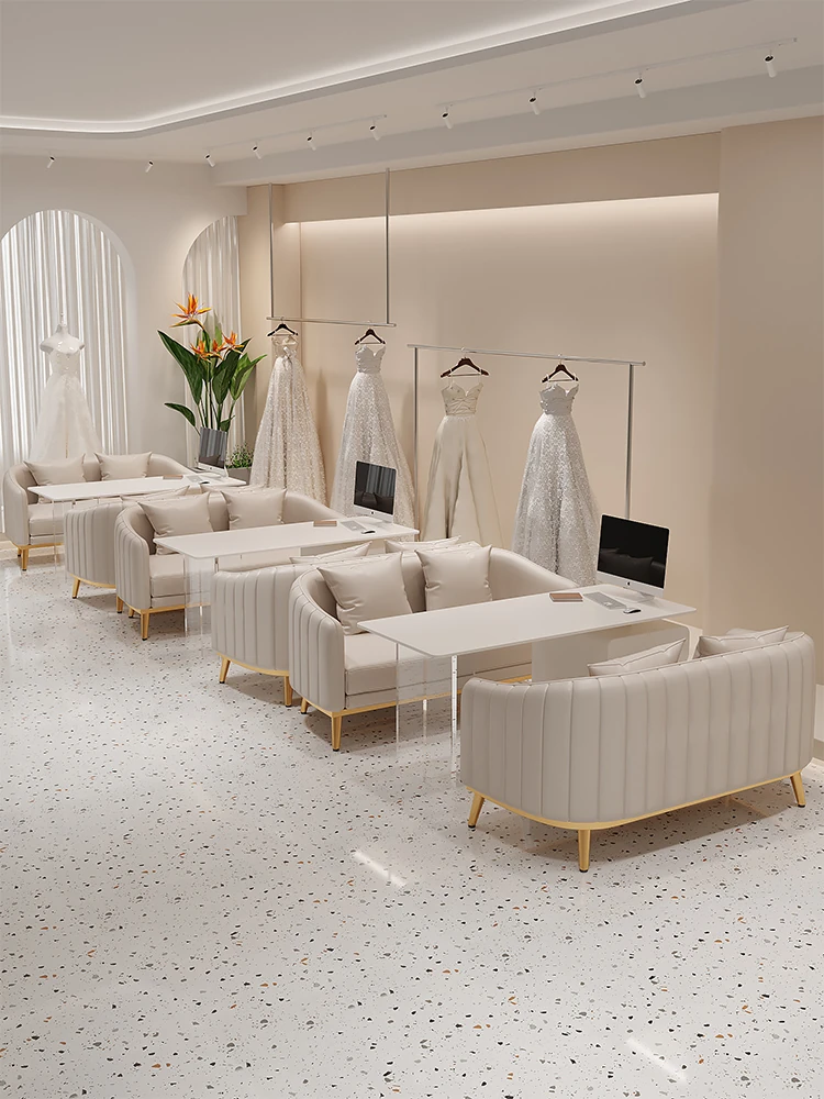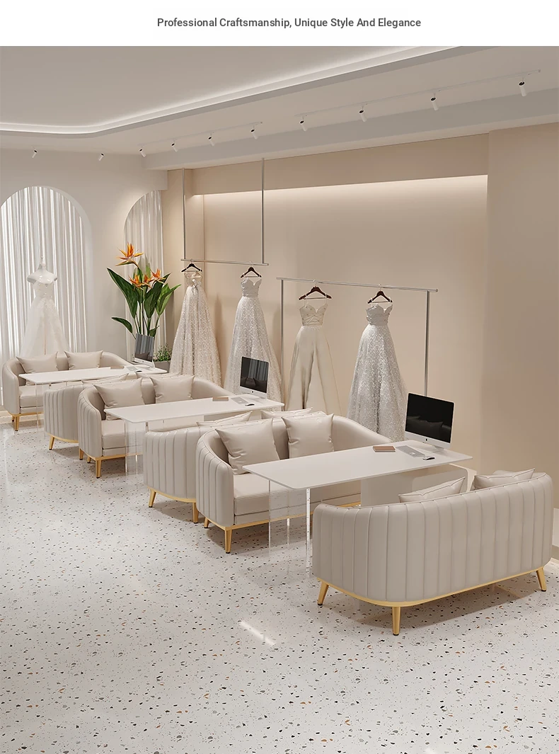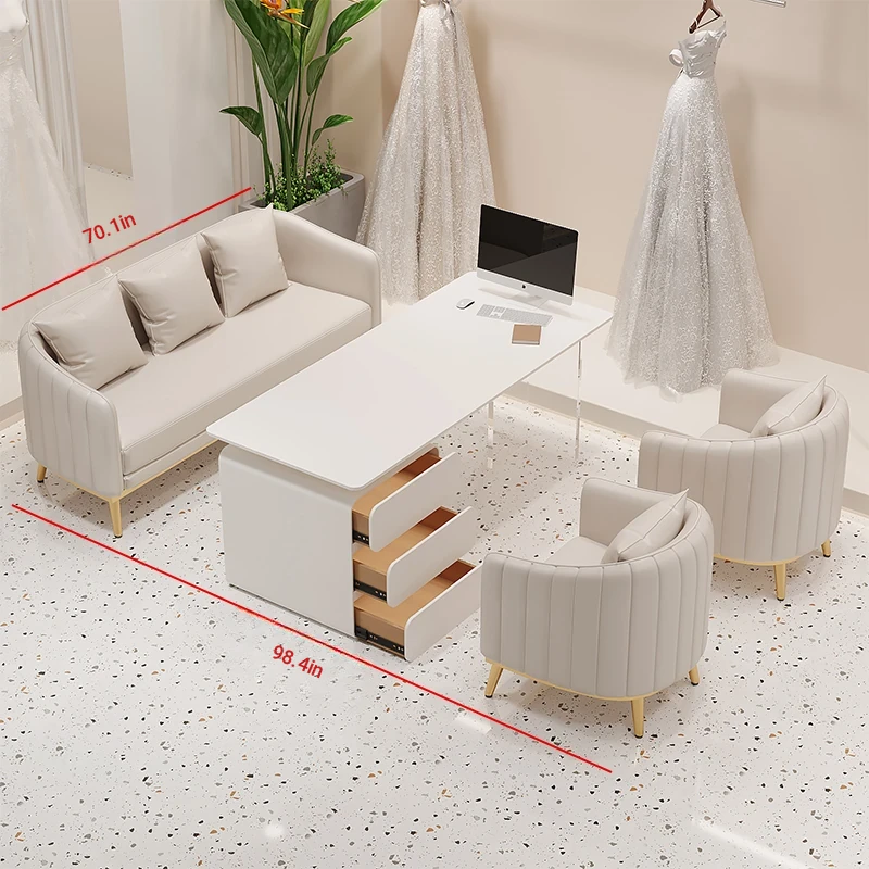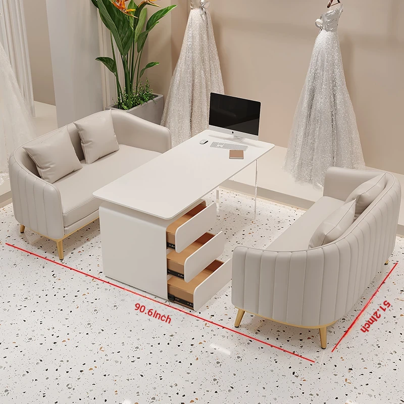 Creamy Style Sofa Set for Bridal Shop - Elegant Reception Area Seating and Consultation Table for Beauty Salons and Nail Studios. Perfect for creating a welcoming atmosphere!