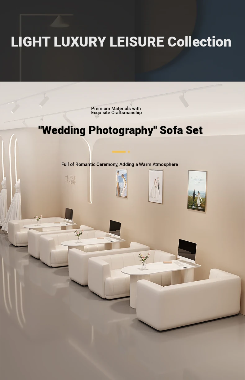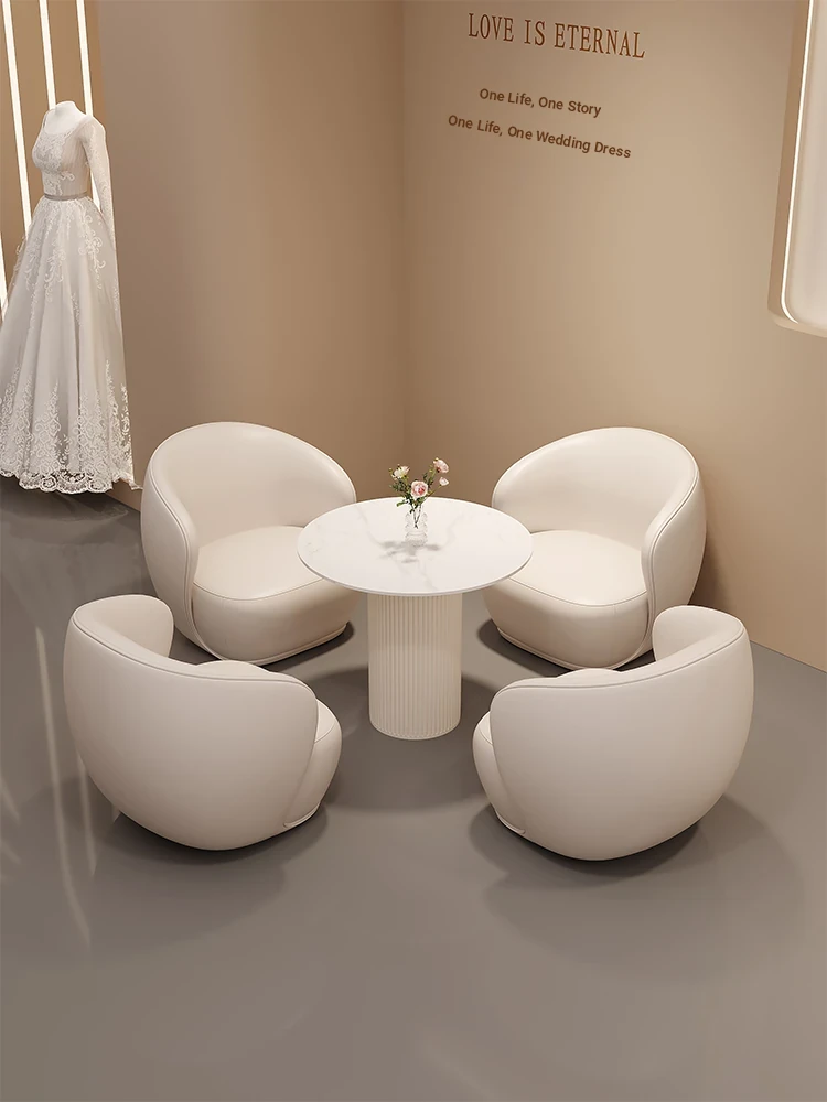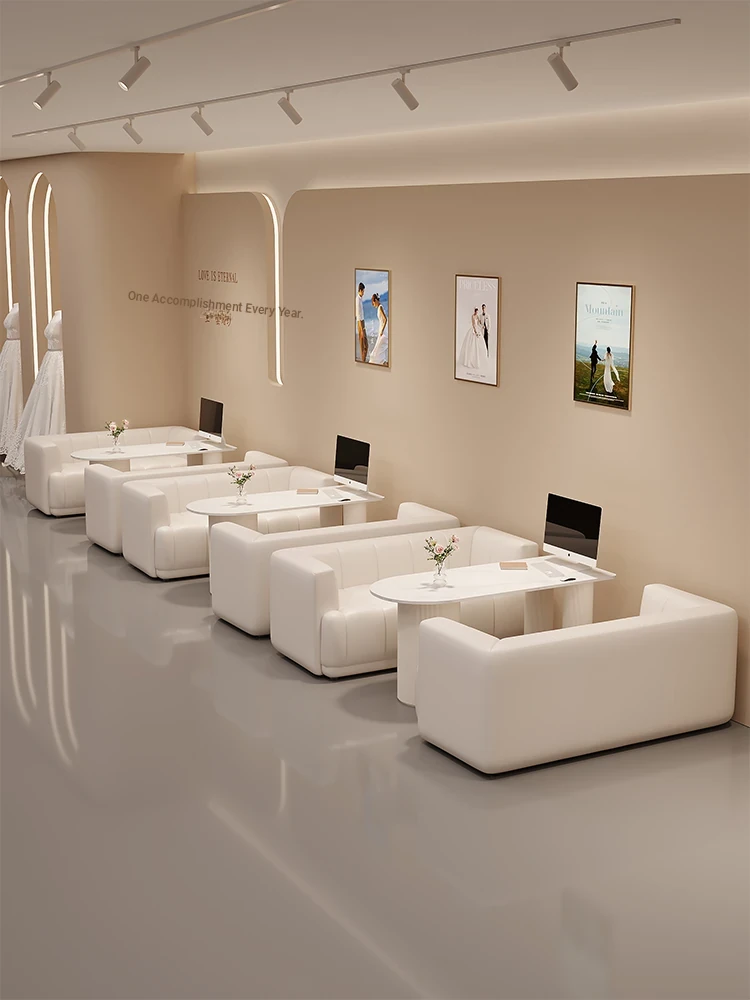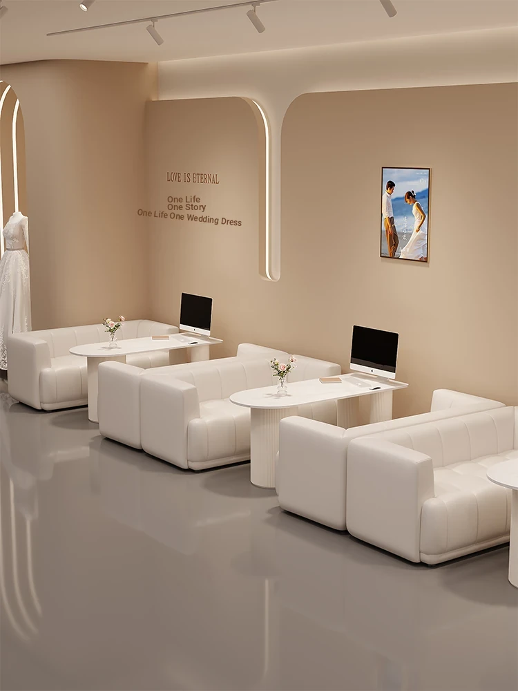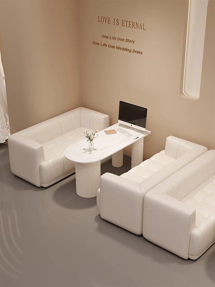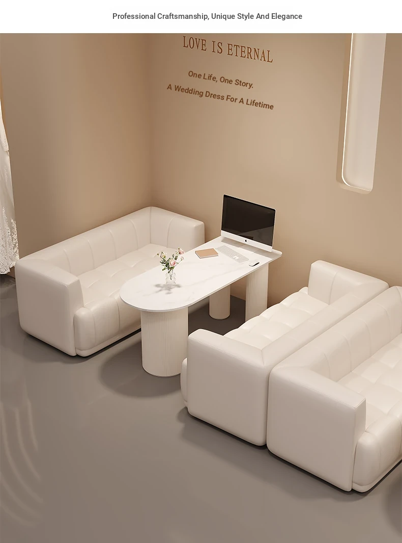 Elegant Cream Wedding Dress Shop Reception Sofa Set - Perfect for Beauty Salons and Meeting Areas, Stylish Lounge Furniture for Relaxation and Discussion.