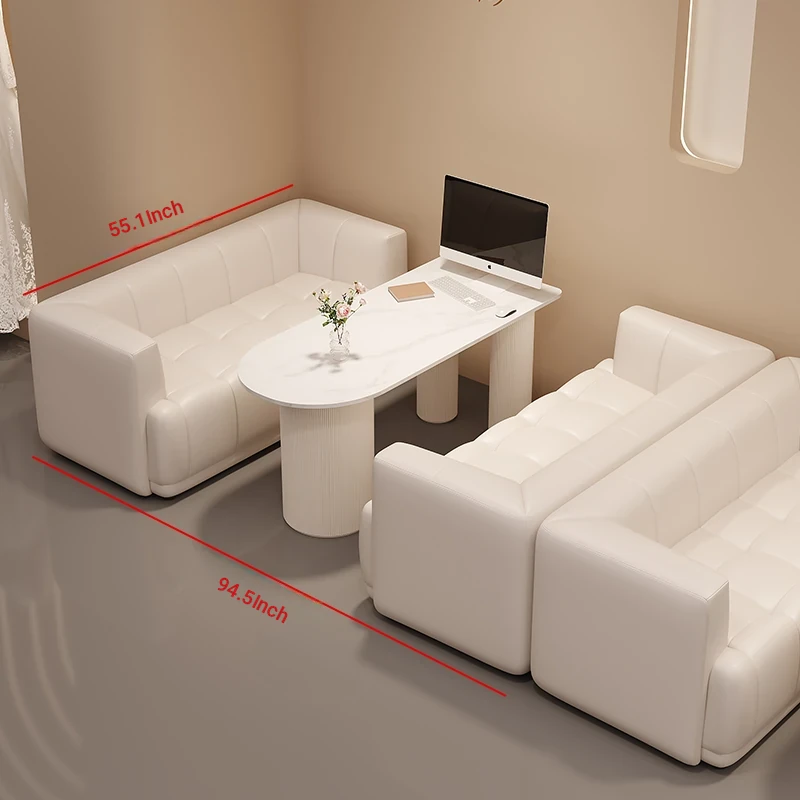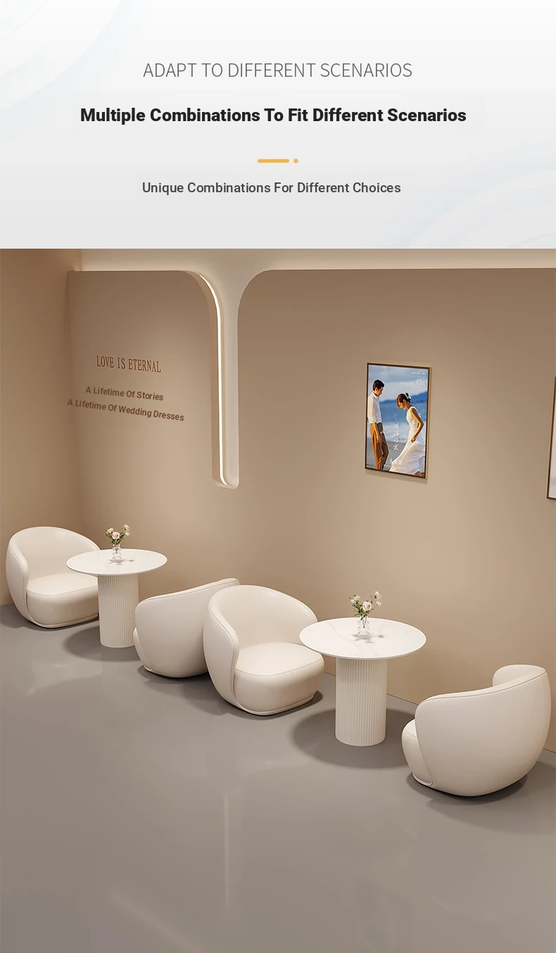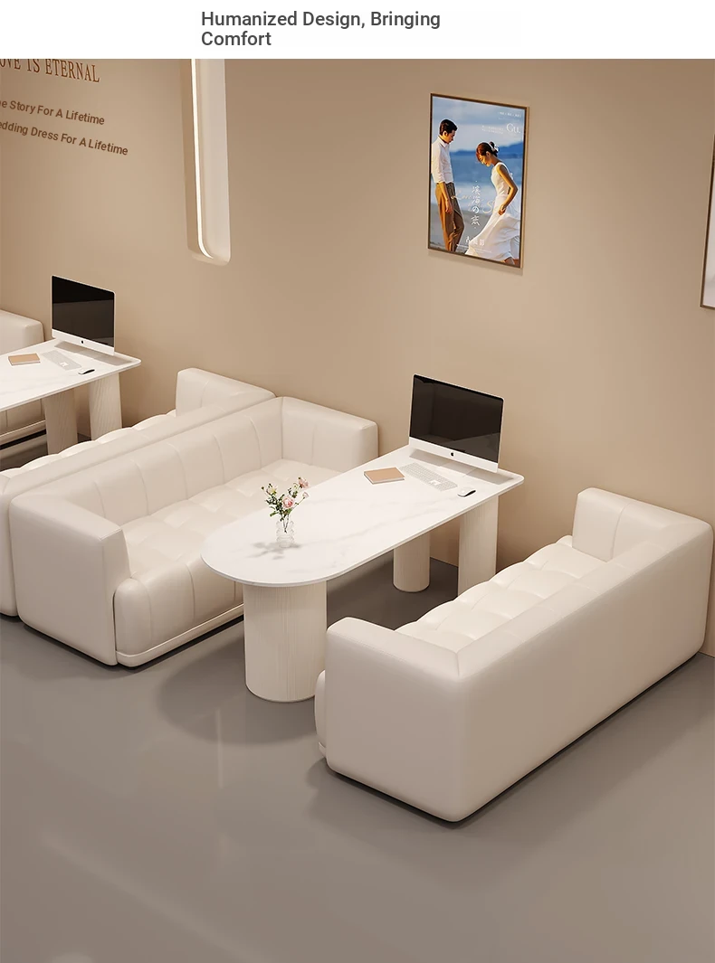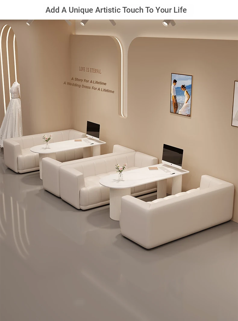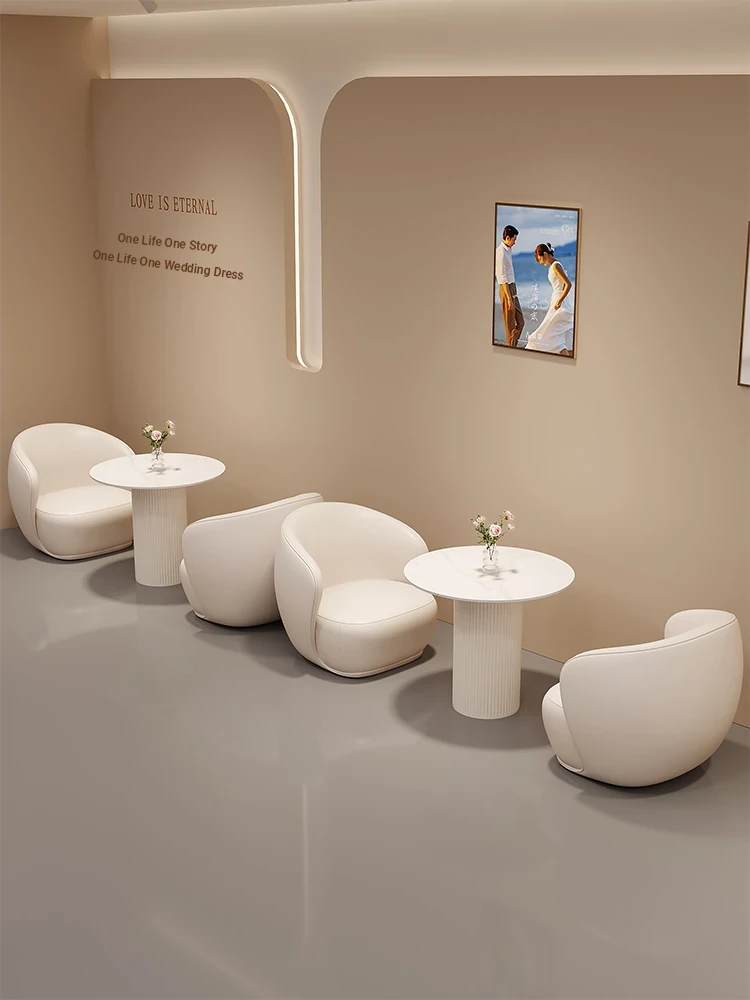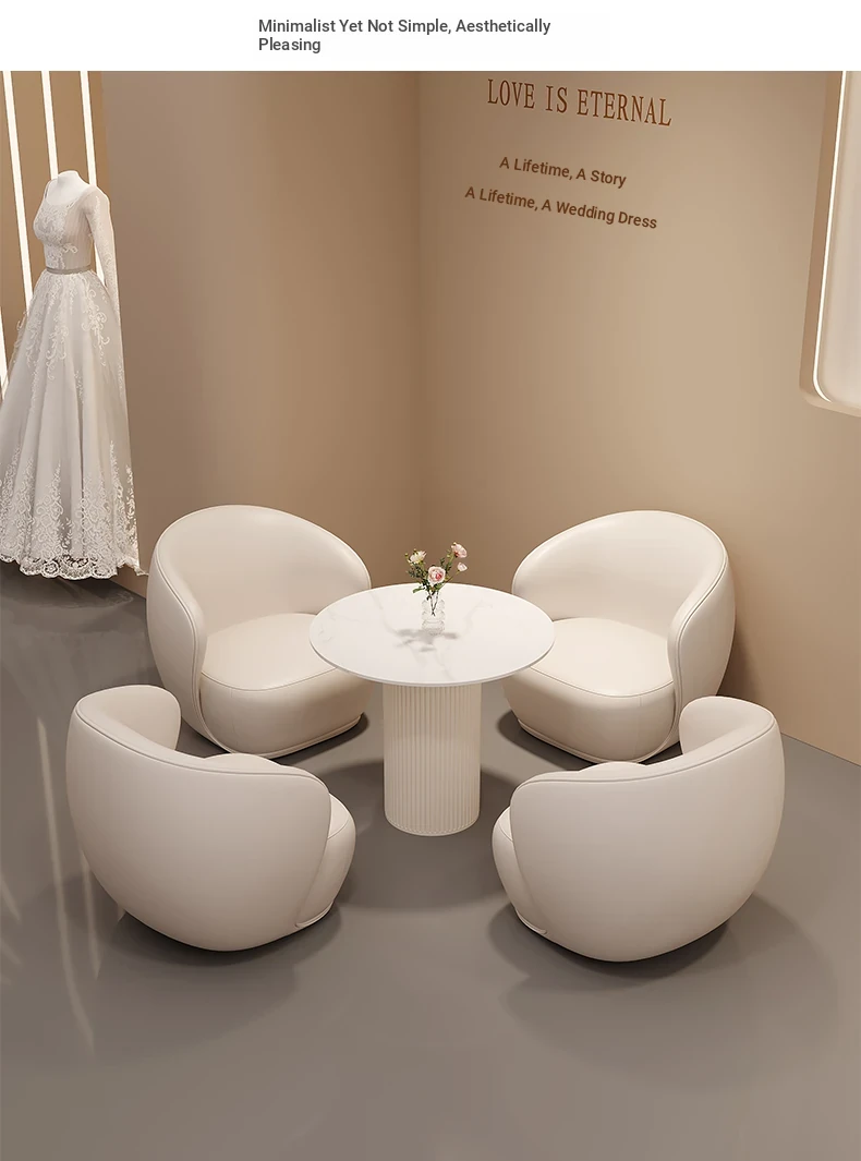 Elegant Cream Wedding Dress Shop Reception Sofa Set - Perfect for Beauty Salons and Meeting Areas, Stylish Lounge Furniture for Relaxation and Discussion.