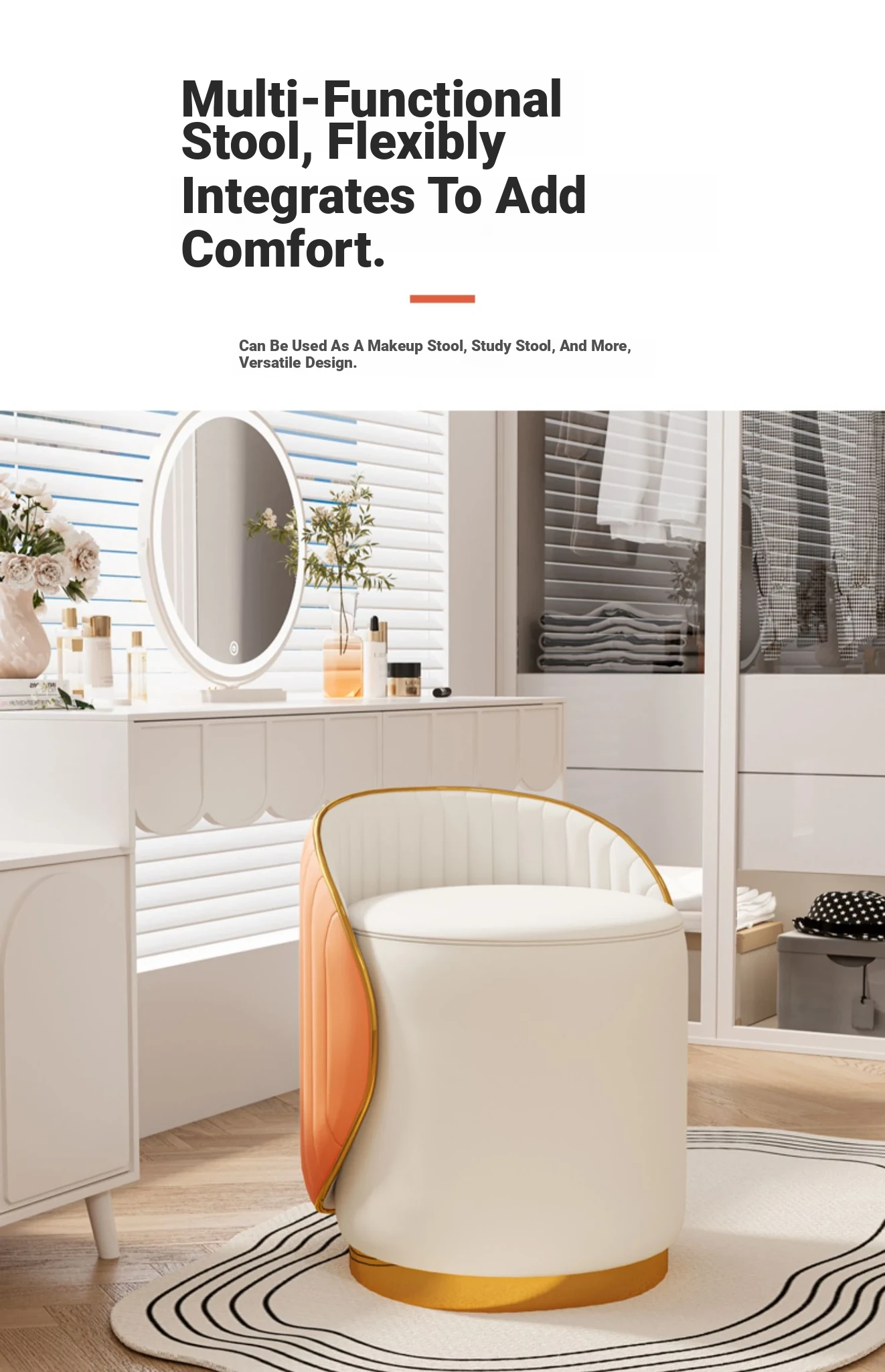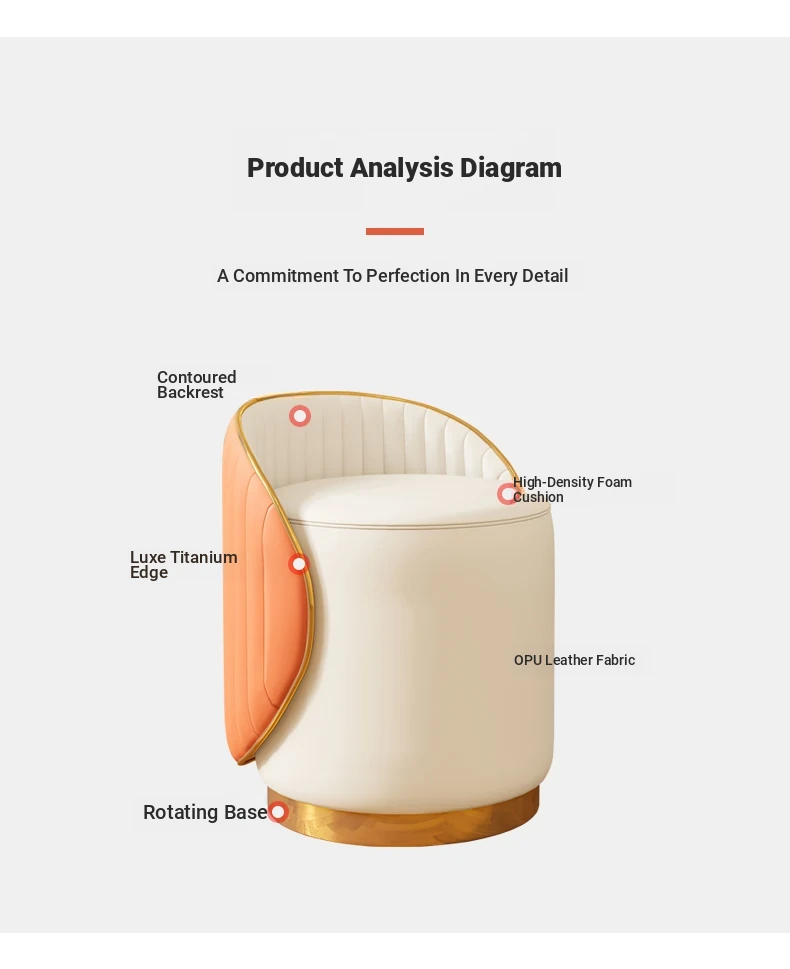 360 ° Rotatable White Orange [Accessible Luxury] Shell Dressing Stool