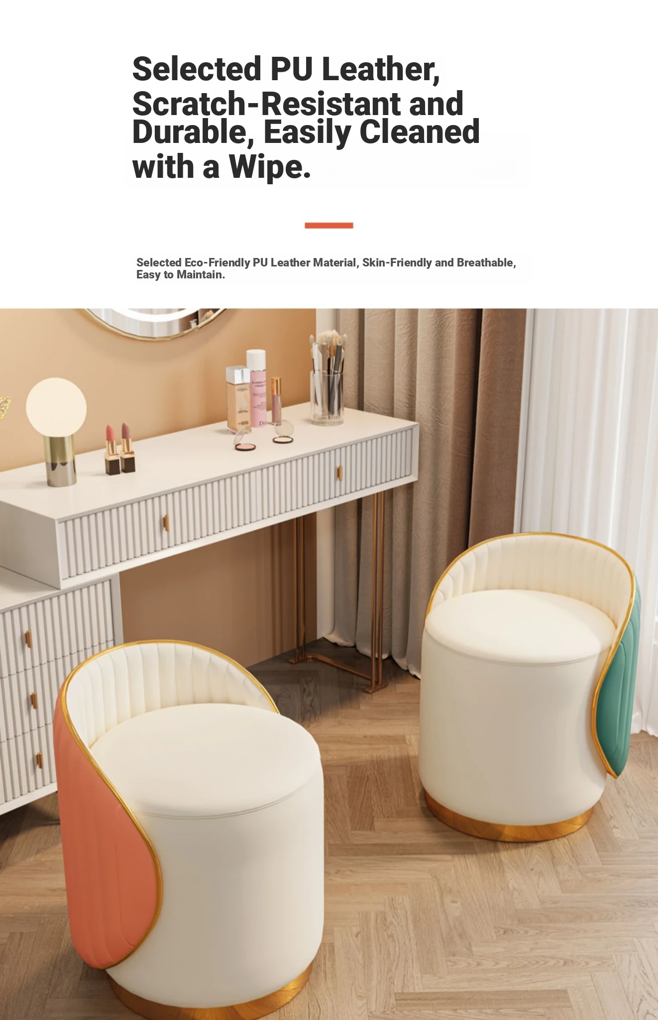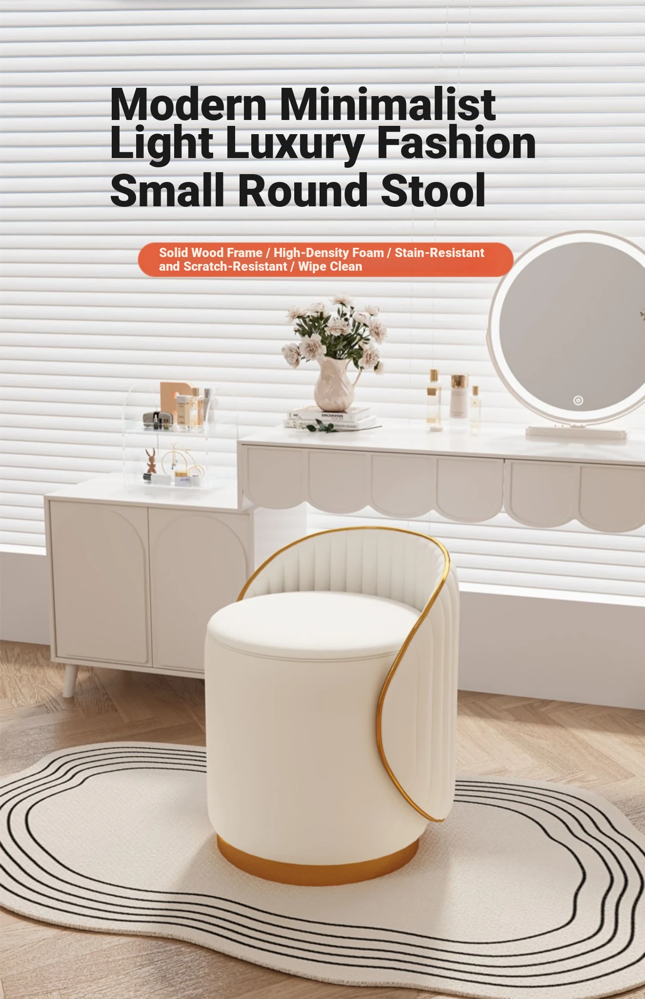 Elegant Makeup Stool for Vanity - Stylish, High-End Design for Home Use, Perfect for Bedrooms and Nail Salons, Comfortable Round Accent Chair with Versatile Functionality.