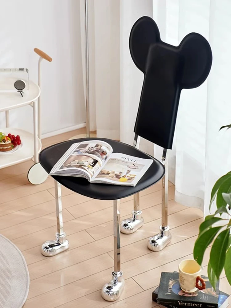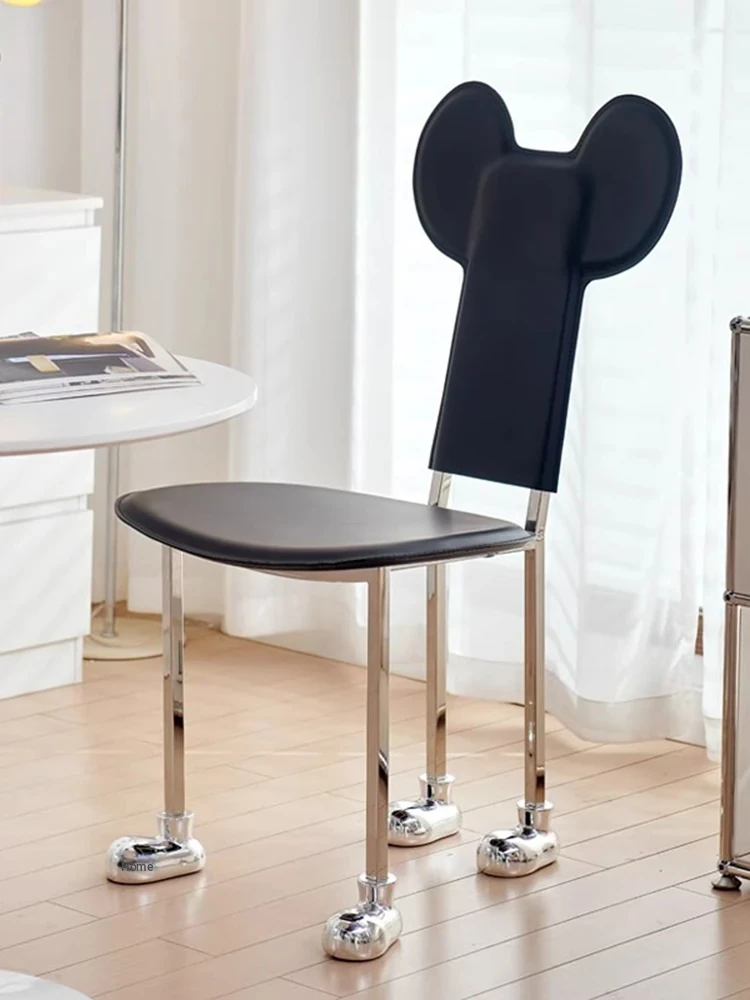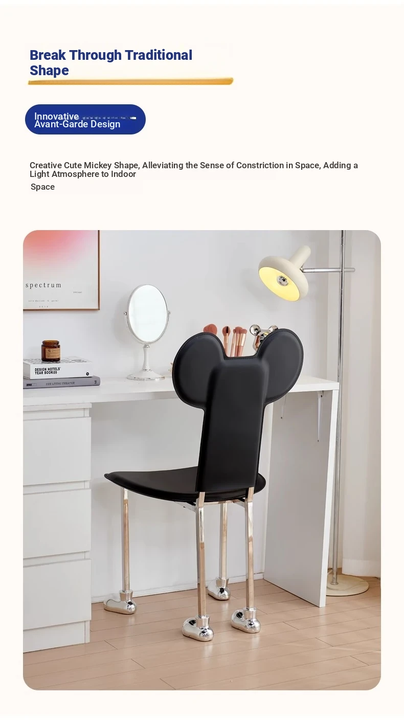 Elegant Makeup Stool with Backrest - Stylish Vanity Chair for Women, Perfect for Bedroom Dressing Tables - Chic Mid-Century Mickey Design