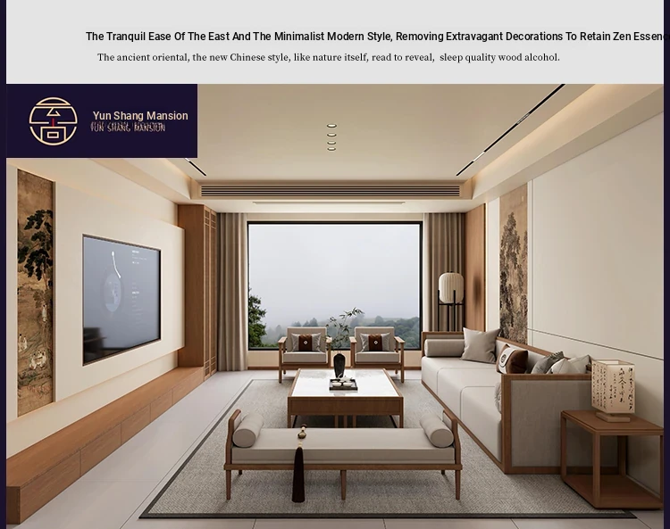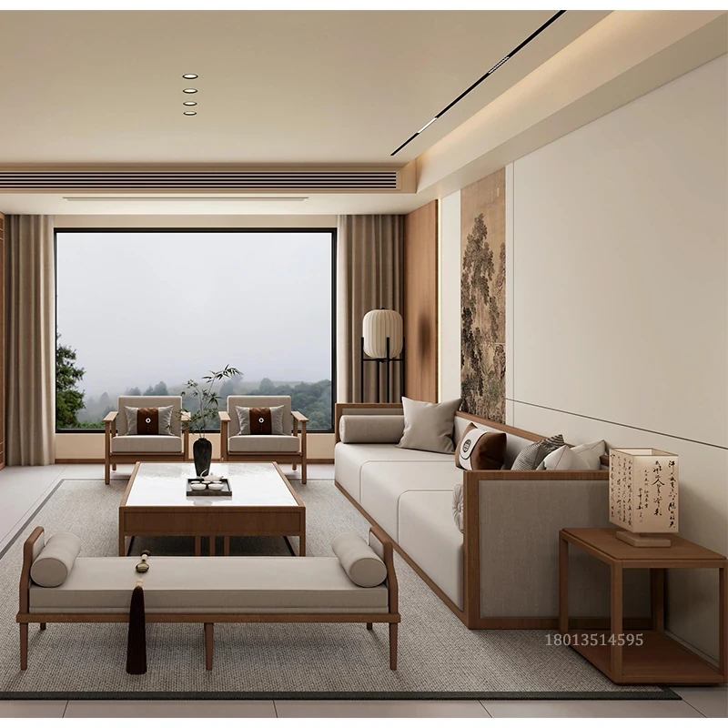 Elegant Song Dynasty Aesthetic New Chinese Solid Wood Sofa Set - Modern Minimalist High-End Furniture for Villa Showrooms and Living Rooms