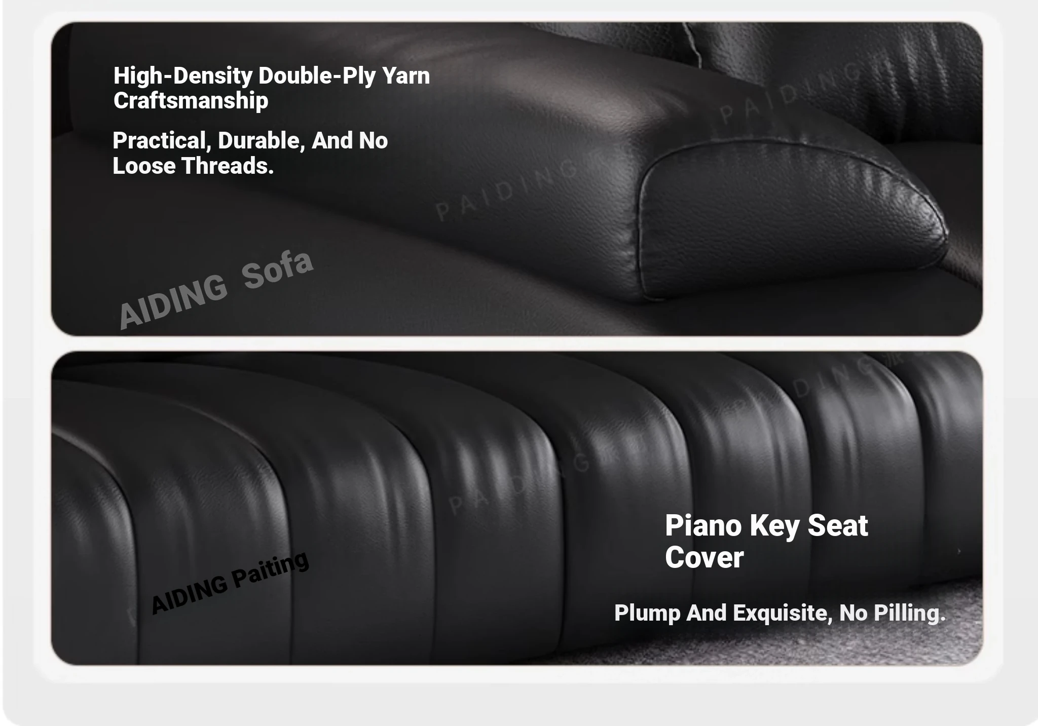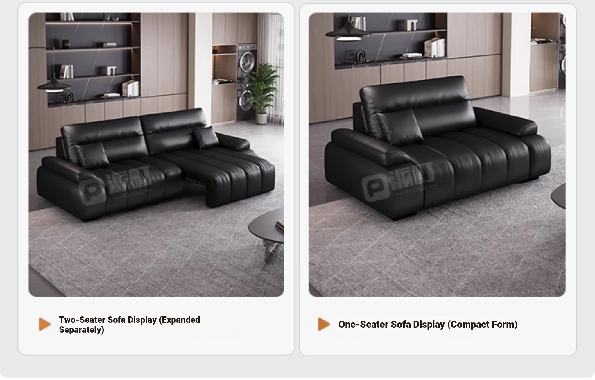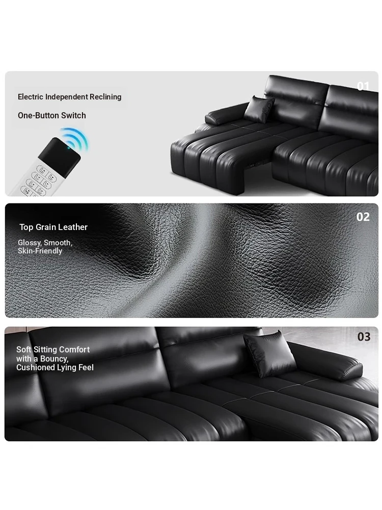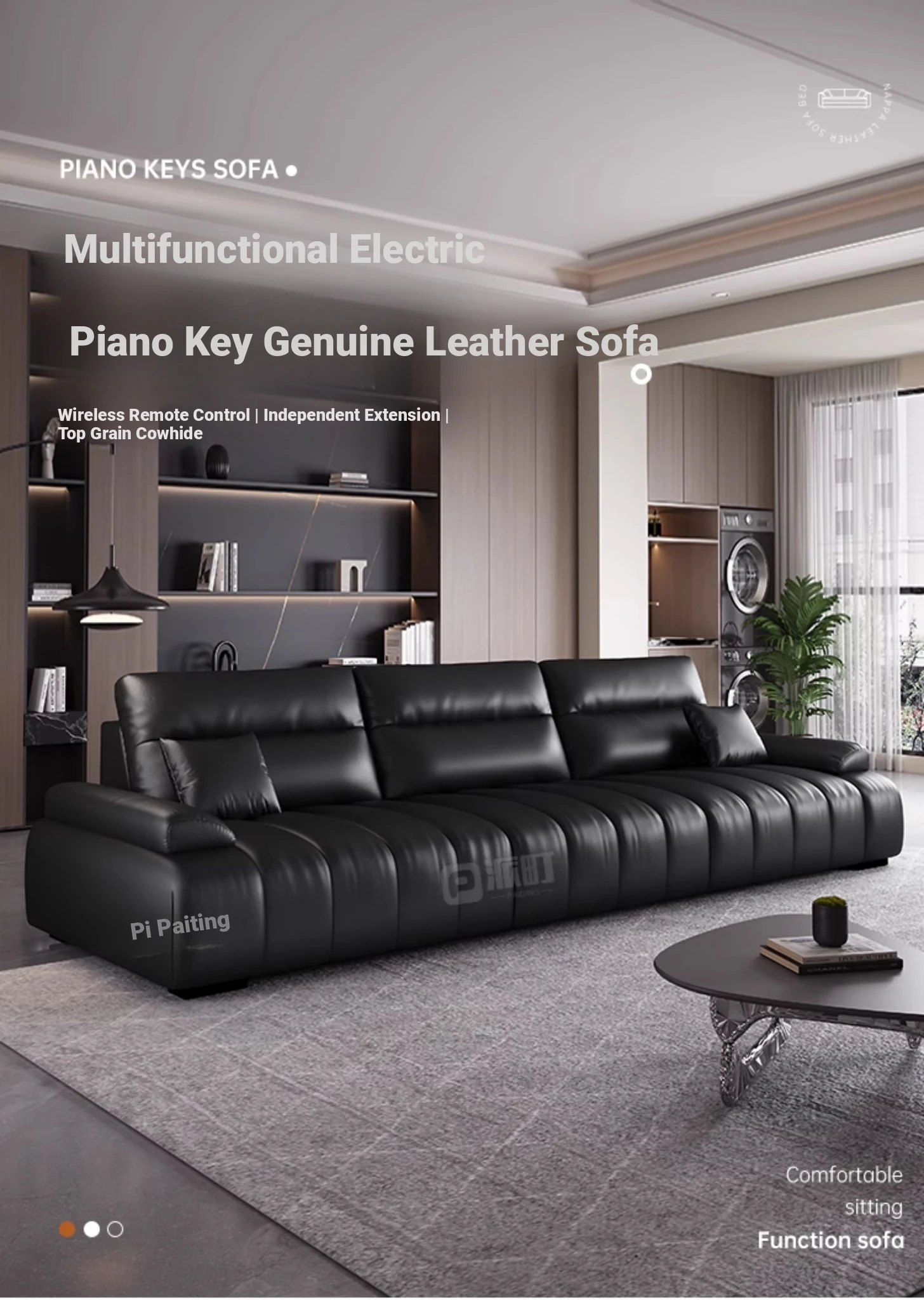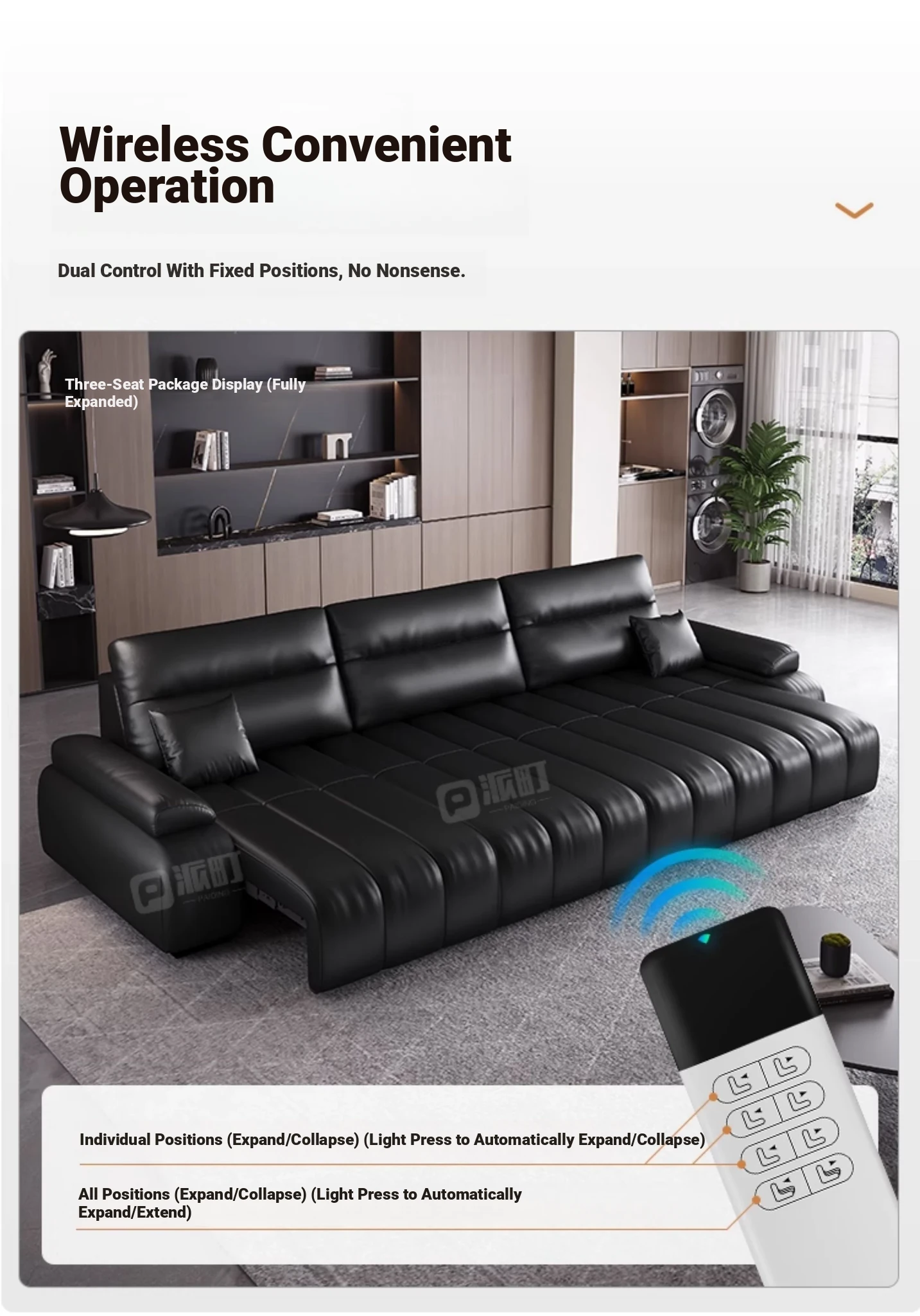 Italian Minimalist Electric Sofa with Piano Key Design - Genuine Top-Grain Leather, Wall-Mounted, Deep Seating, and Hidden Storage for a Stylish Living Room