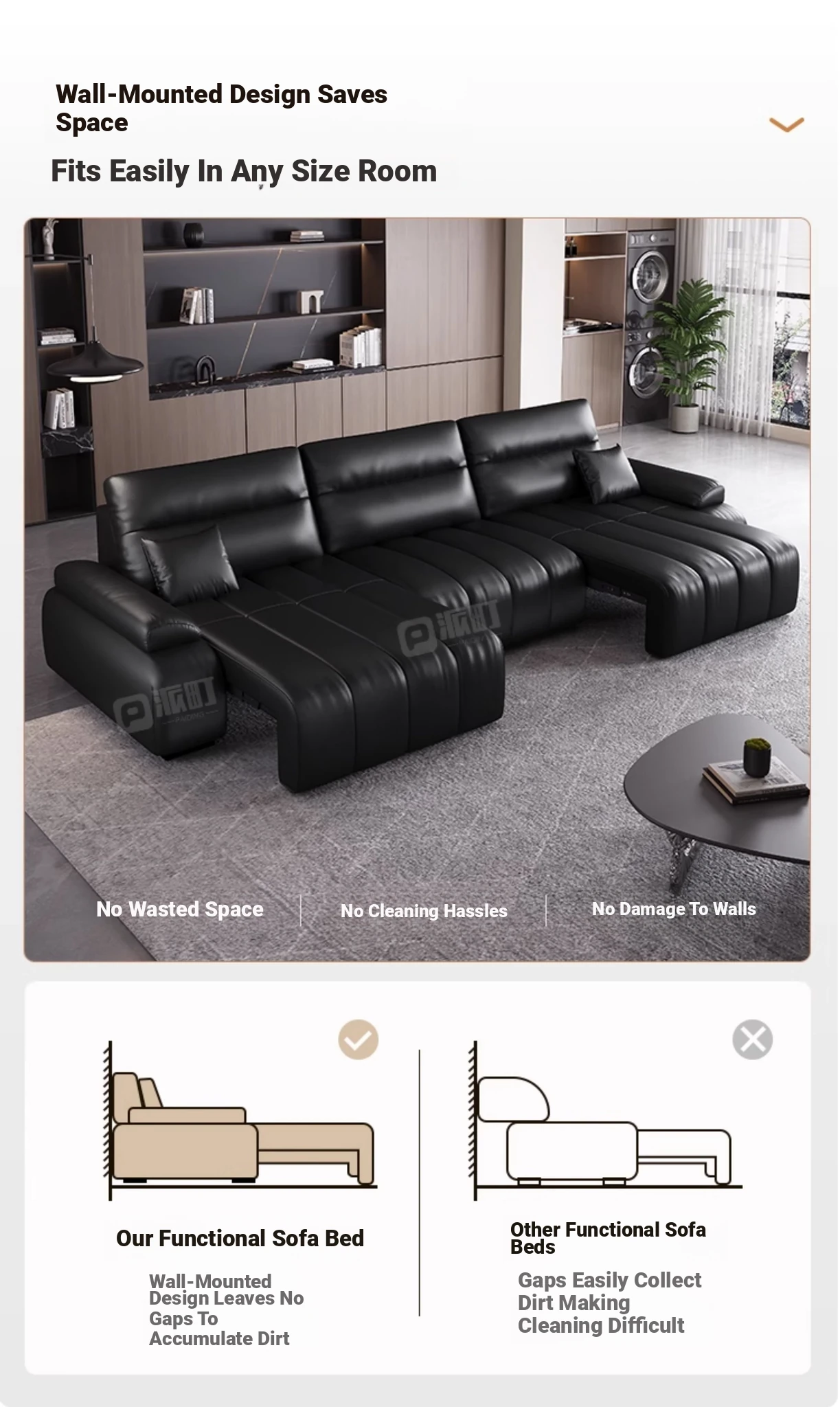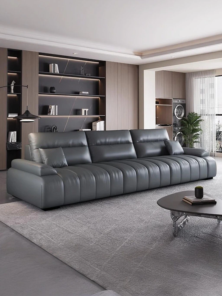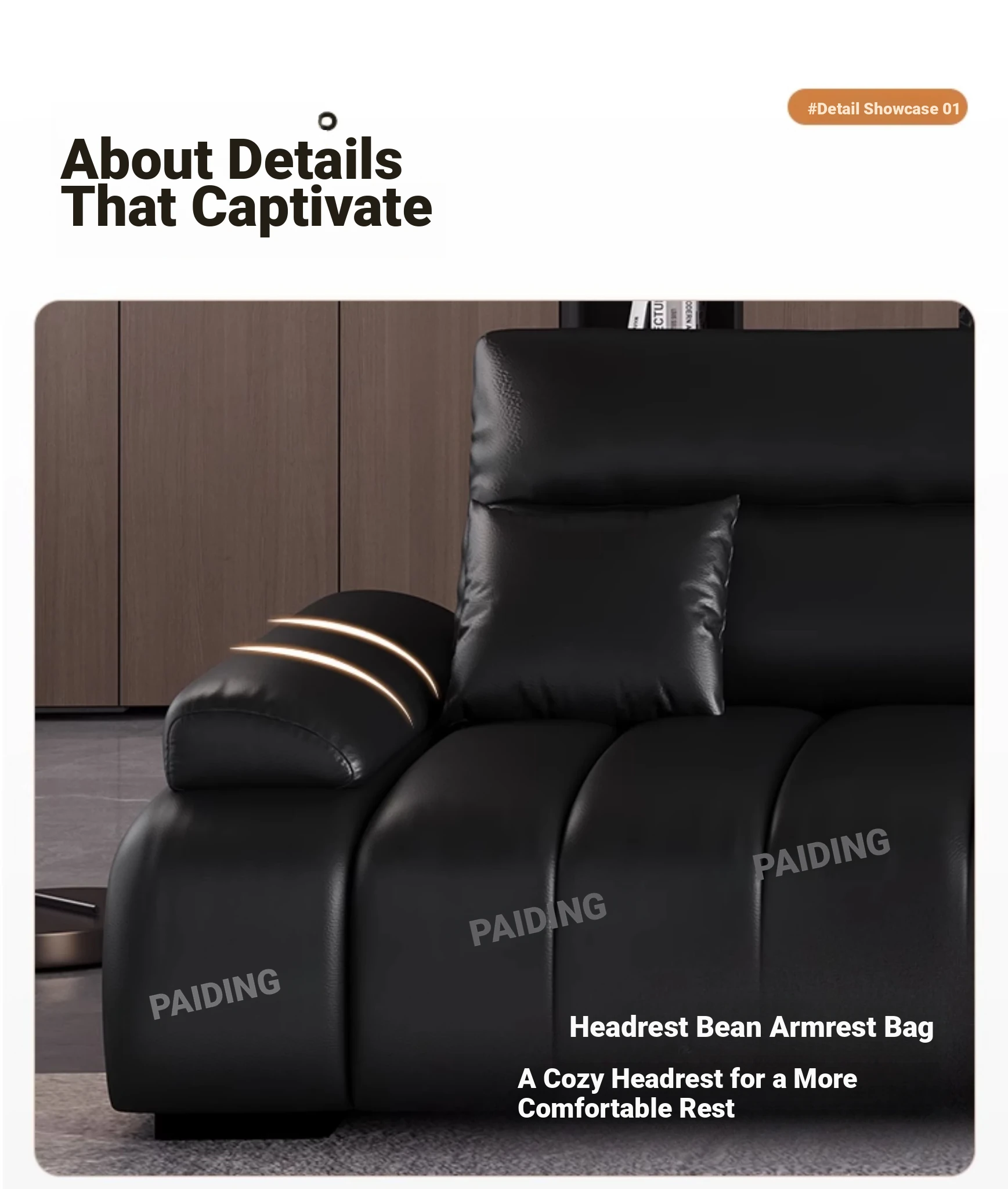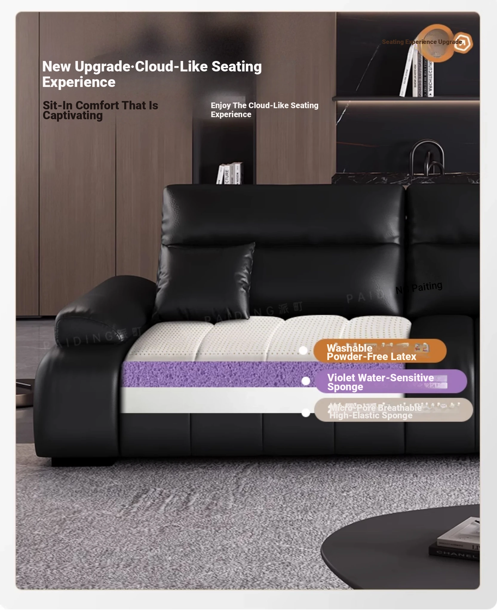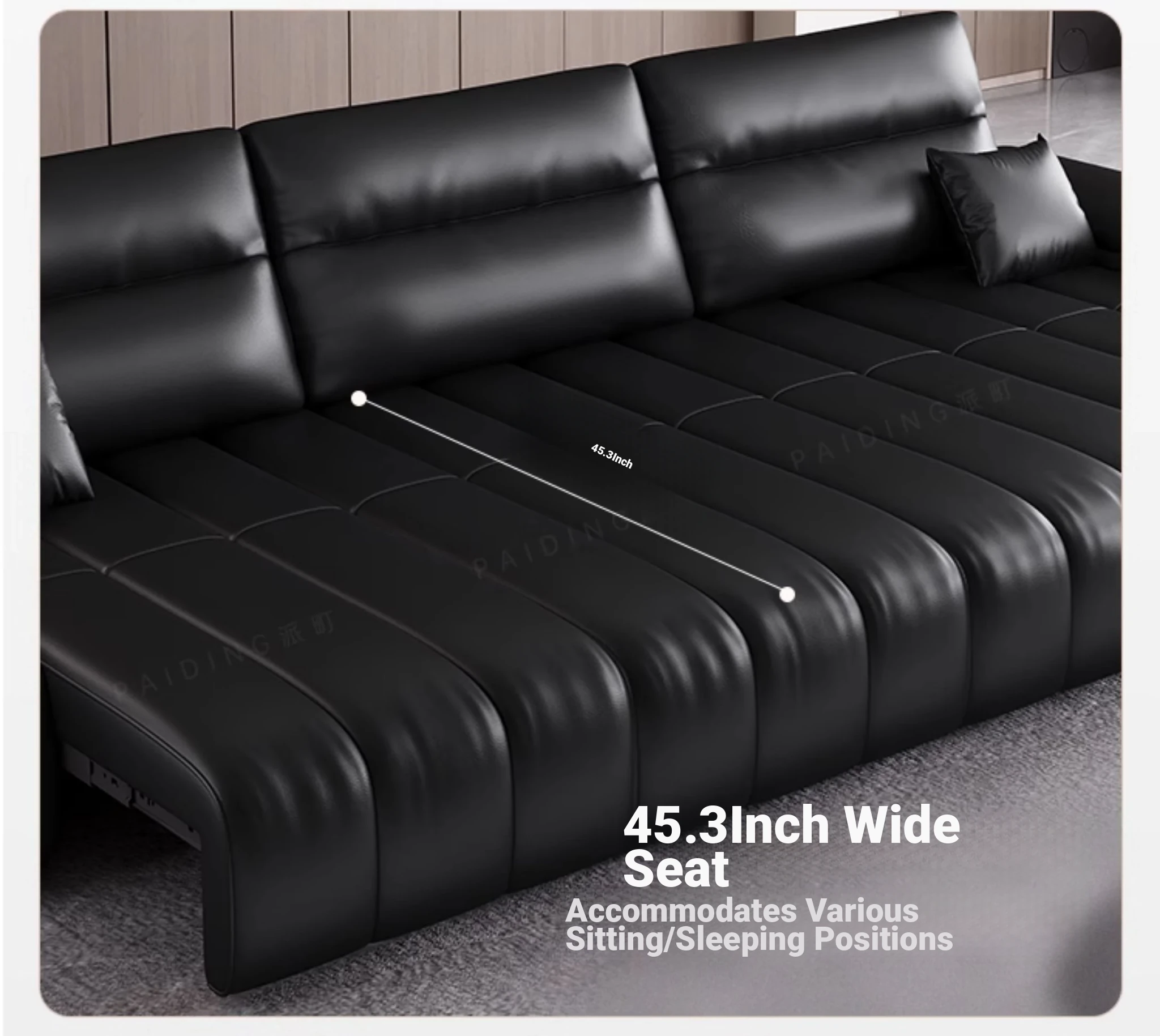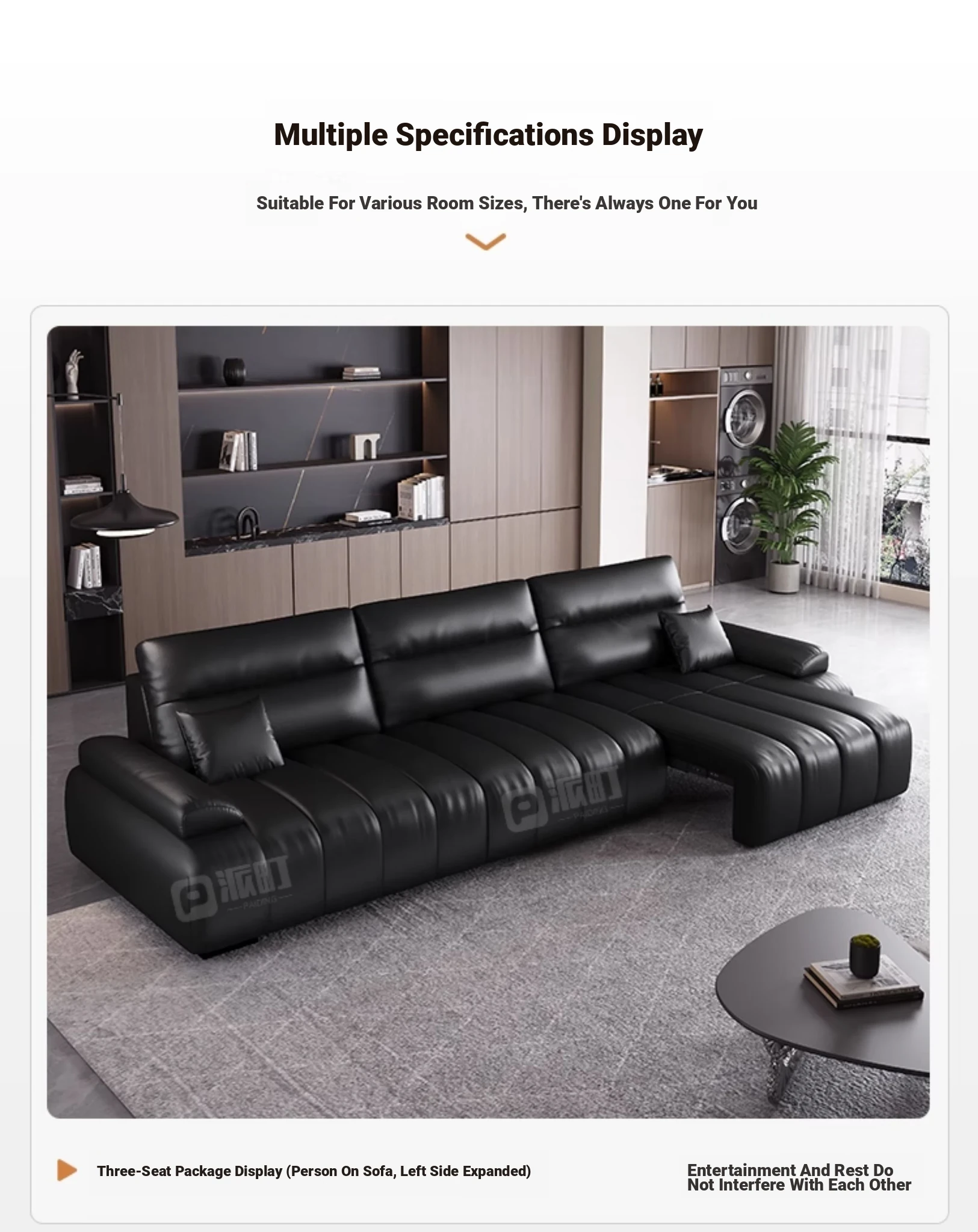 Italian Minimalist Electric Sofa with Piano Key Design - Genuine Top-Grain Leather, Wall-Mounted, Deep Seating, and Hidden Storage for a Stylish Living Room