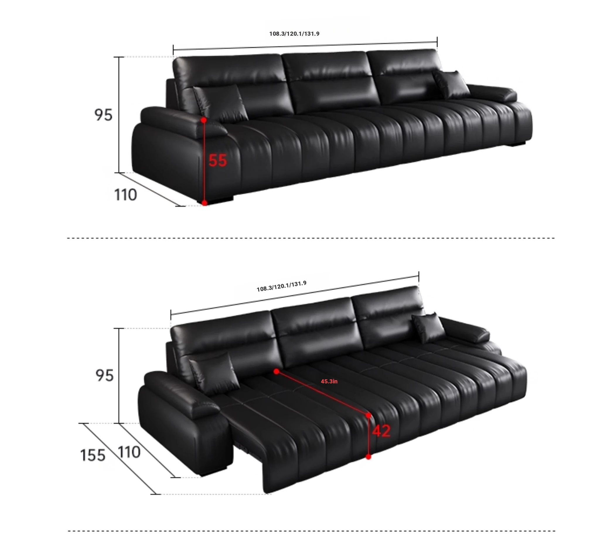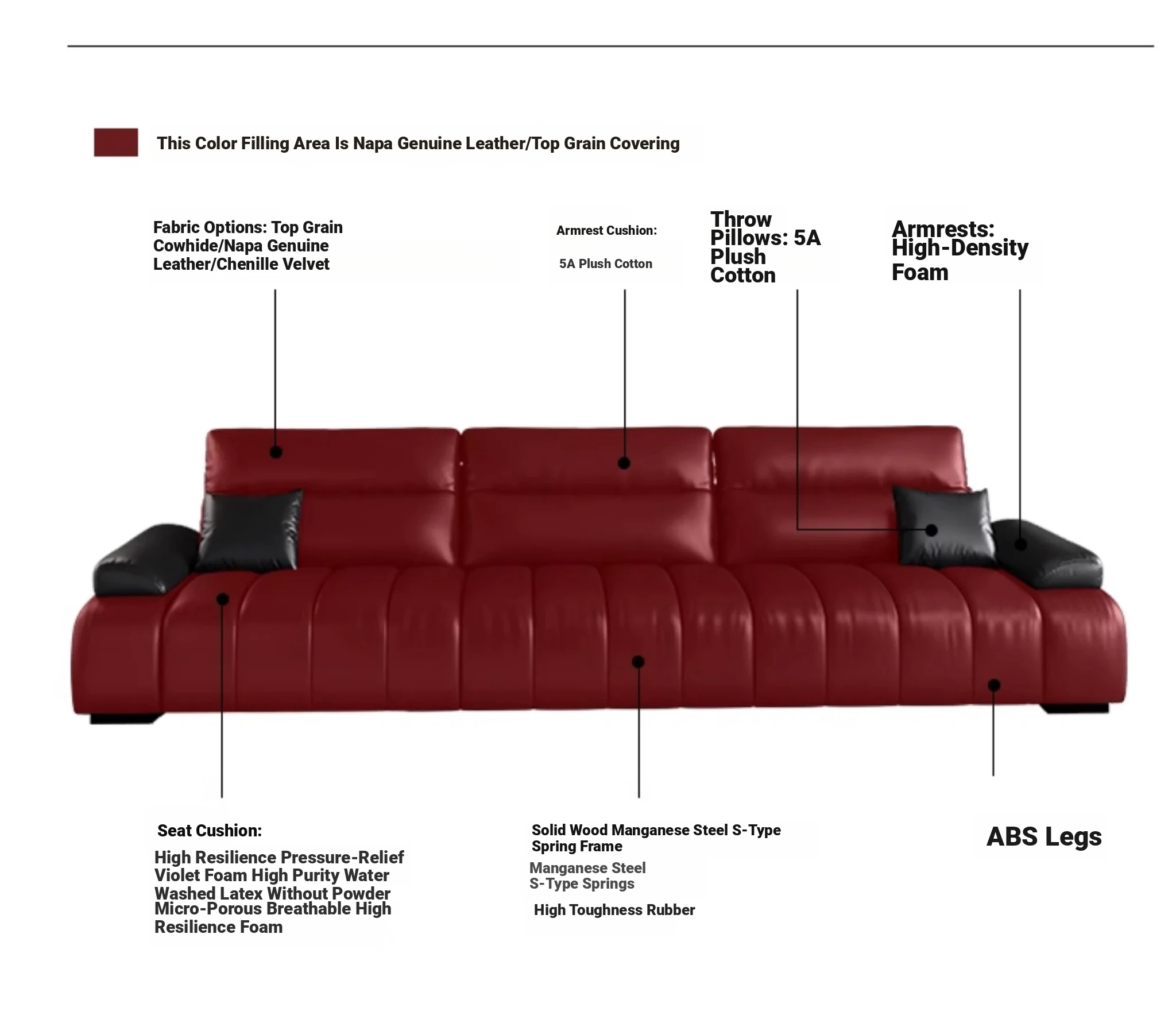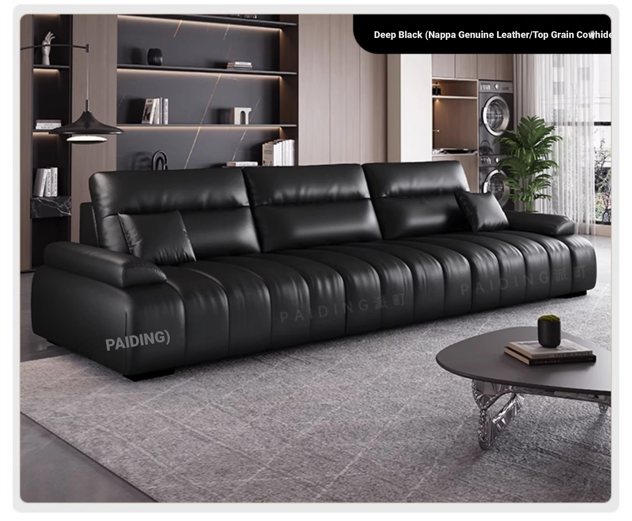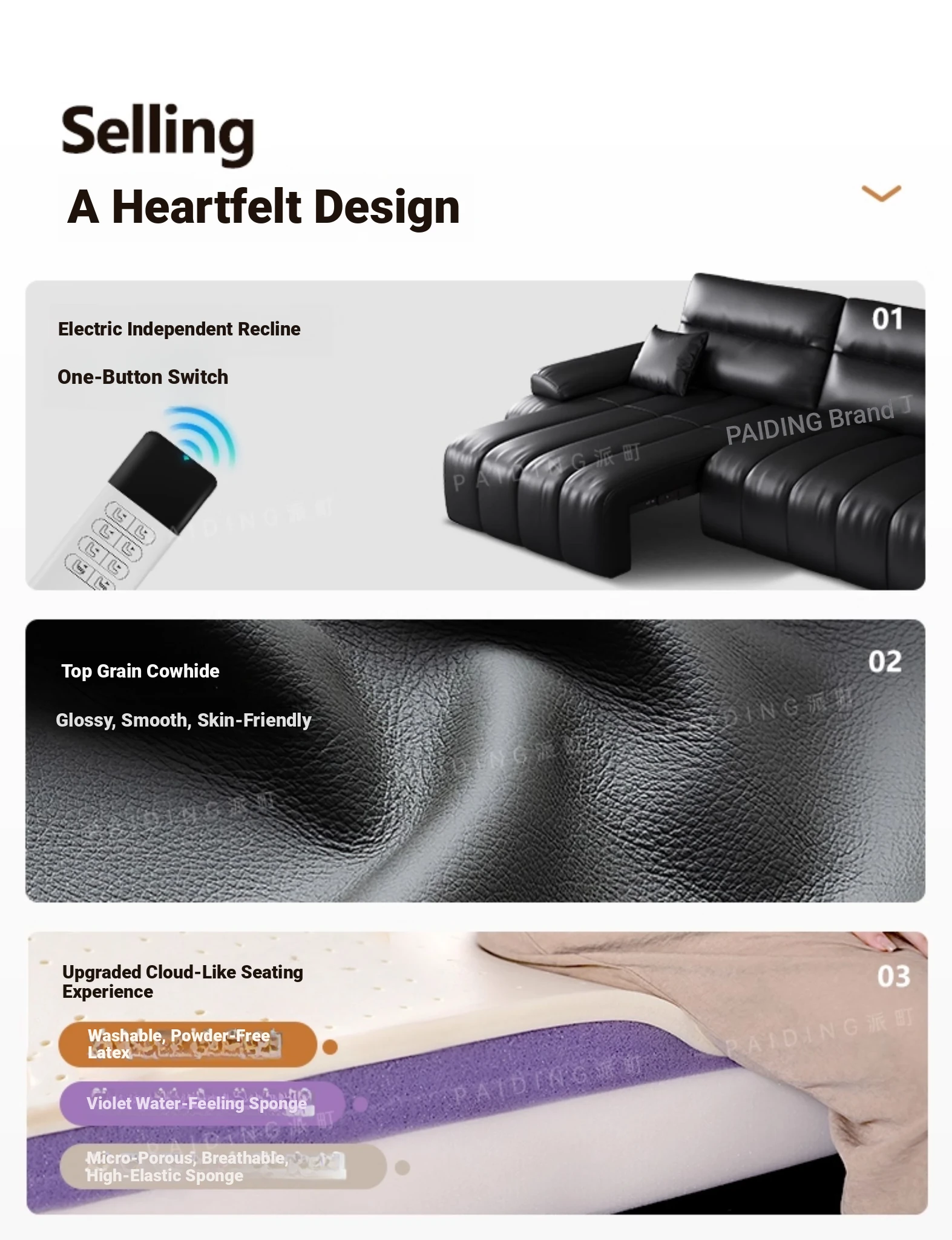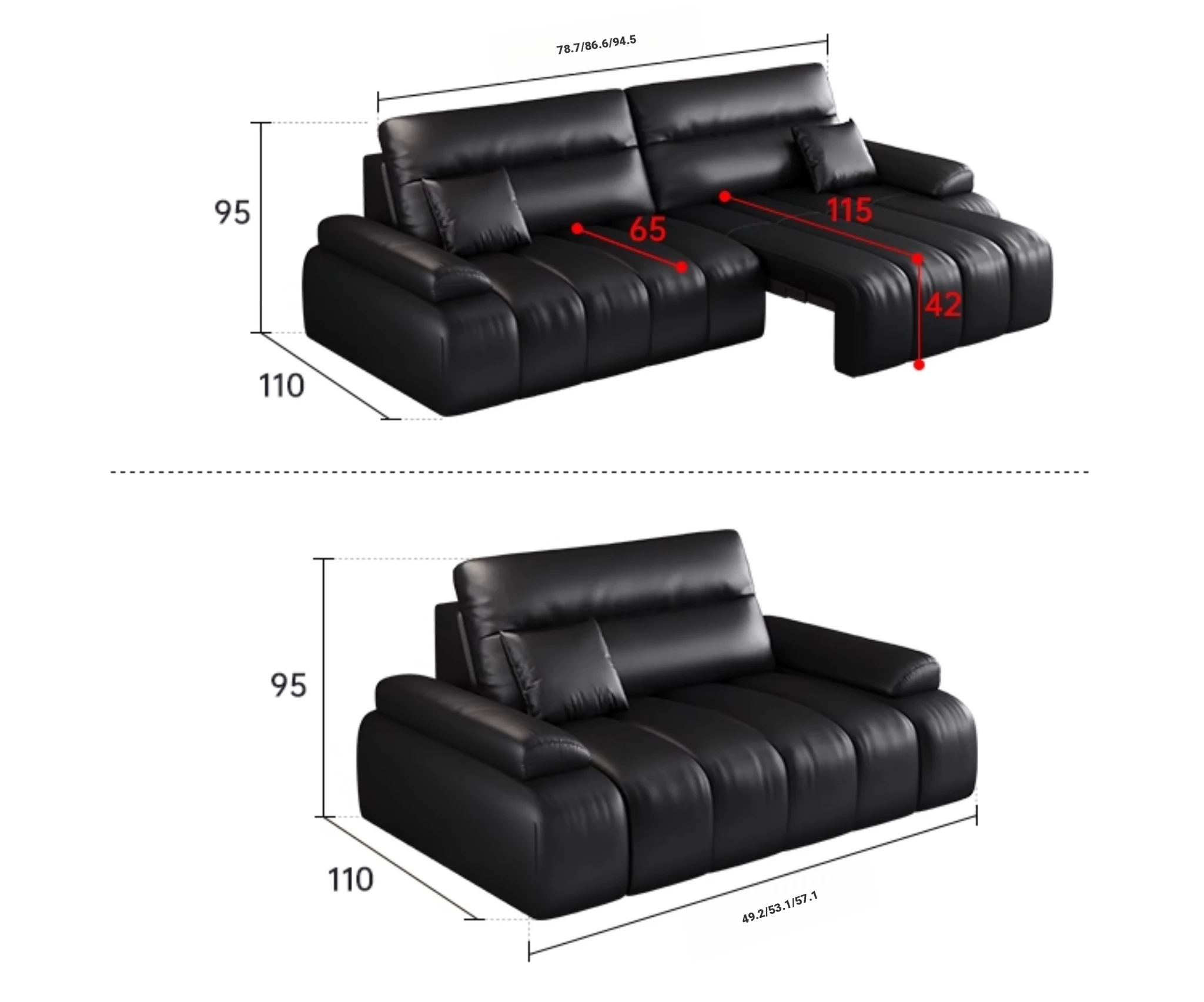 Italian Minimalist Electric Sofa with Piano Key Design - Genuine Top-Grain Leather, Wall-Mounted, Deep Seating, and Hidden Storage for a Stylish Living Room