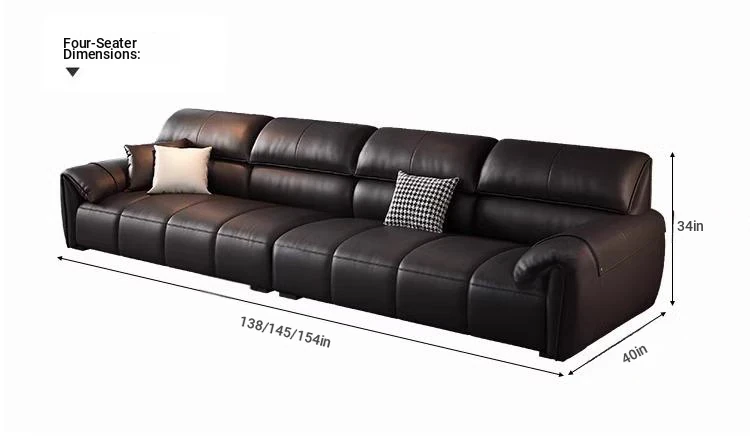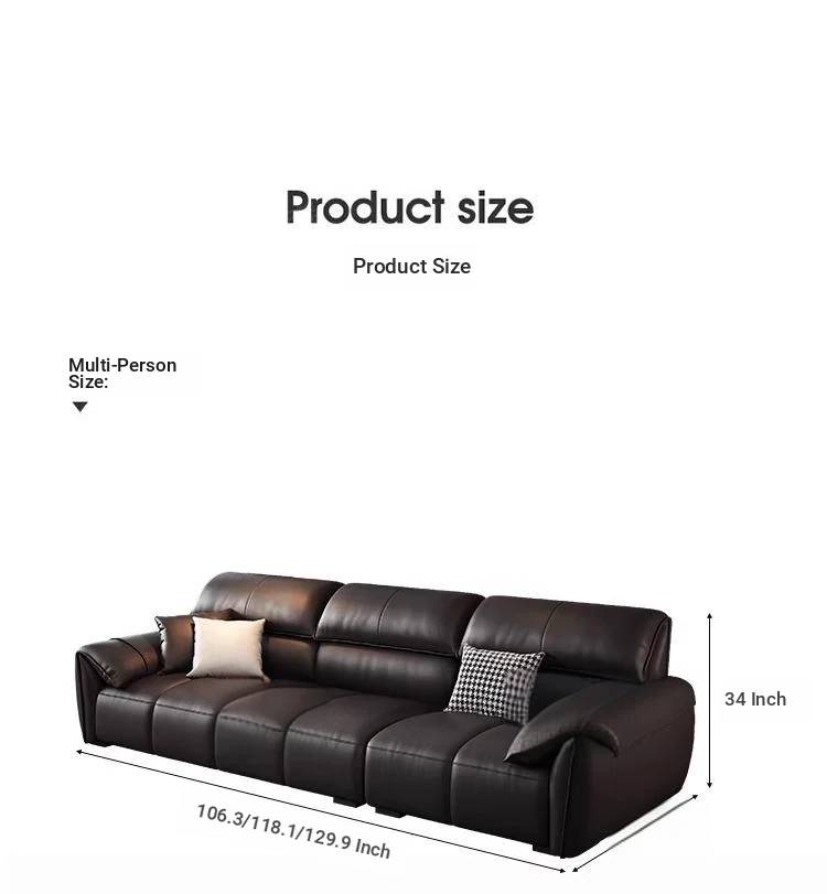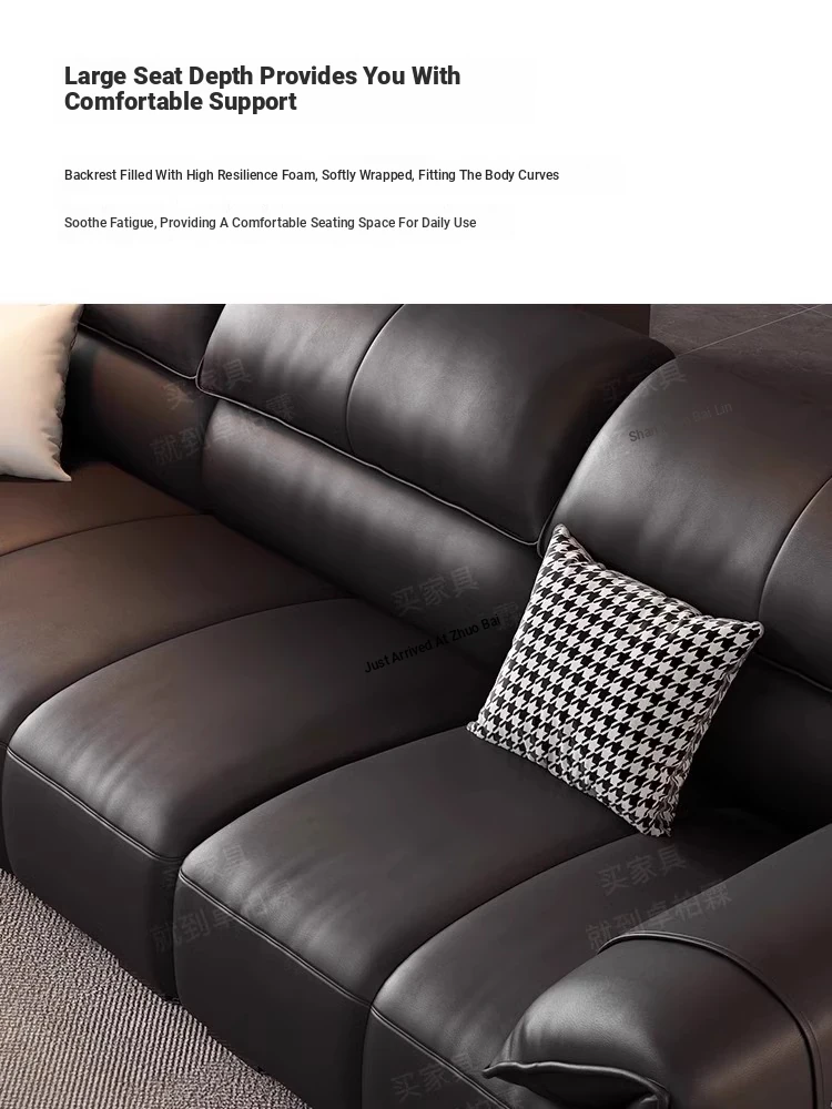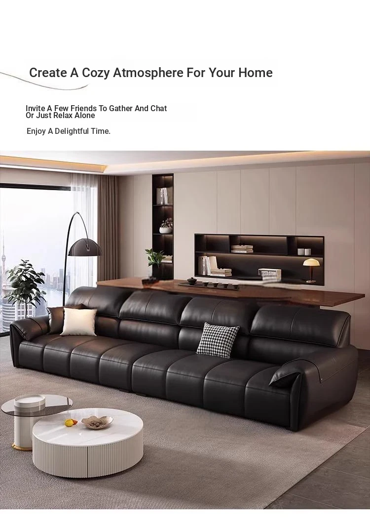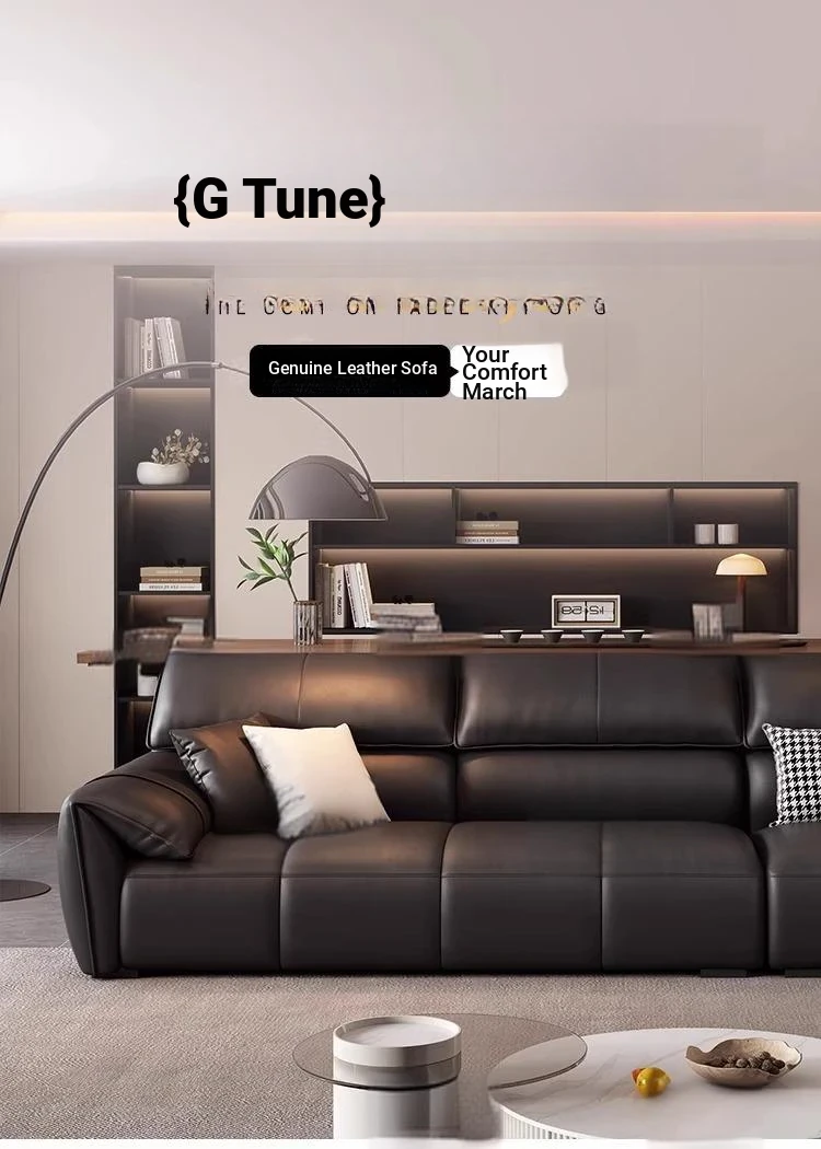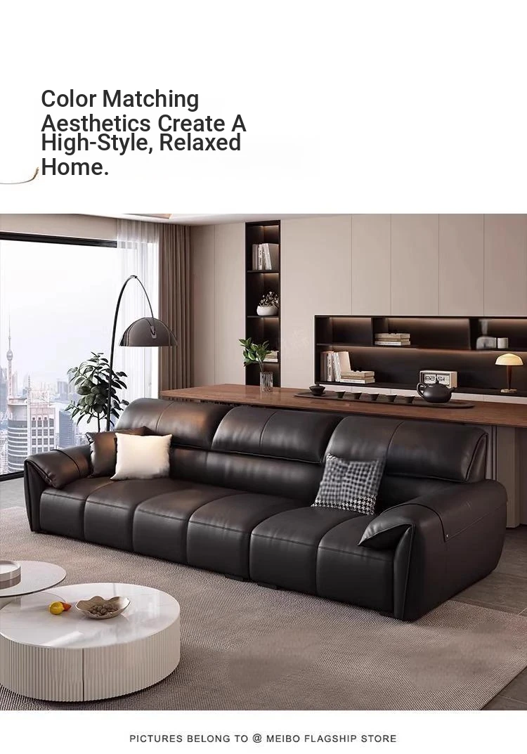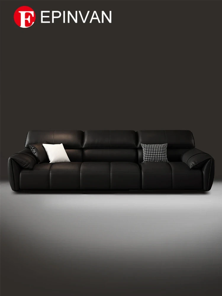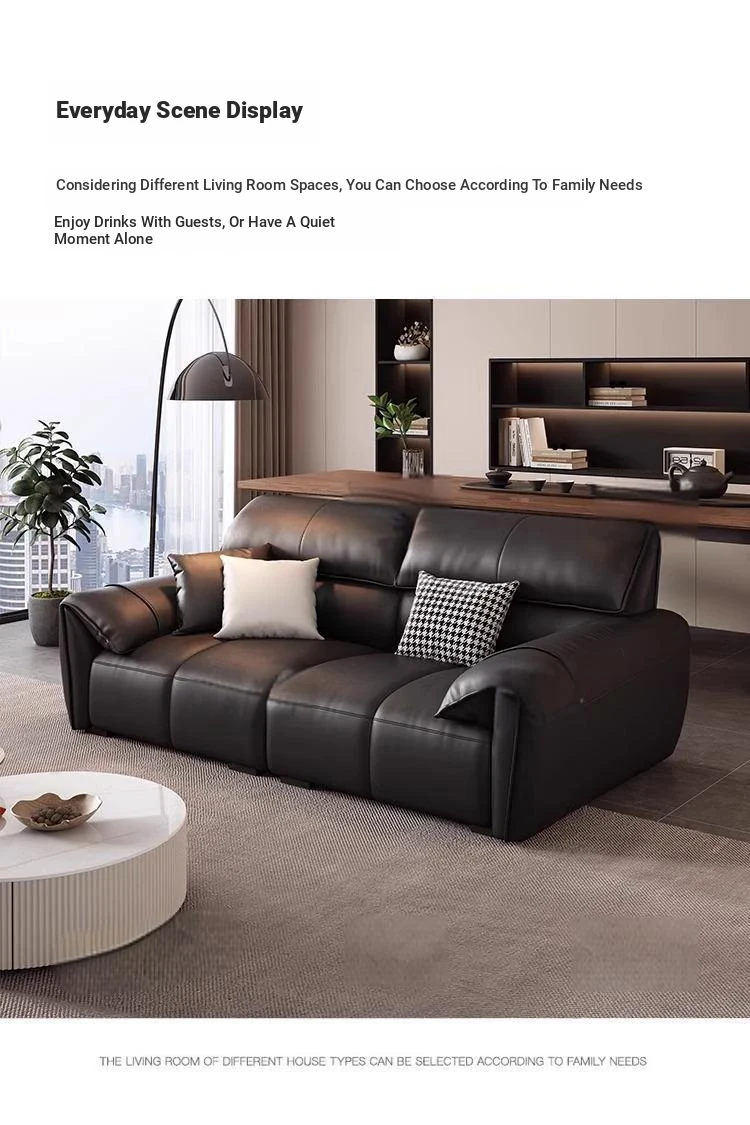 Italian Minimalist Elephant Ear Genuine Leather Sofa for Living Room - Stylish Compact Design for Small Spaces, Black Piano Key Finish