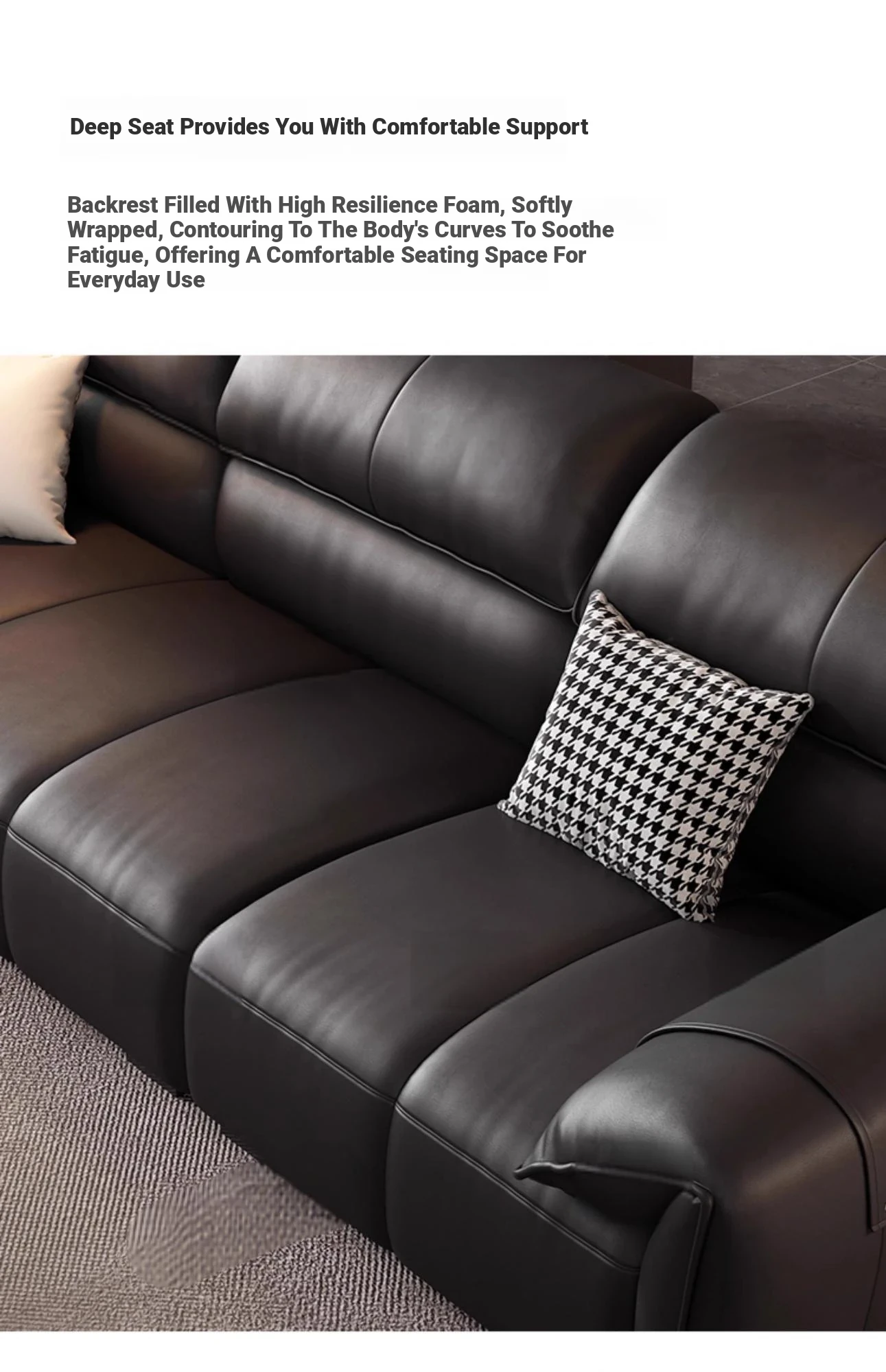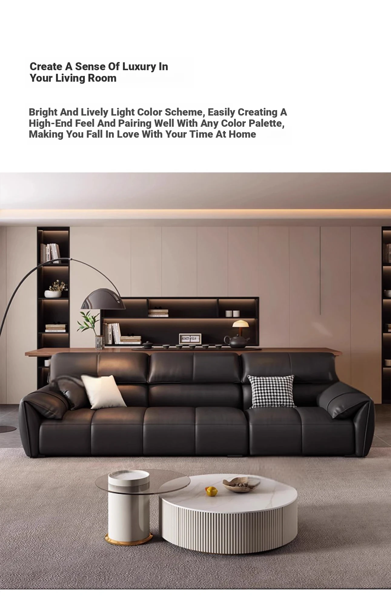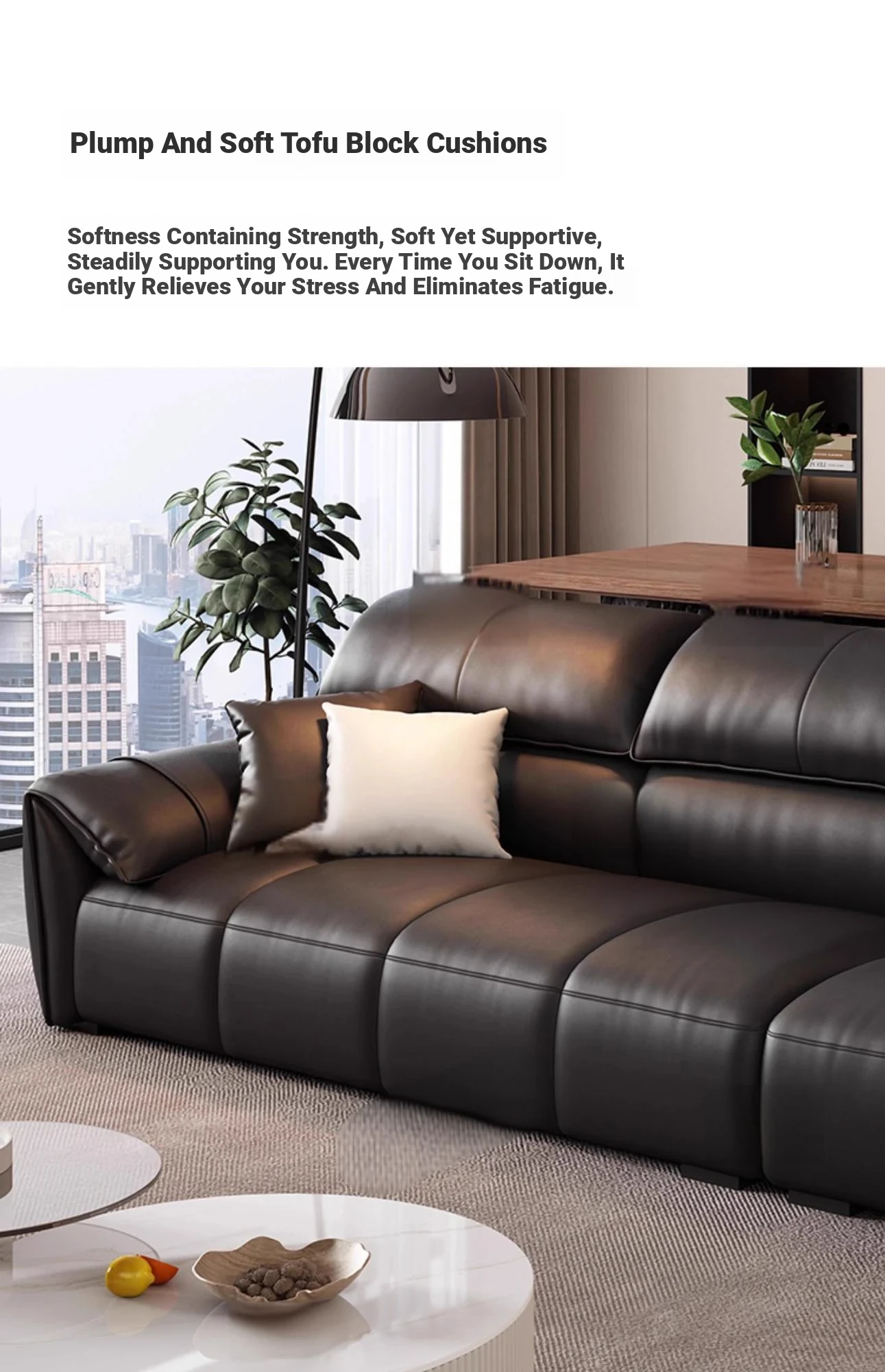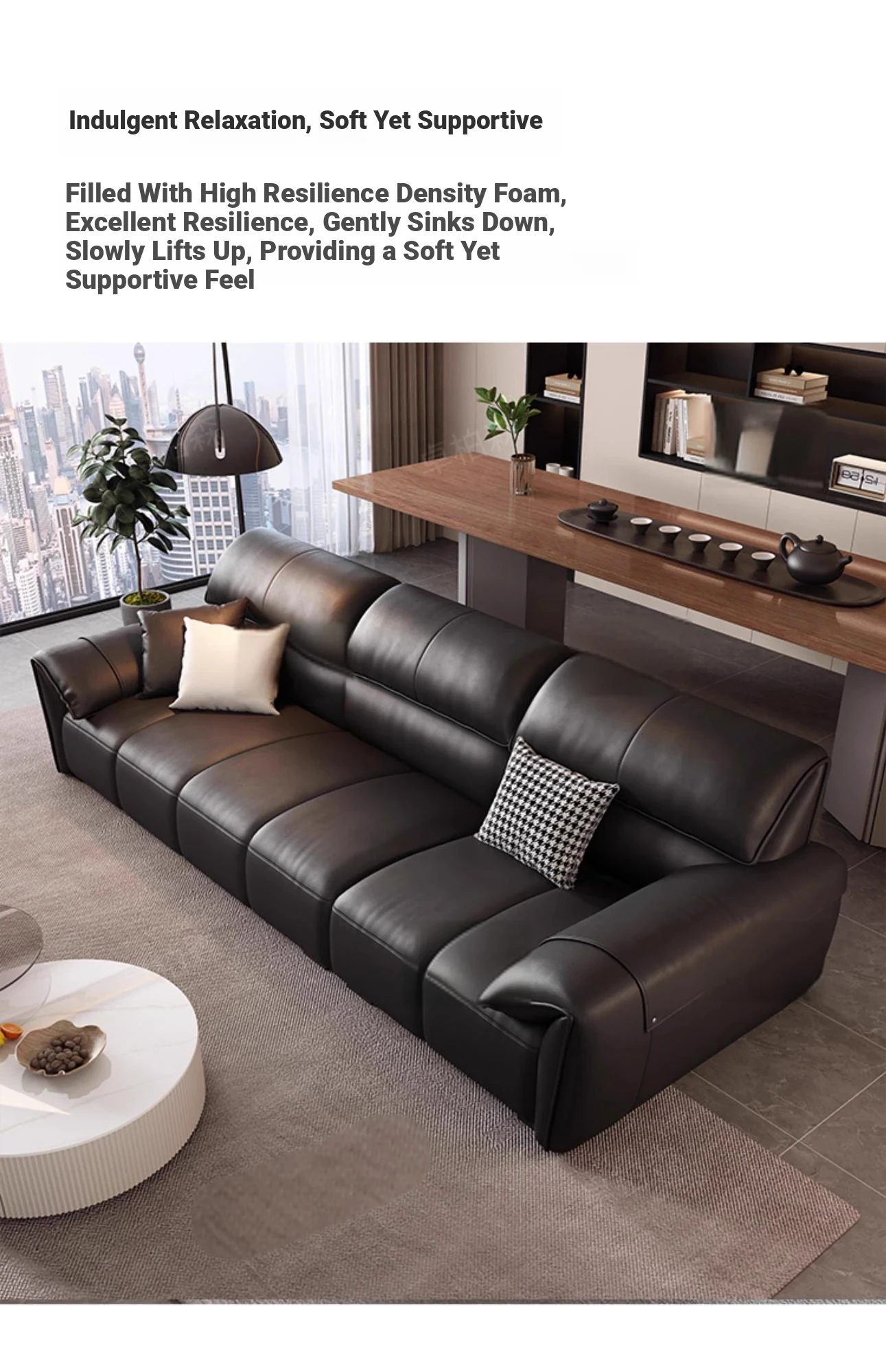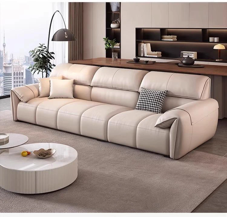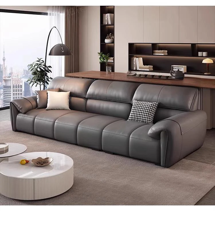 Italian Minimalist Elephant Ear Genuine Leather Sofa for Living Room - Stylish Compact Design for Small Spaces, Black Piano Key Finish