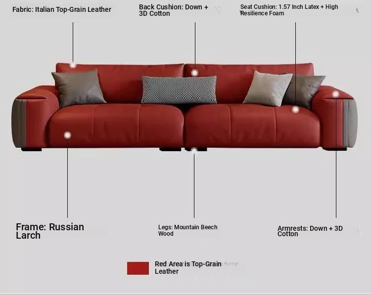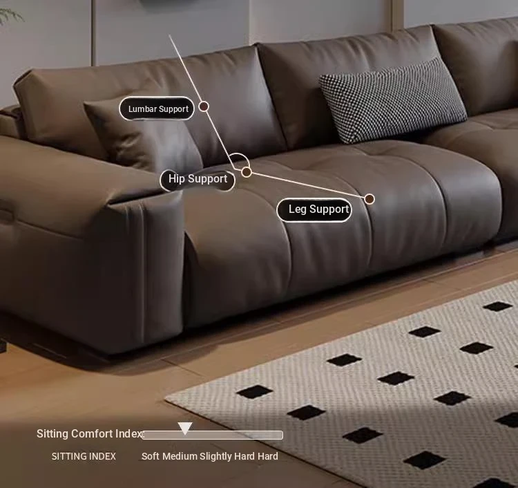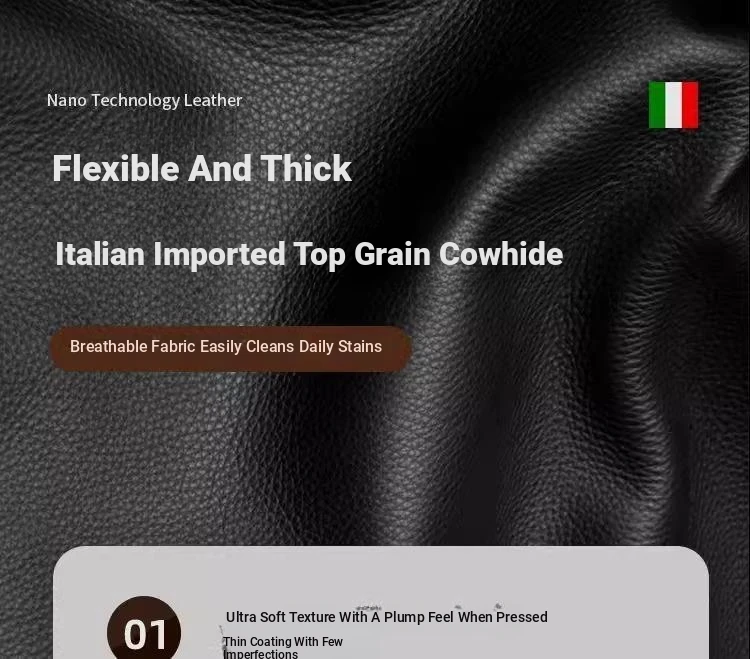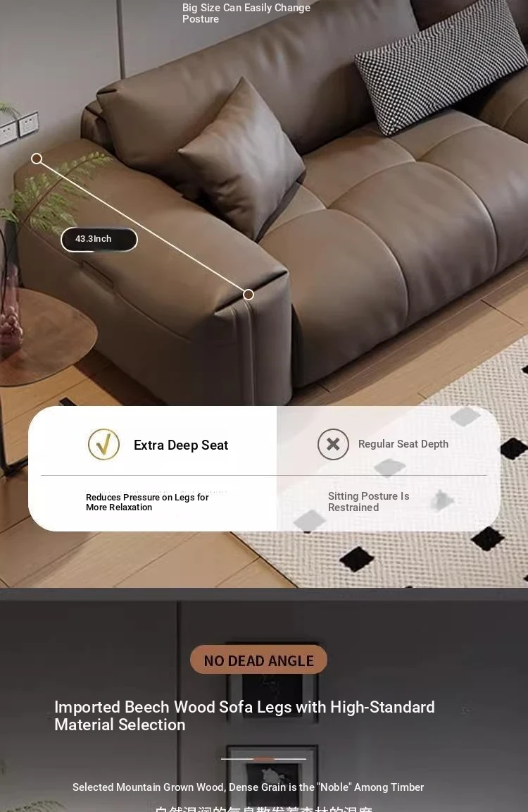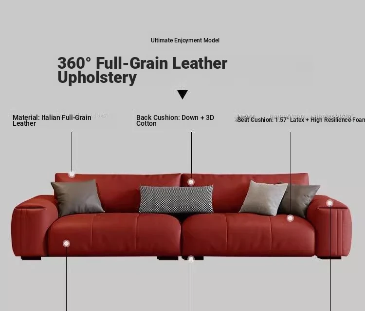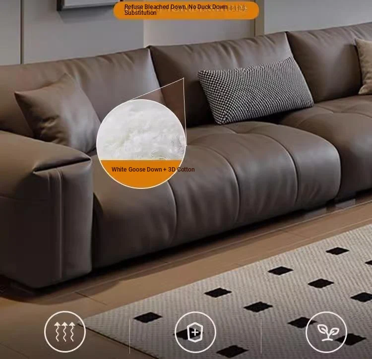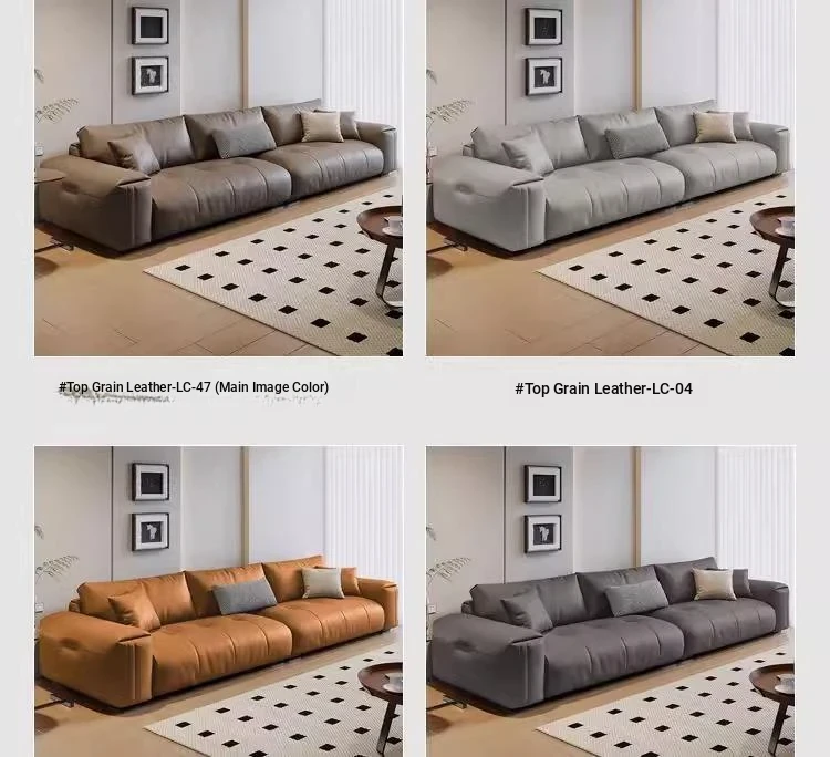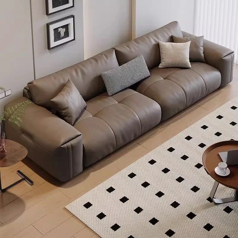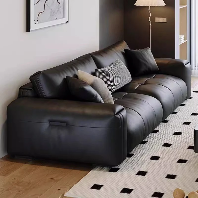 Italian Minimalist Genuine Leather Sofa - Modern Large Deep Seat Block Design in Chic Black and Gray for Your Living Room