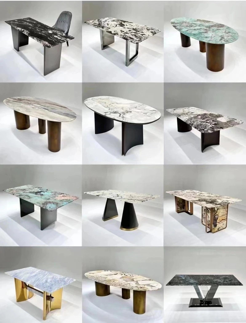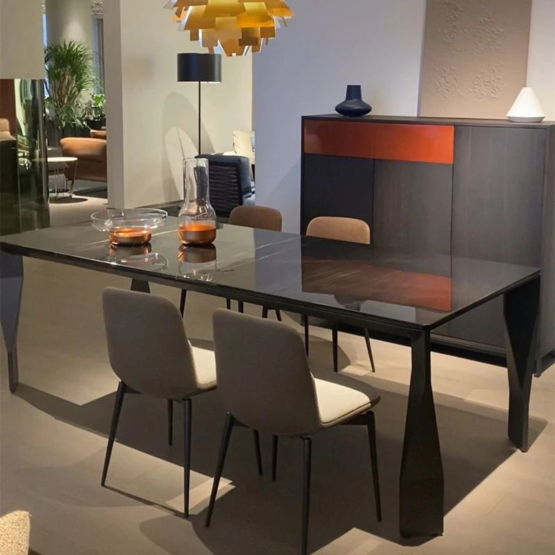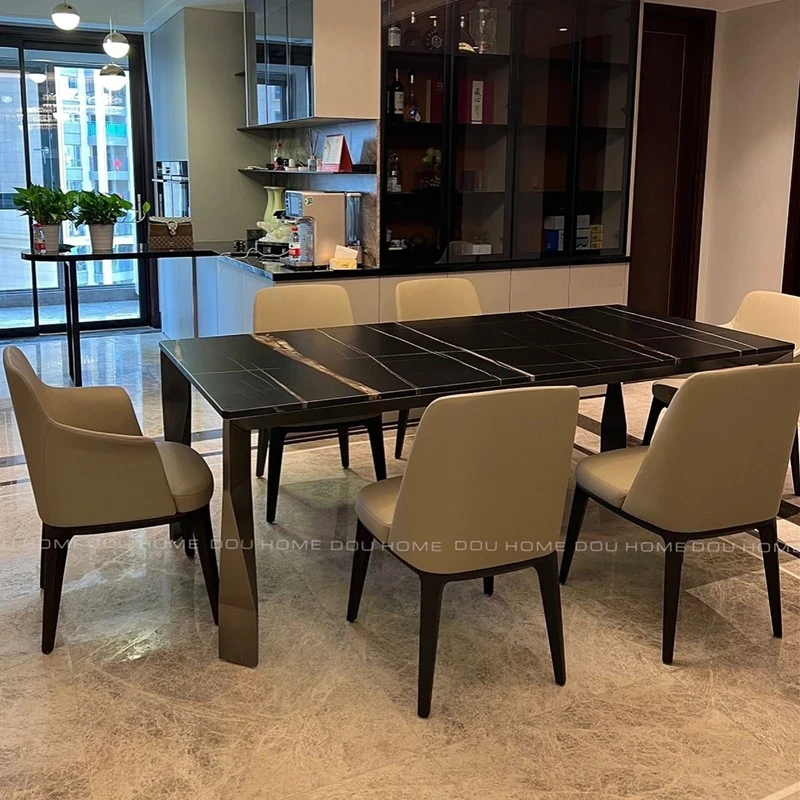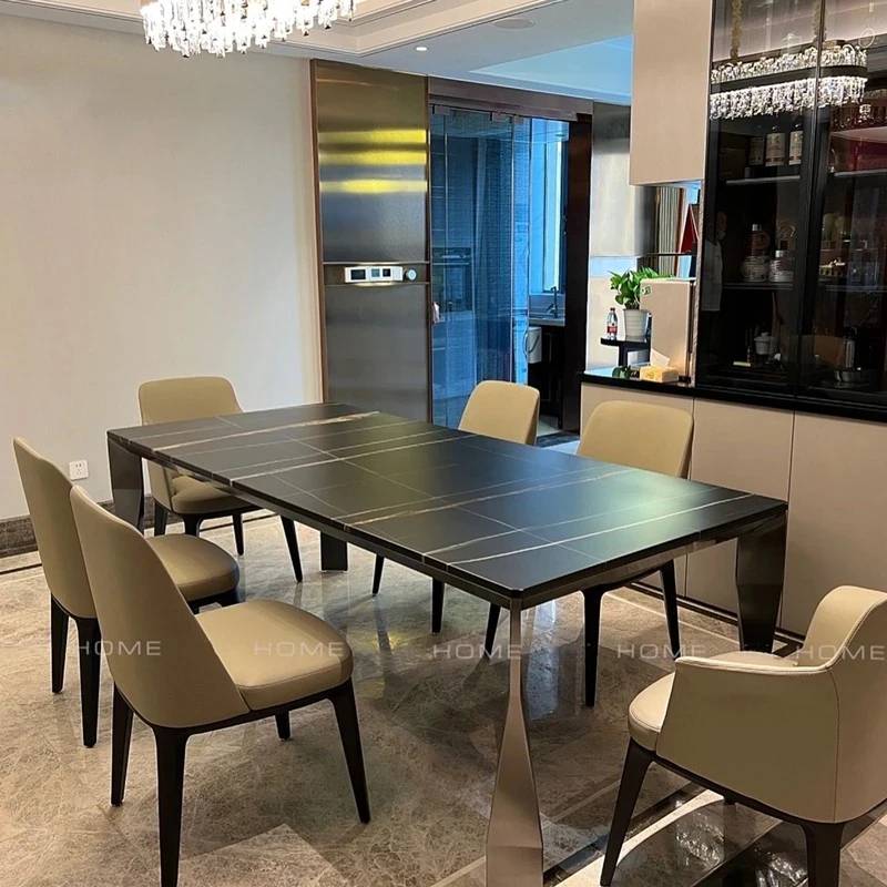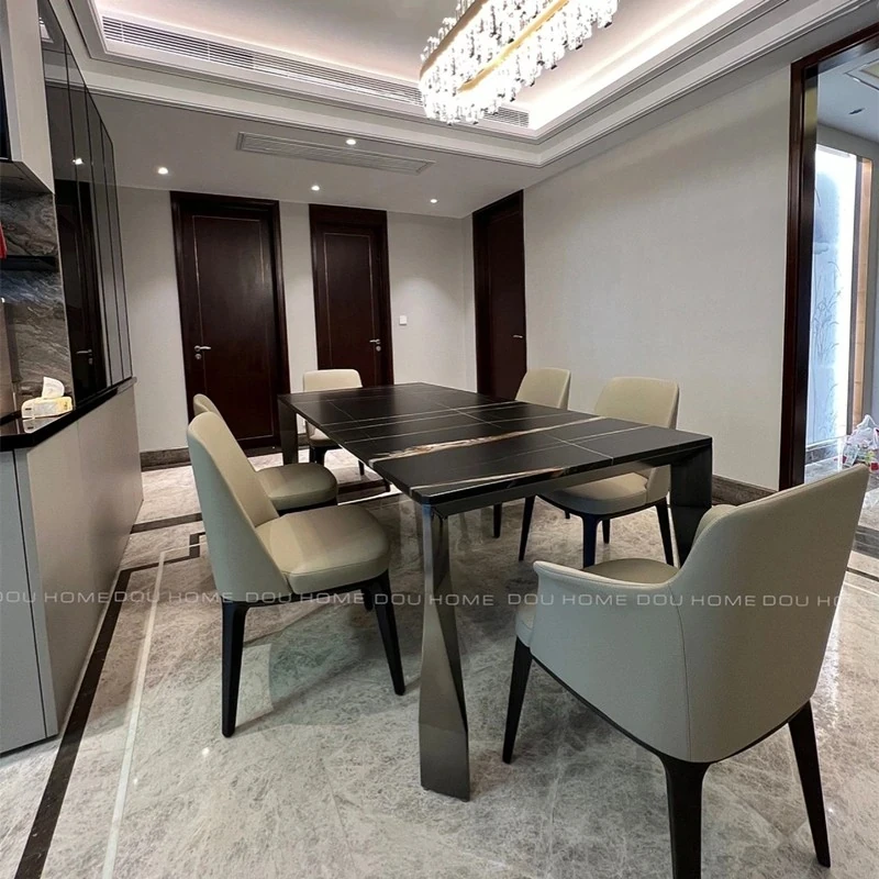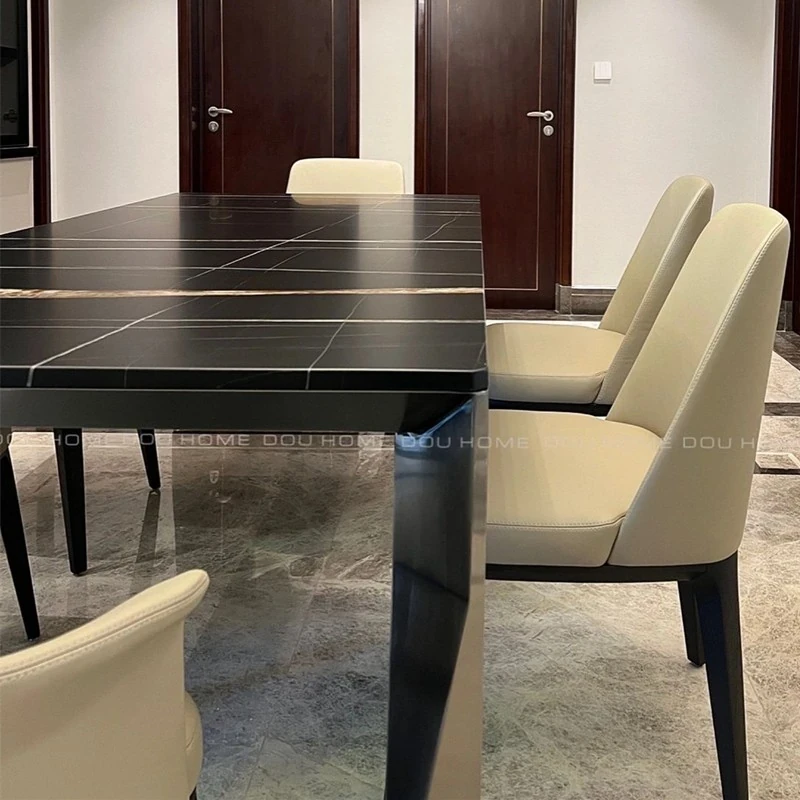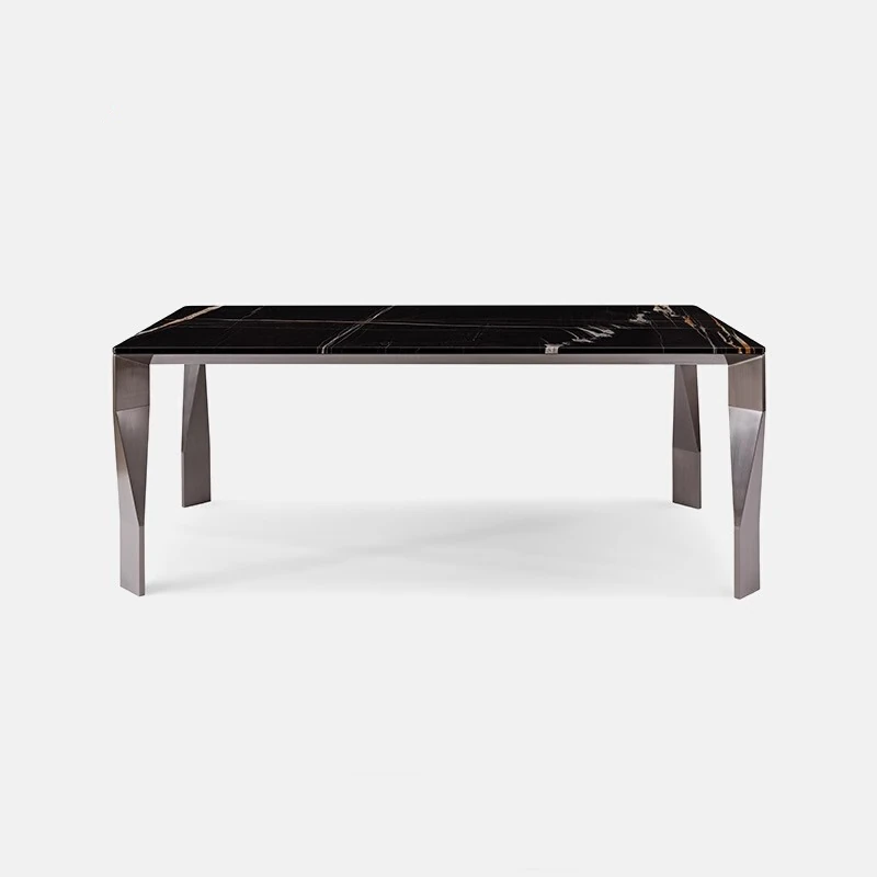 MC Laurens Black Gold Marble Diamond Long Dining Table - Matte Finish, Available in 1.6M and 1.8M Sizes, Perfect for Large and Medium Spaces, Stylish and Elegant Design for Your Dining Room.