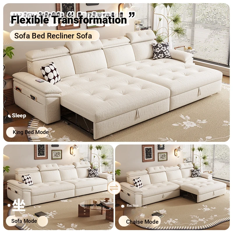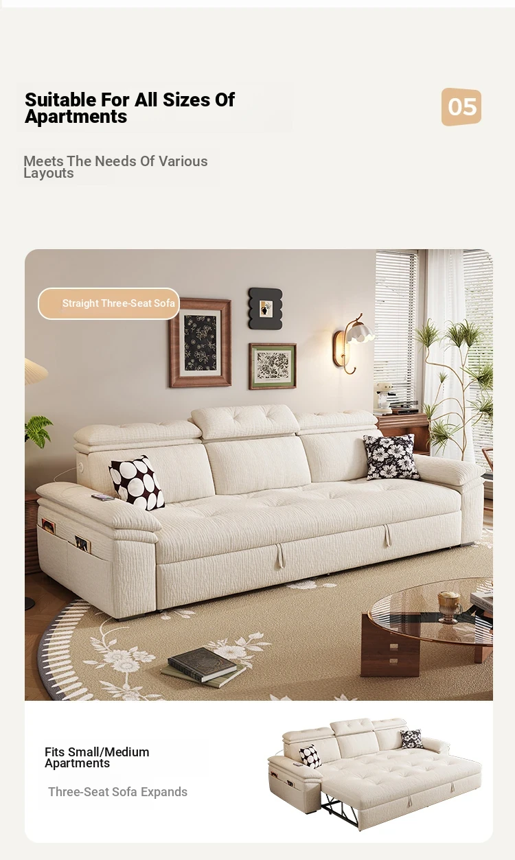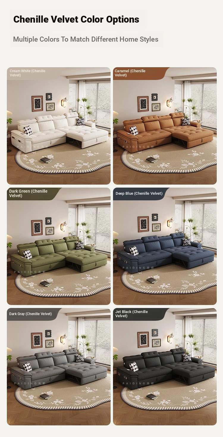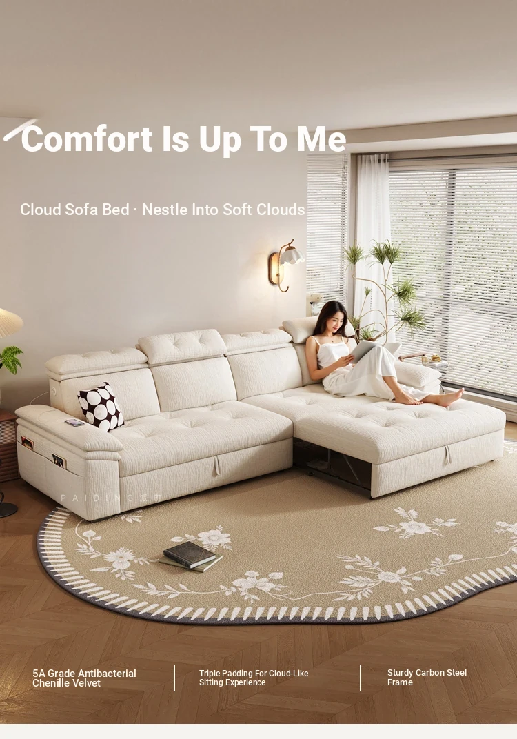 Modern Chenille Sofa Bed for Small Apartments - Adjustable and Expandable Fabric Couch for Minimalist Living Rooms