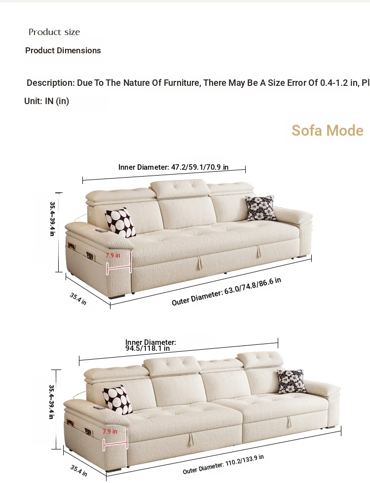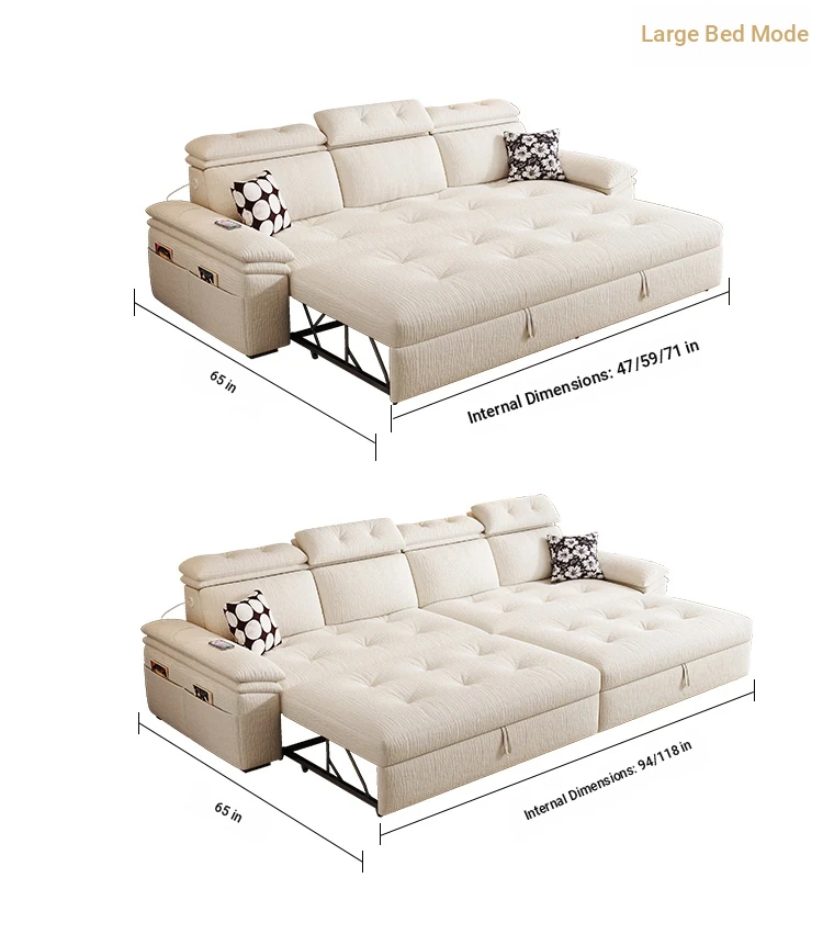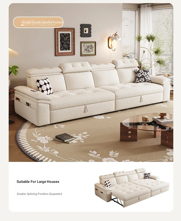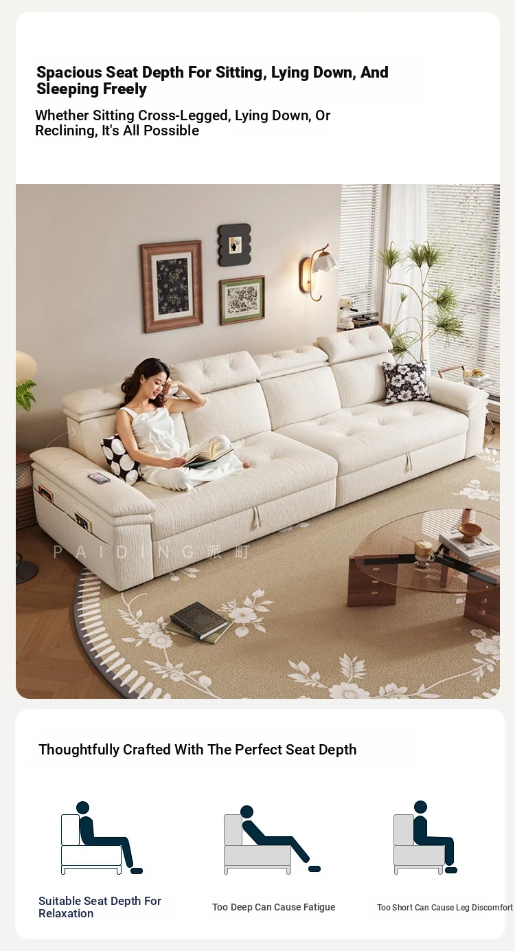 Modern Chenille Sofa Bed for Small Apartments - Adjustable and Expandable Fabric Couch for Minimalist Living Rooms