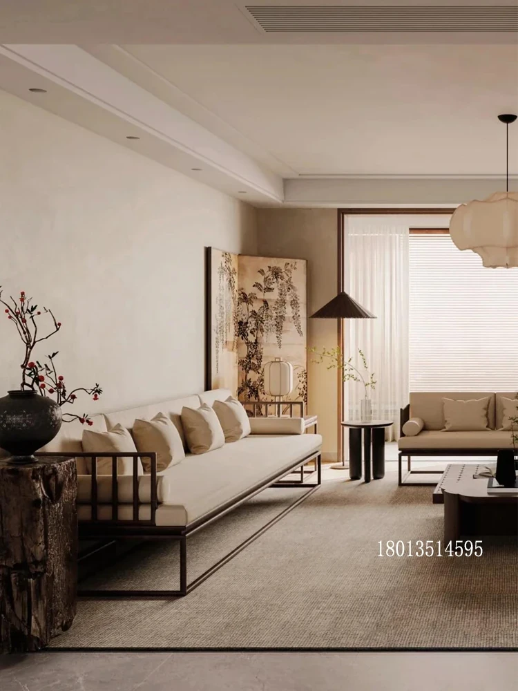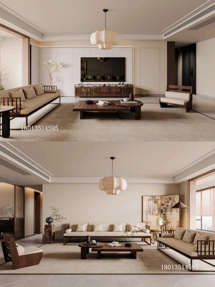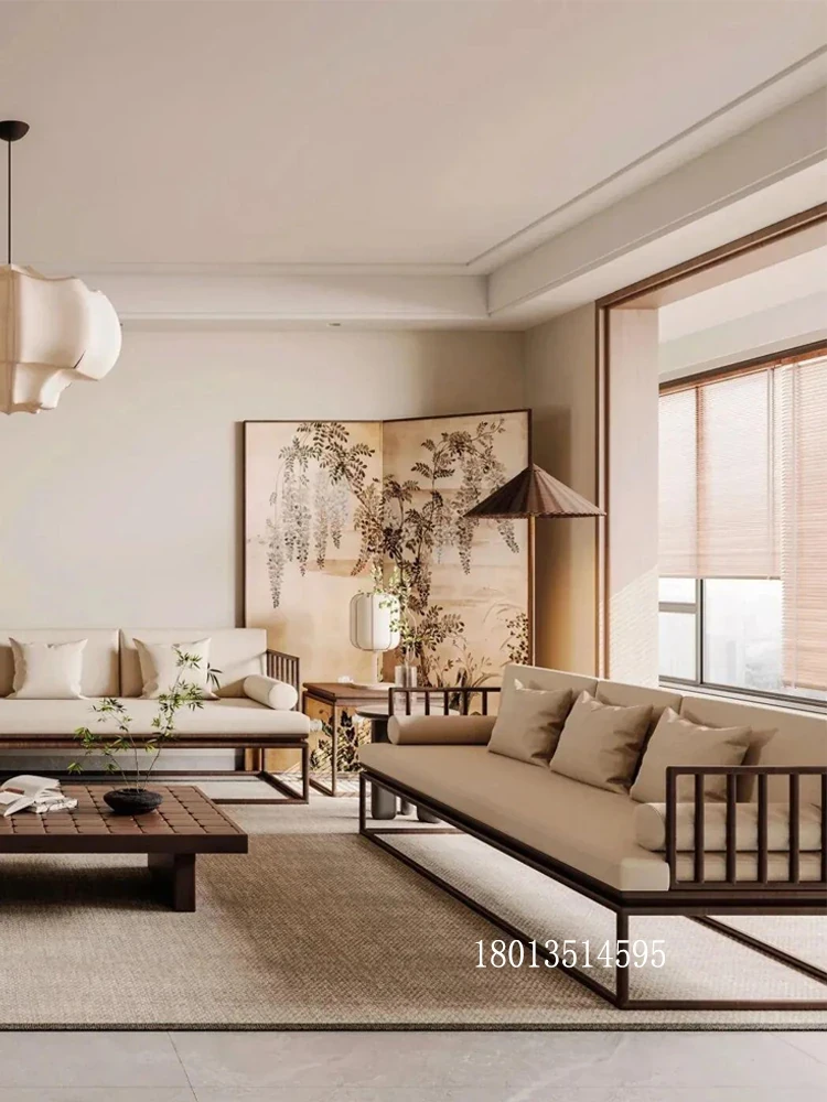 "Modern Minimalist Solid Wood Sofa and Coffee Table Set with Zen Aesthetic Inspired by Song Dynasty - Perfect for Small Living Rooms"