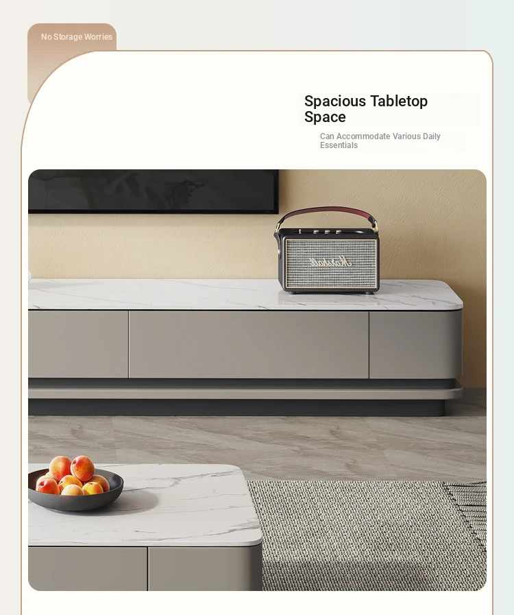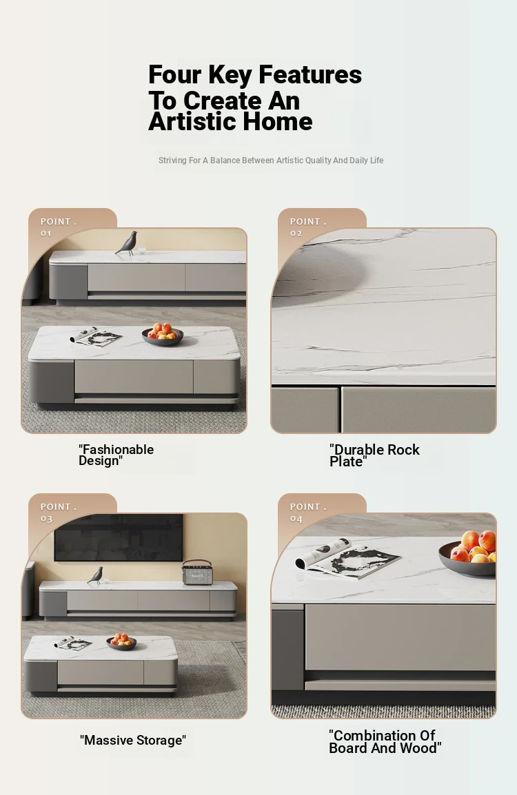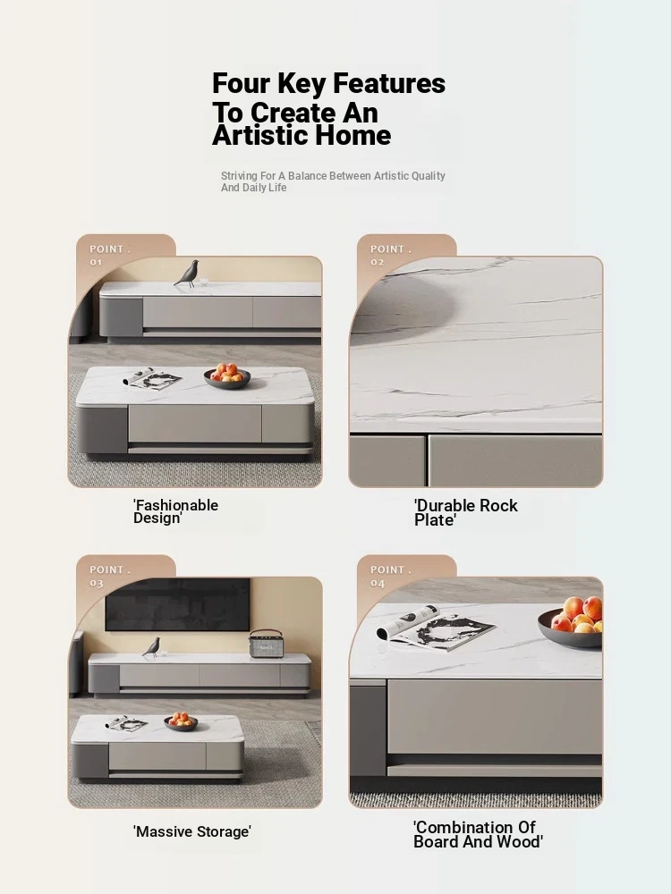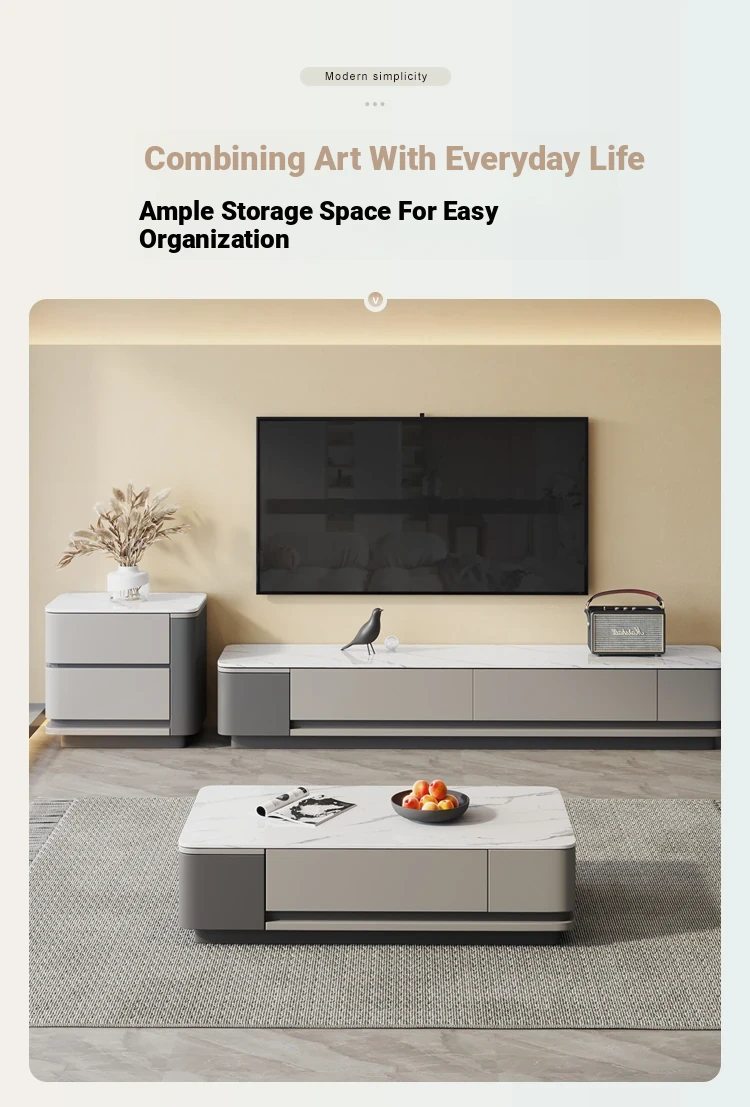 Nordic Minimalist Italian Style Rock Plate Coffee Table and TV Cabinet Set - Modern Light Luxury for Small Living Rooms with Lacquered Base.