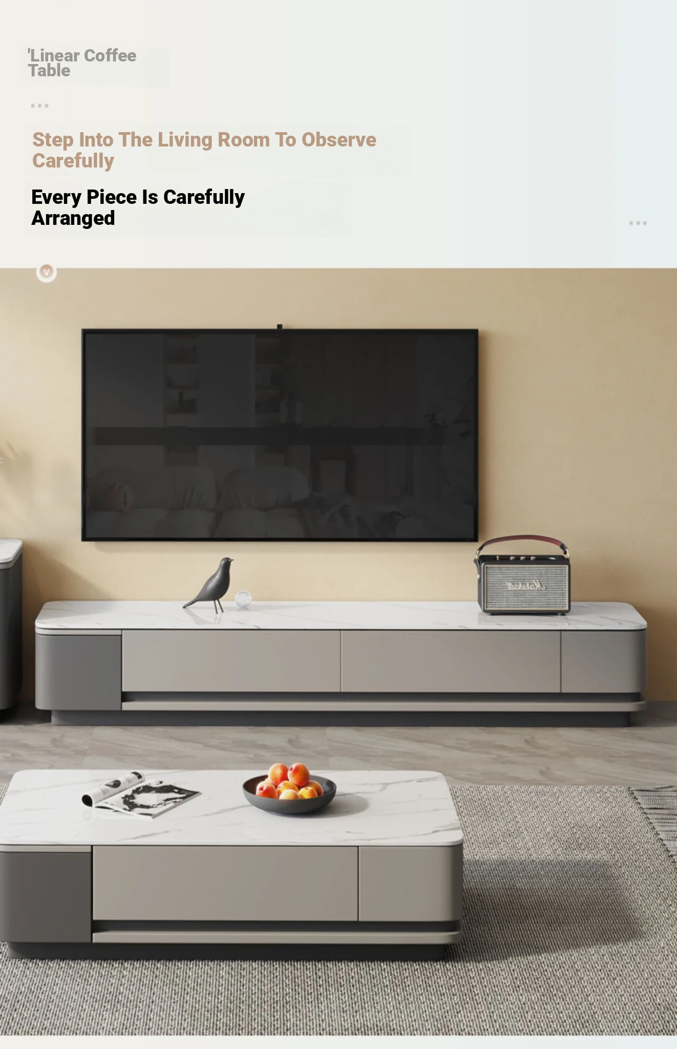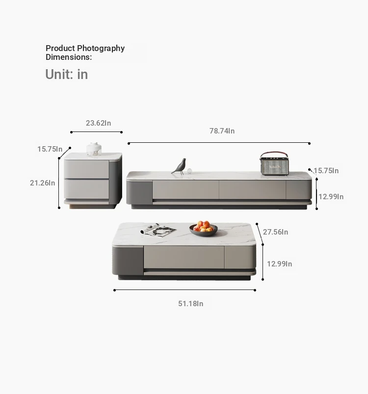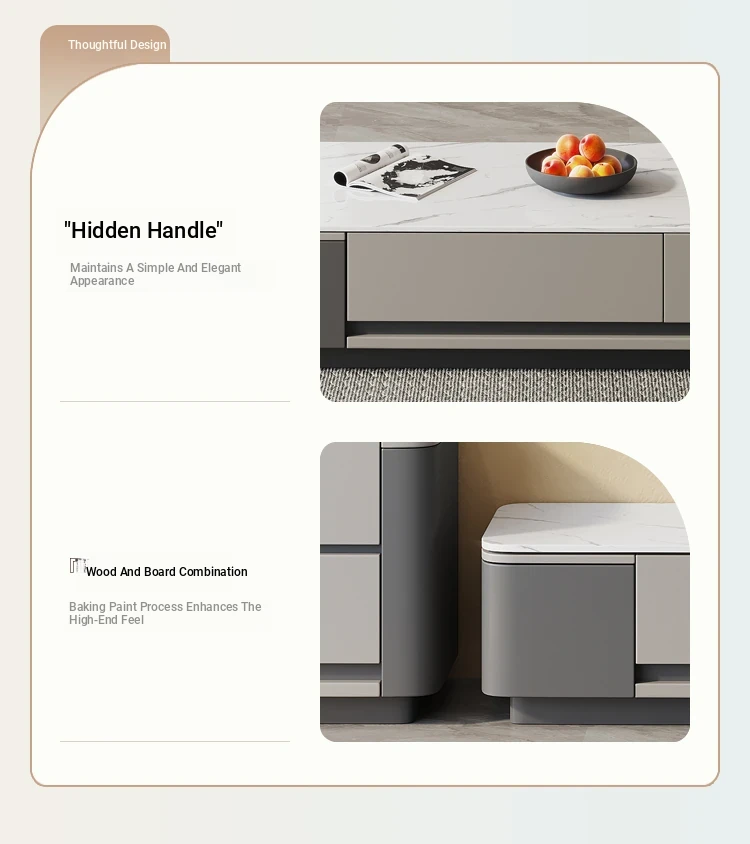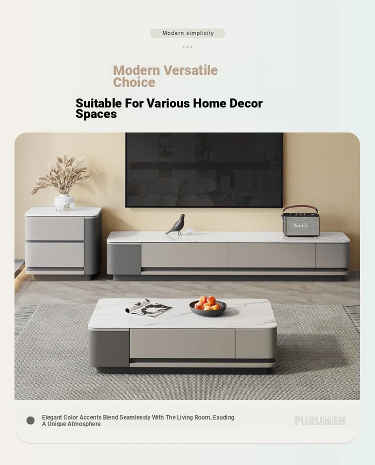 Nordic Minimalist Italian Style Rock Plate Coffee Table and TV Cabinet Set - Modern Light Luxury for Small Living Rooms with Lacquered Base.