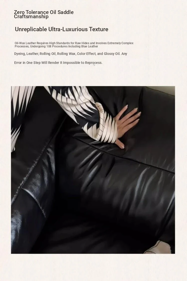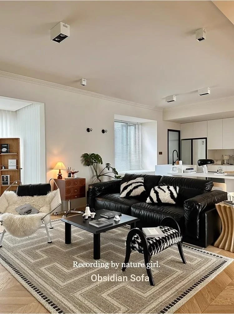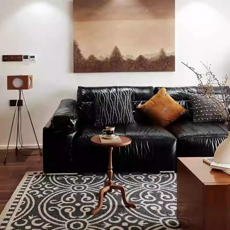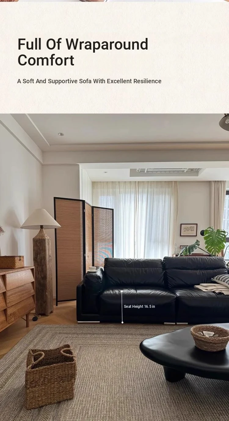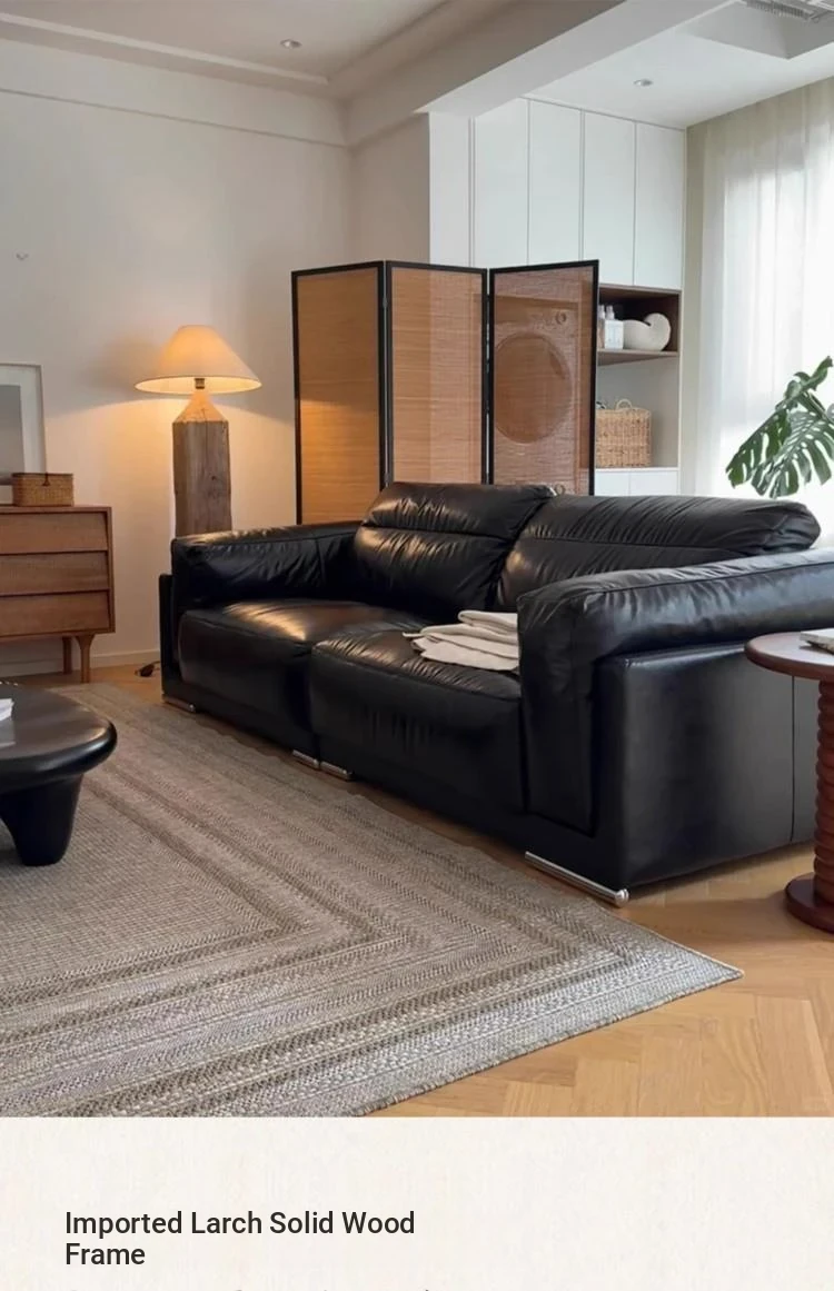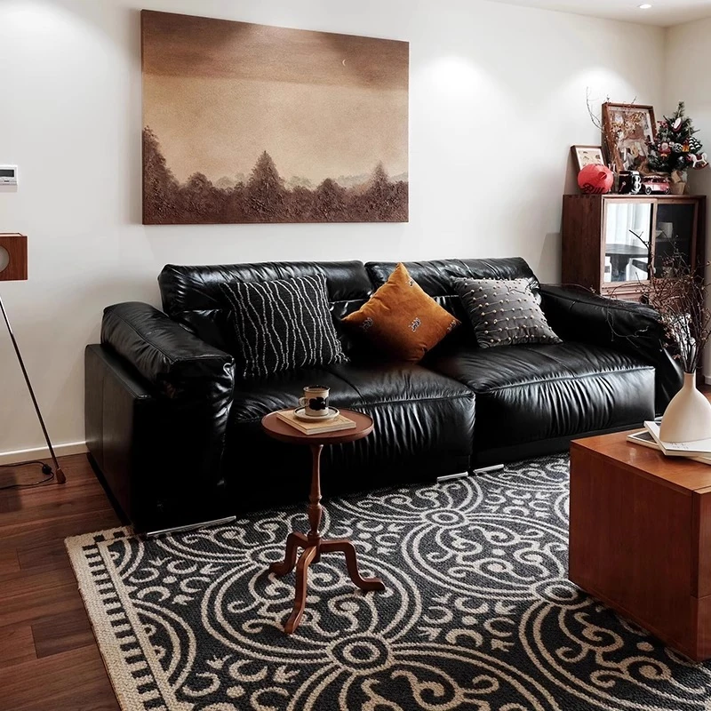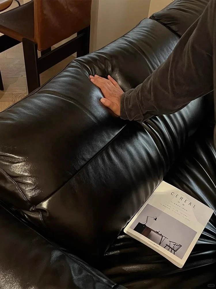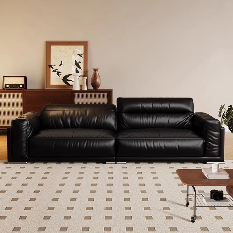 Vintage Black Obsidian Leather Sofa Set - Adjustable Duck Down Combination in Retro Style with Waxed Black Leather for Your Living Room